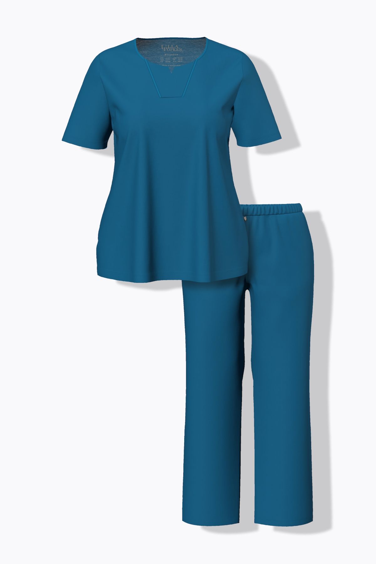 Satin Piped Notch Neck Pajama Set - soft cotton knit so comfy you won't want to take it off. Top with a satin trim round notch neck and short sleeves. Elastic waist bottoms with side pockets.