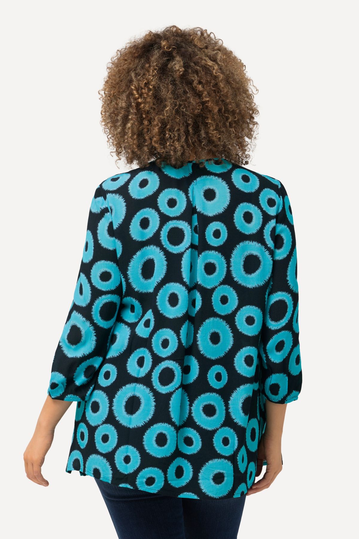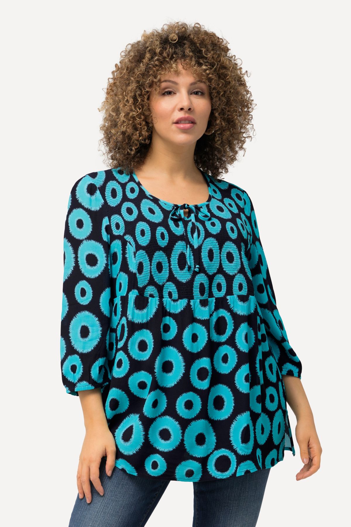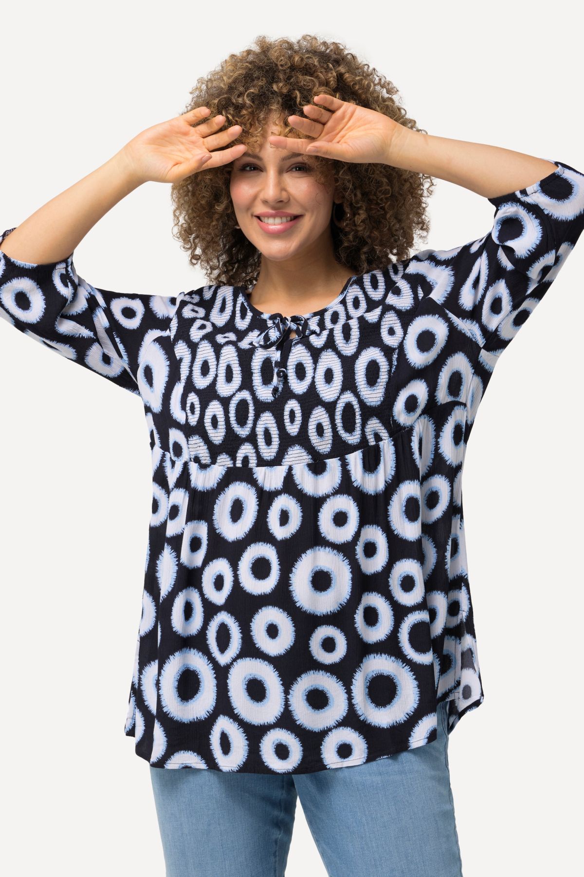Smocked Circle Print Blouse - A naturally stretchy smocked panel will keep this geometric print at the front of your closet.
