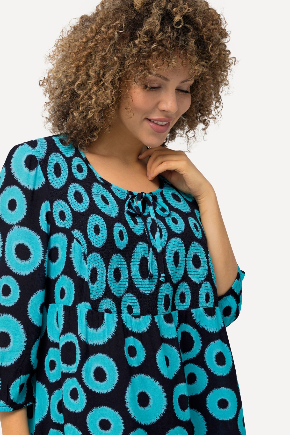 Smocked Circle Print 3/4 Sleeve Blouse