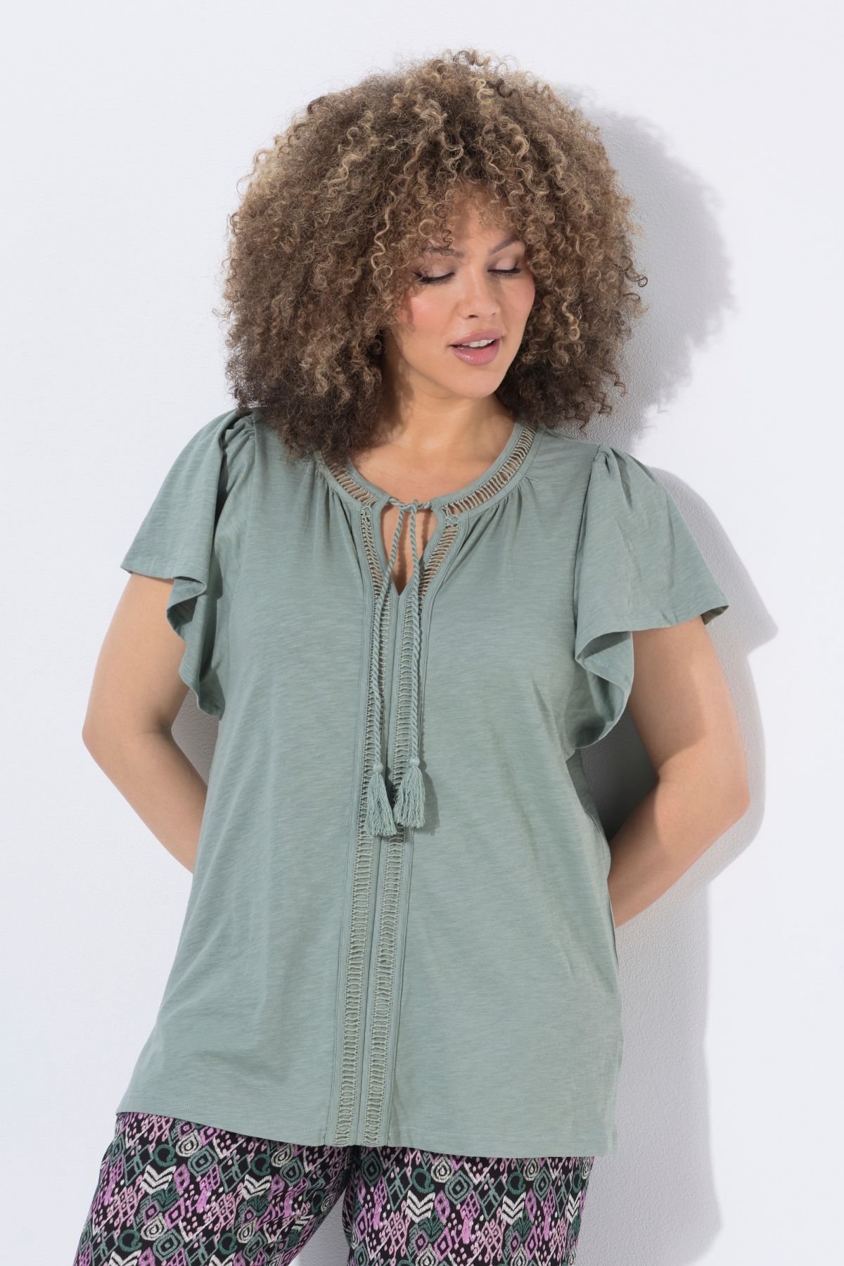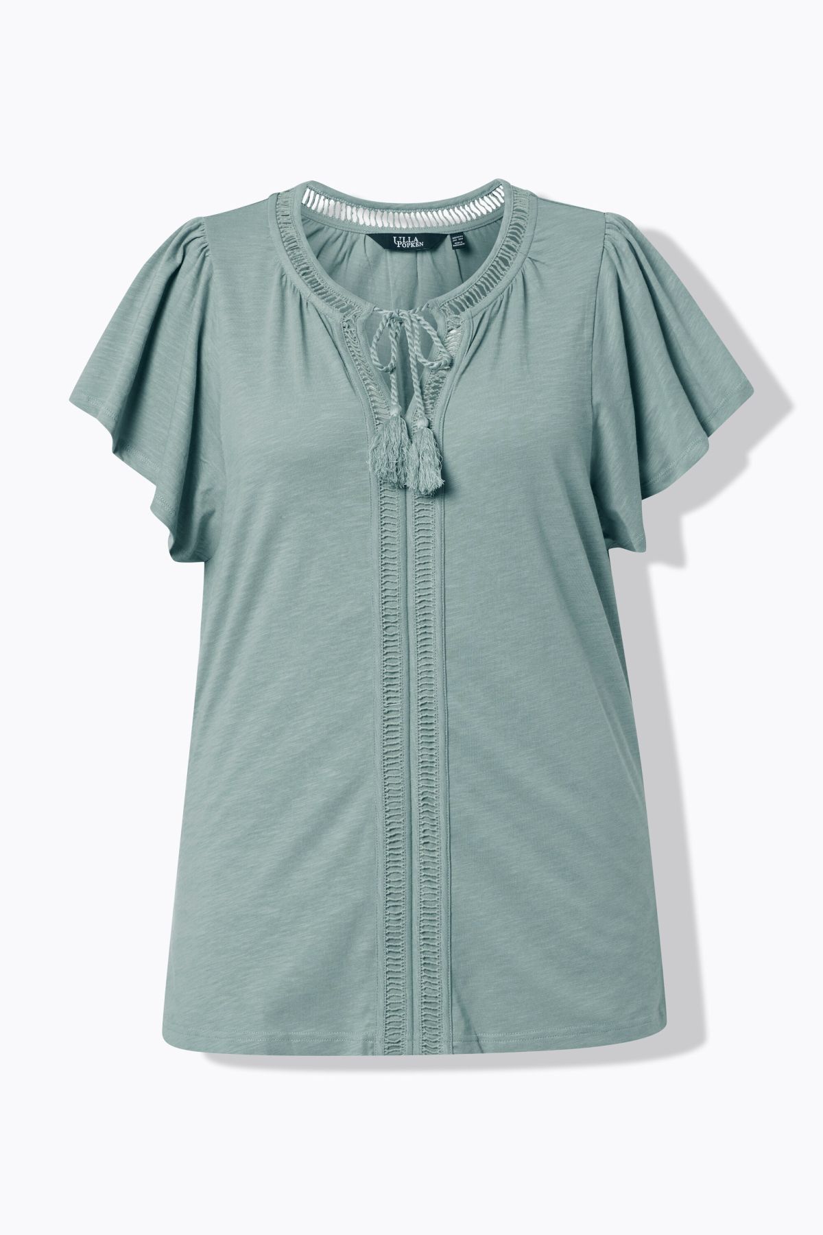 Wing Sleeve Tee - With openwork trim and tasseled ribbon tie for a laid-back, bohemian vibe.