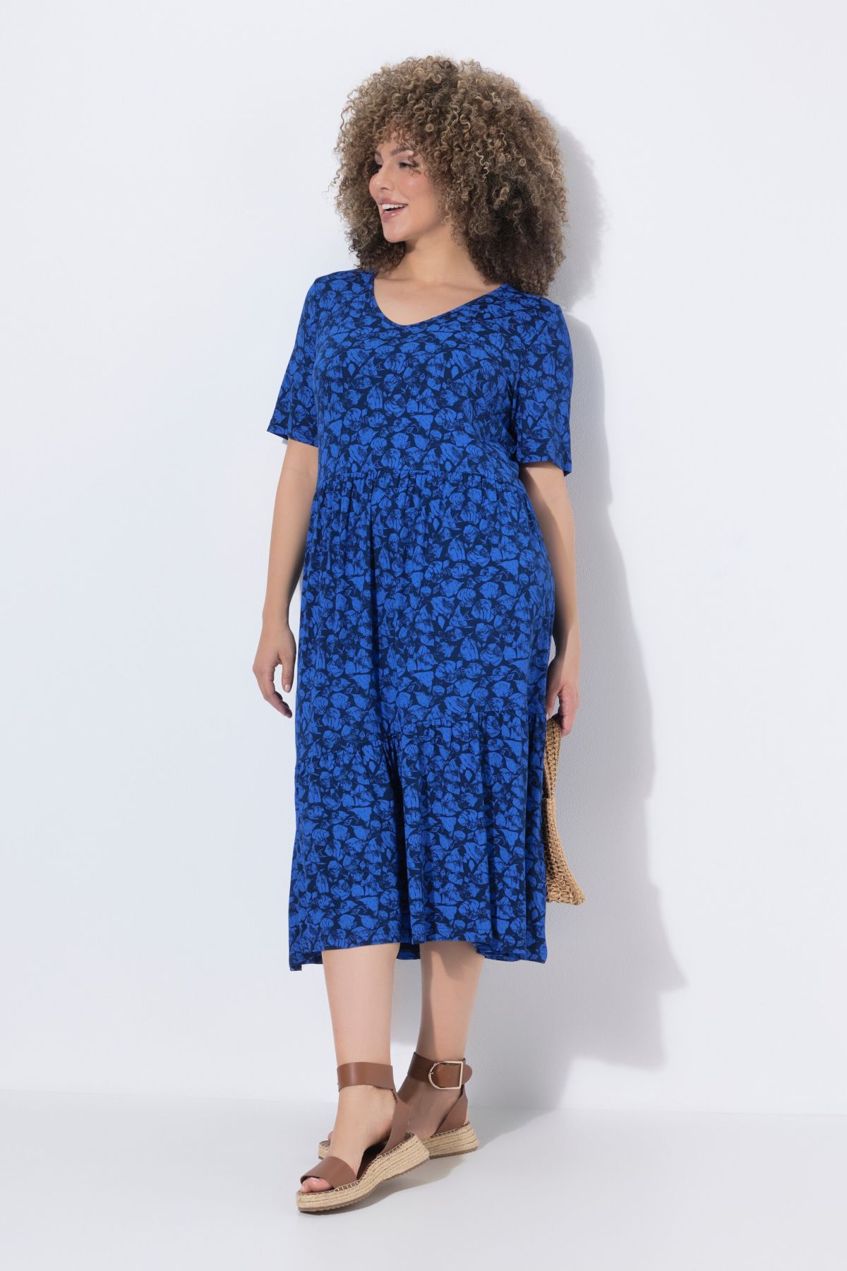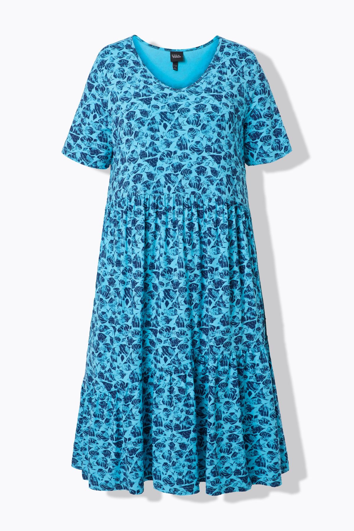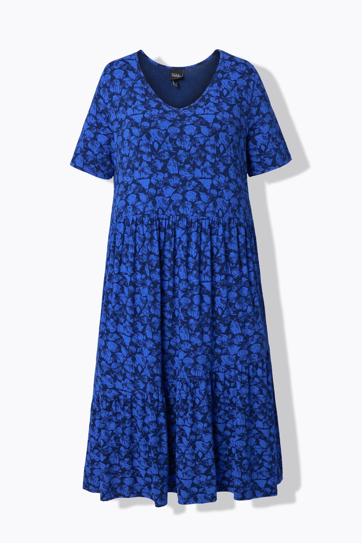 Asymmetric Flounce Panel Dress - Wide asymmetric flounce panels add volume to this allover printed design.