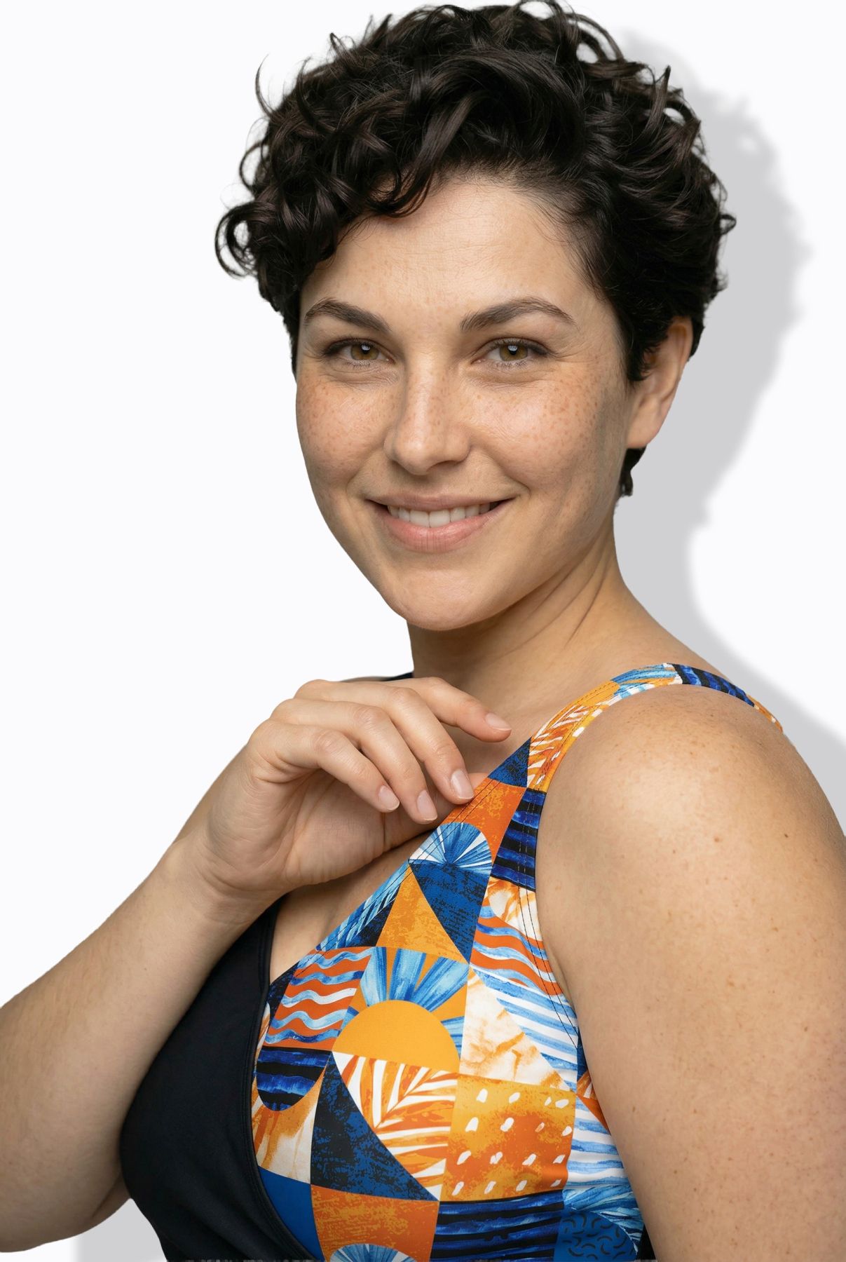 Checkered Summer Wrap-Look Swimsuit - A geometric-inspired print with warm summer energy.