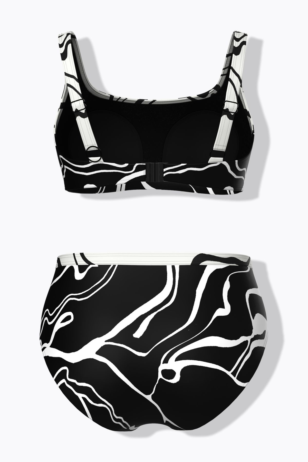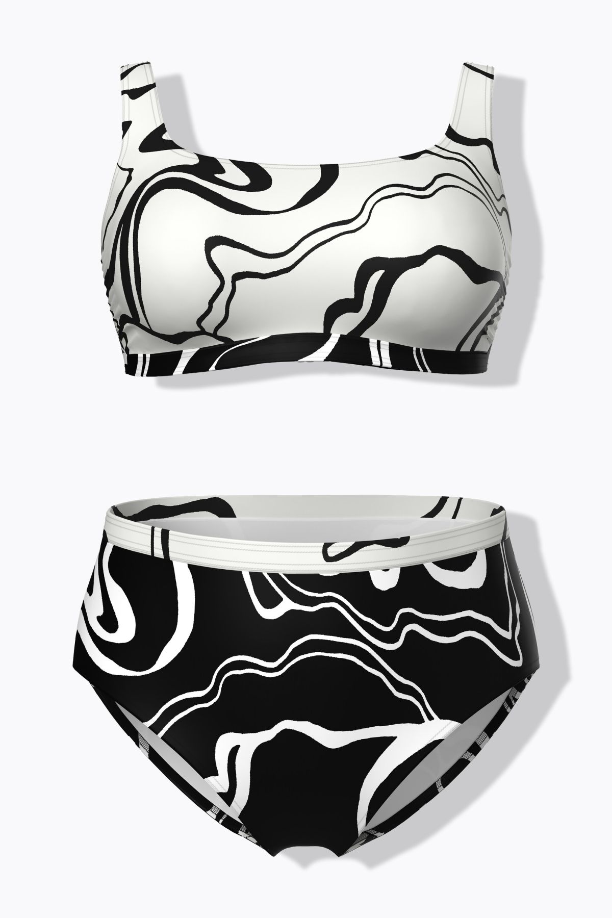 Marble Print Bikini Set - A stunning, high-contrast black and white style.