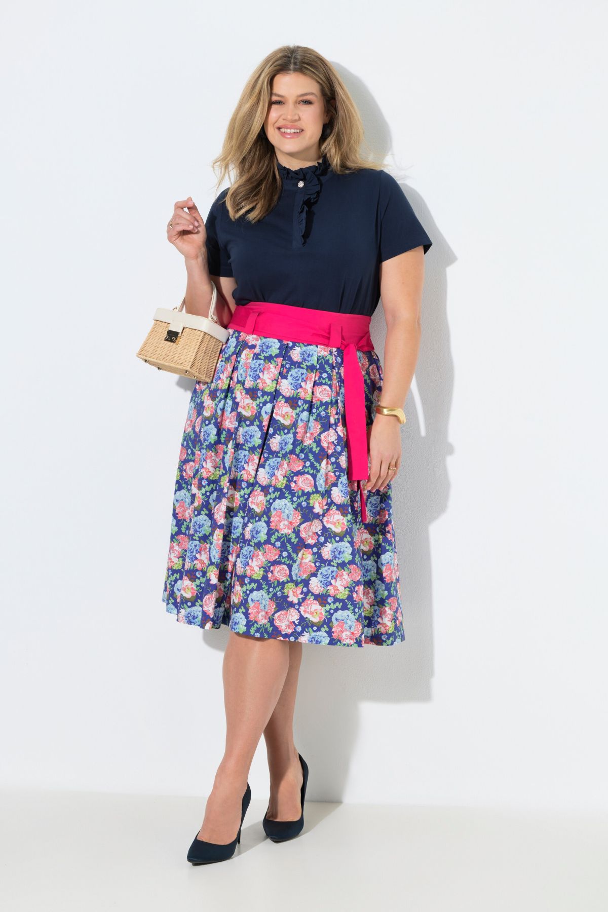 Country Floral Print Skirt - Featuring a wide contrast color ribbon-tie waistband for modern flair.