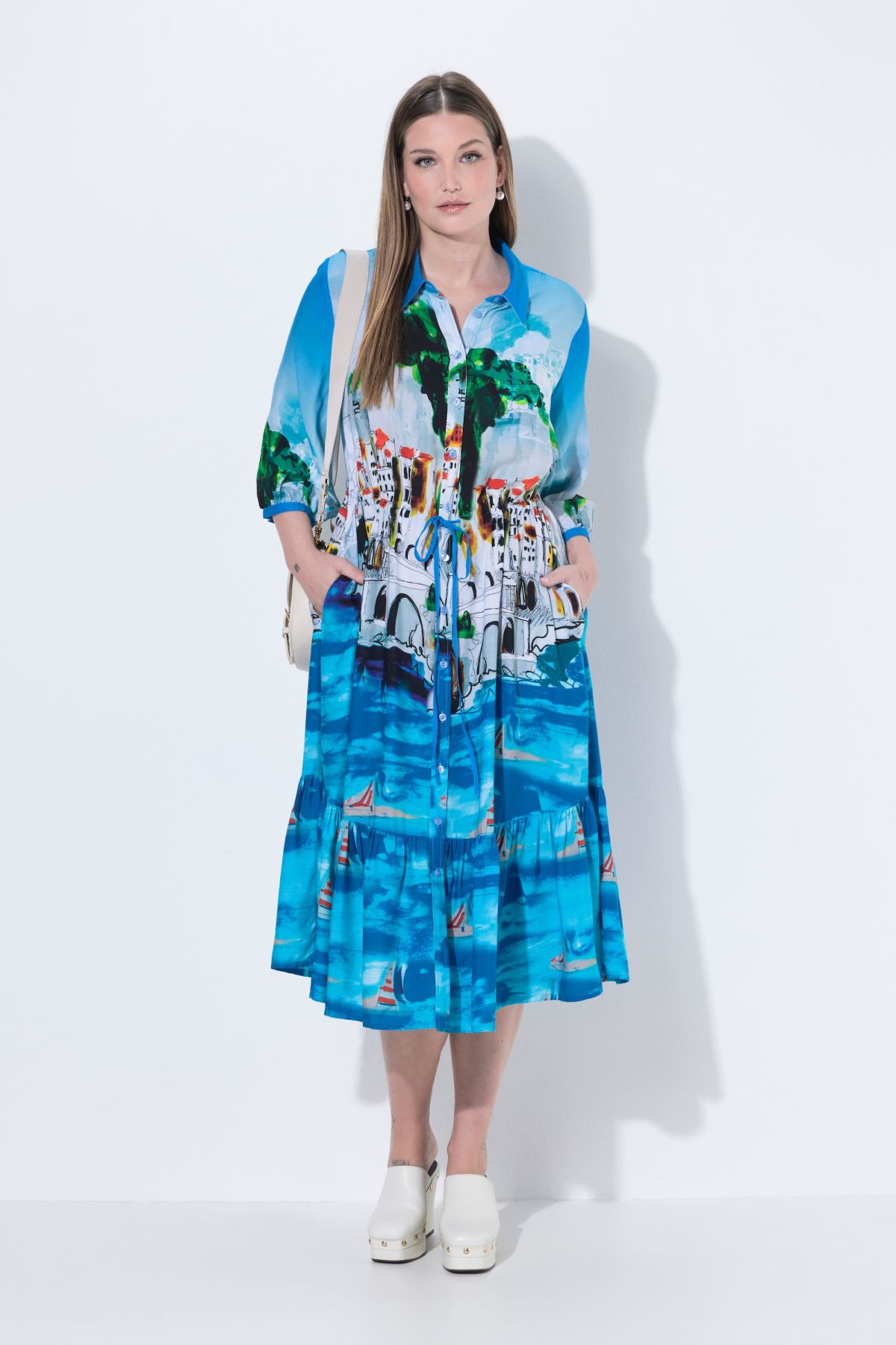Allover Print Drawstring Waist Dress - Each color features a different vibrant print.