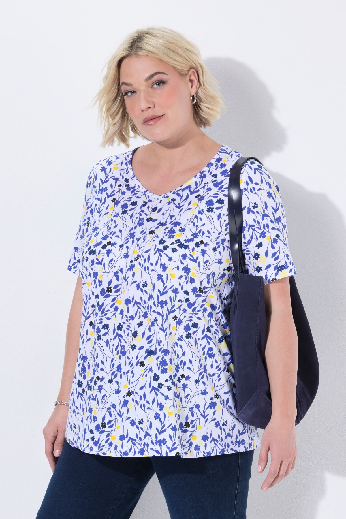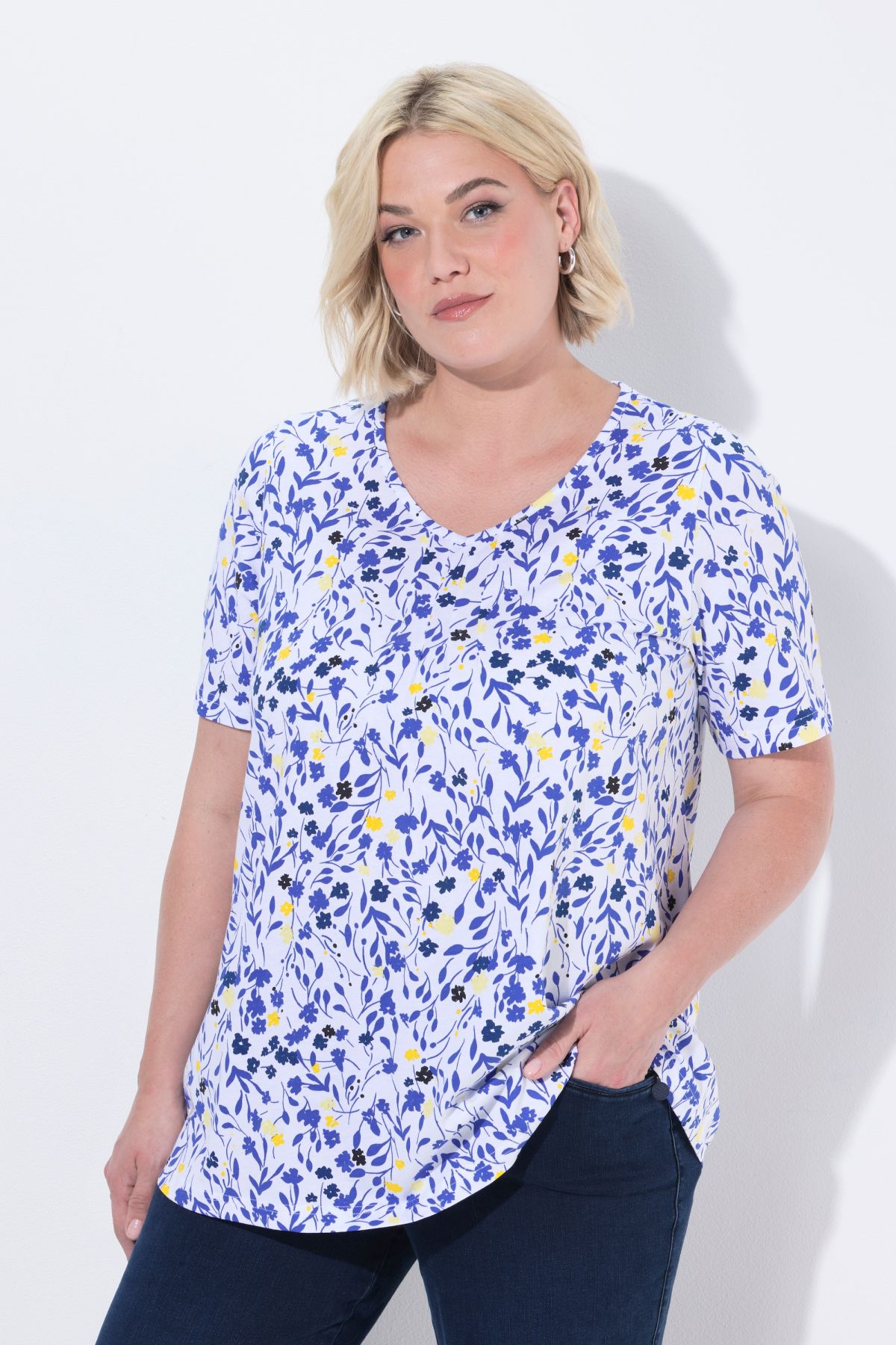 Floral Print Tee - With a pleated neckline for a slightly flared silhouette.
