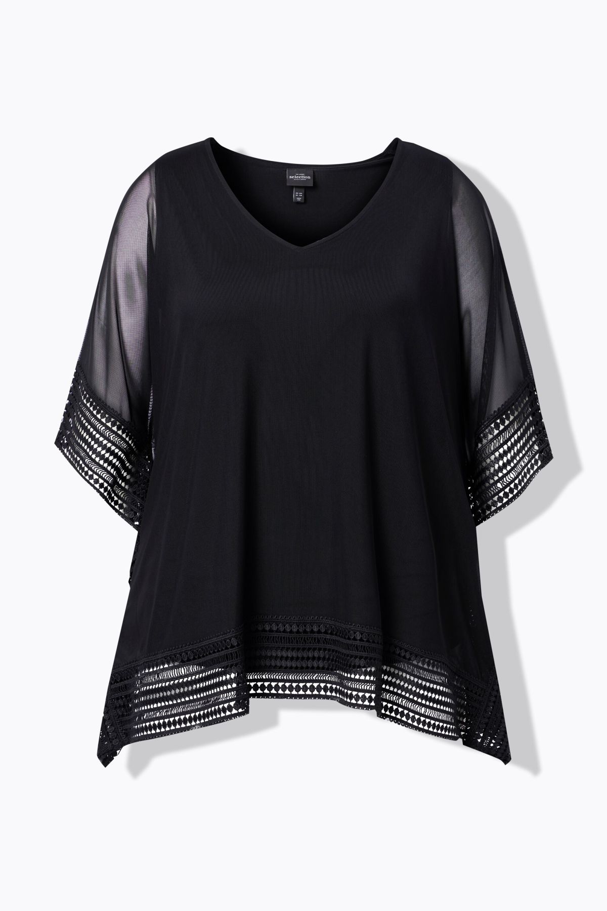 Layered Mesh Blouse - Openwork lace trim adds texture to this sheer layered style.