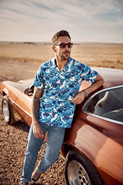 JP 1880 jersey shirt, short sleeve, Cuba collar, all-over print, Cuba fit, up to 8XL