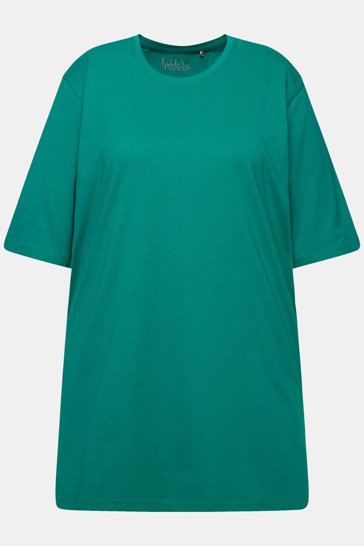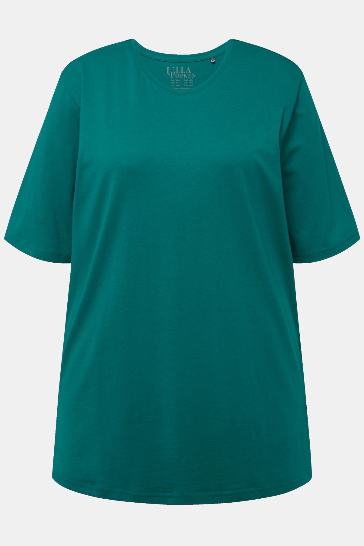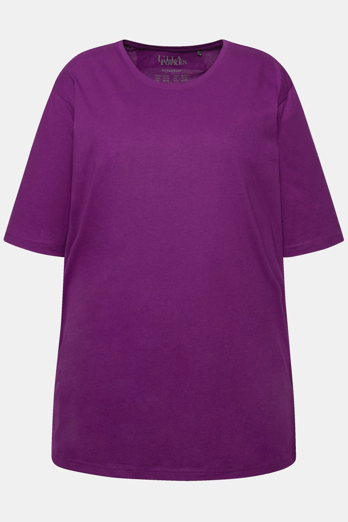 Обикновена тениска. Ежедневна кройка в голям размер от мек памук. Заоблено деколте, къси ръкави и странични процепи.