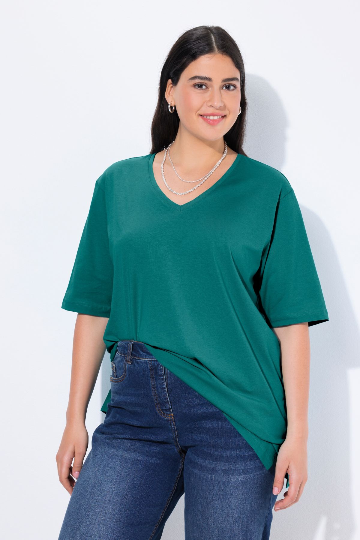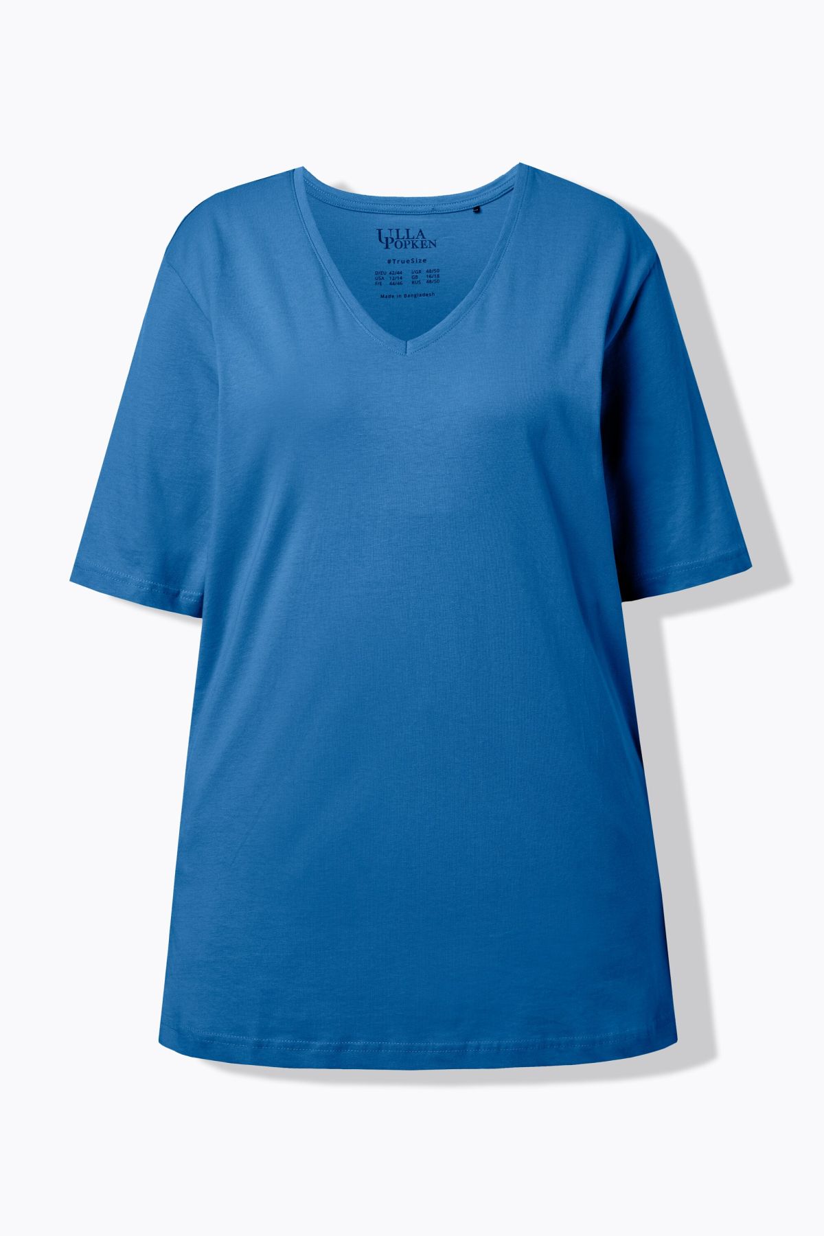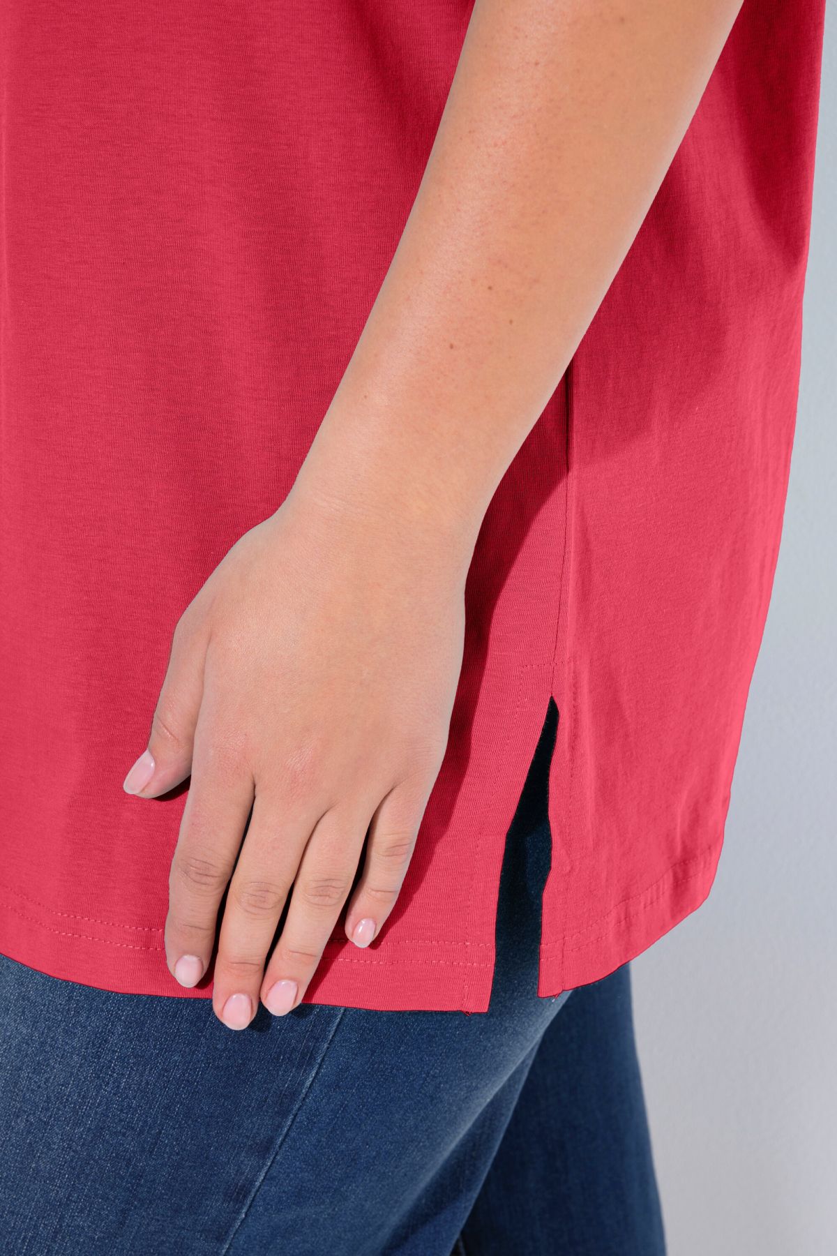 Тениска с V - образно деколте и къси ръкави. С класическа кройка от мека, памучна материя. Със странични цепки.