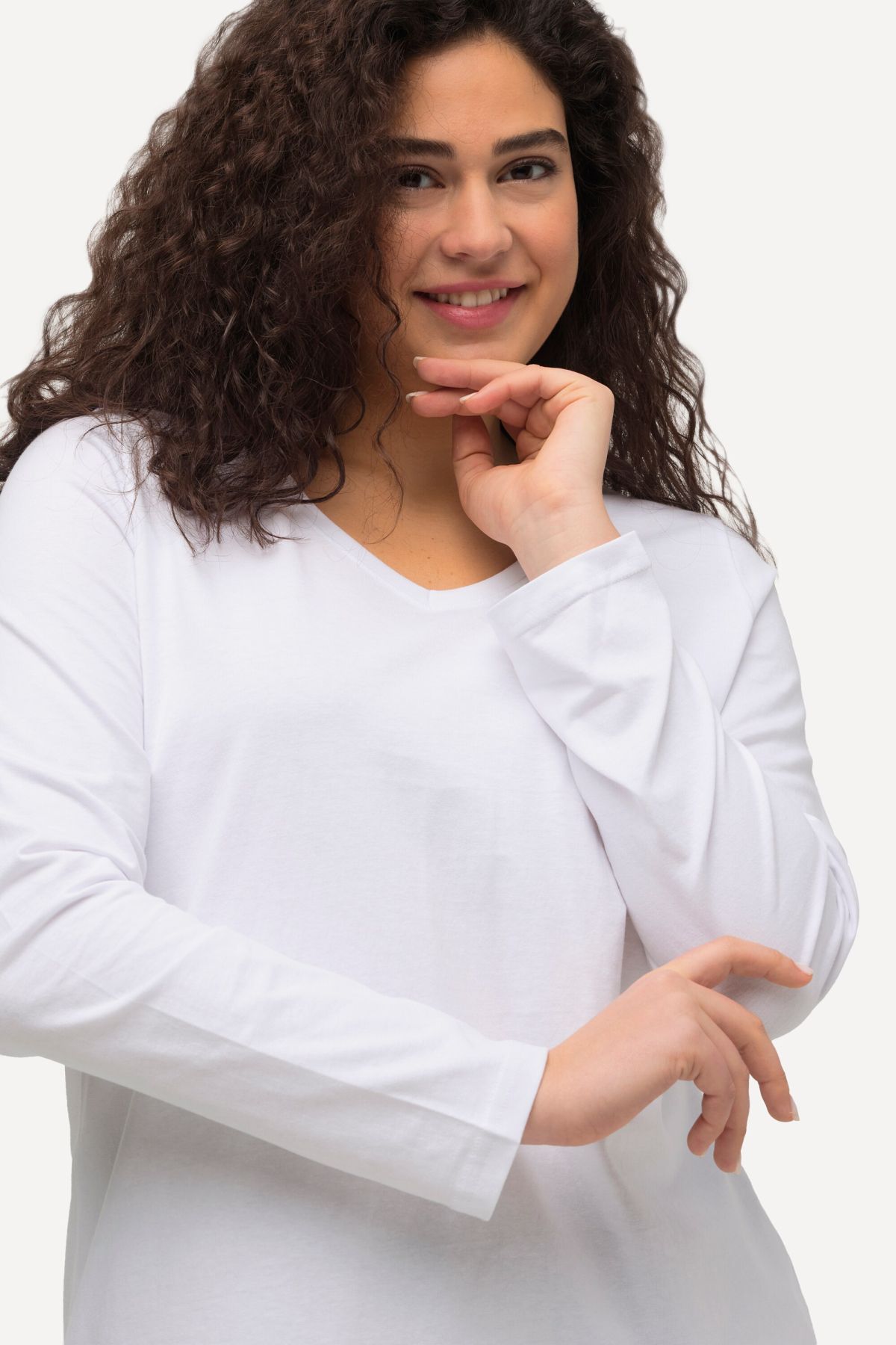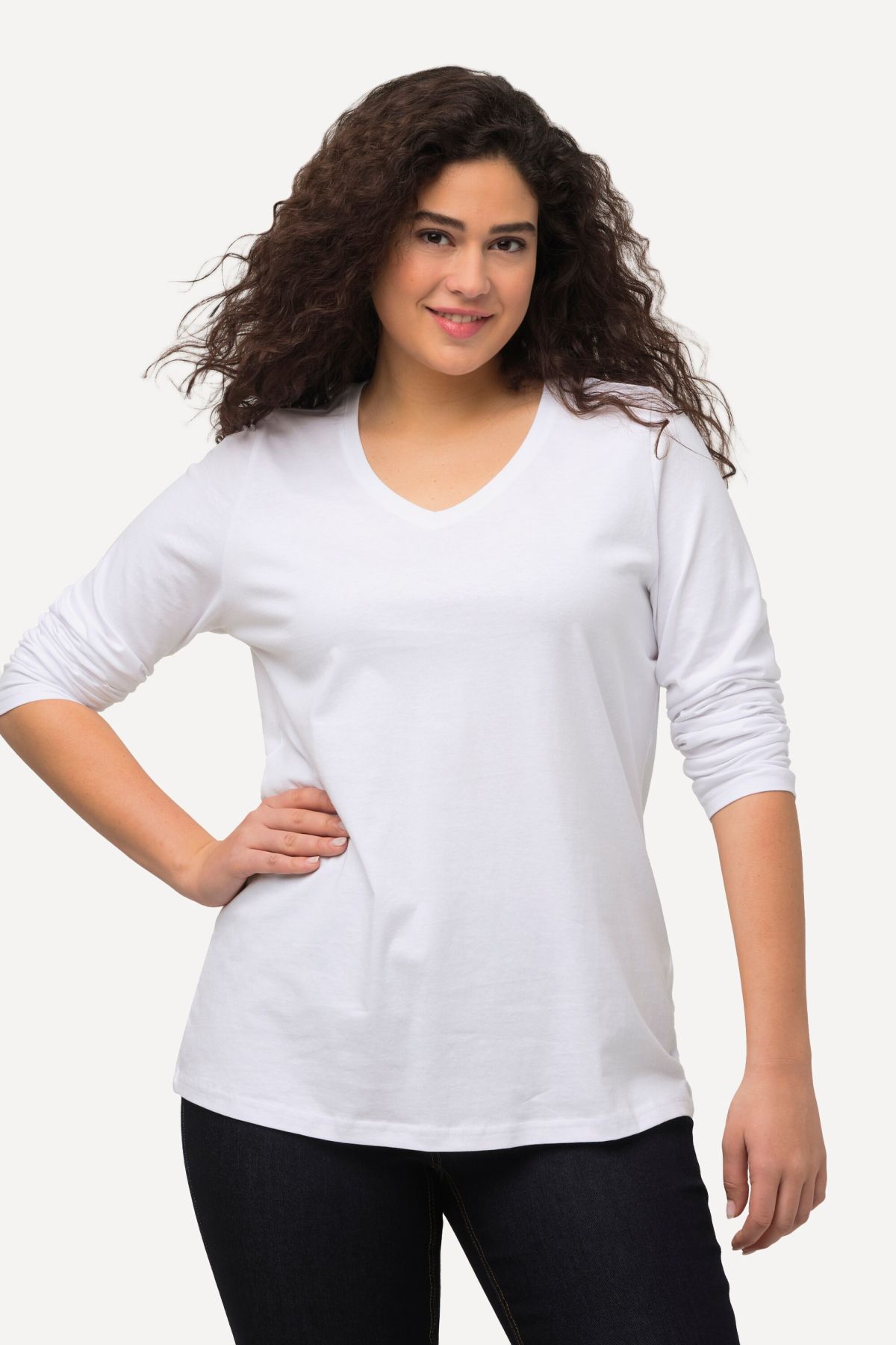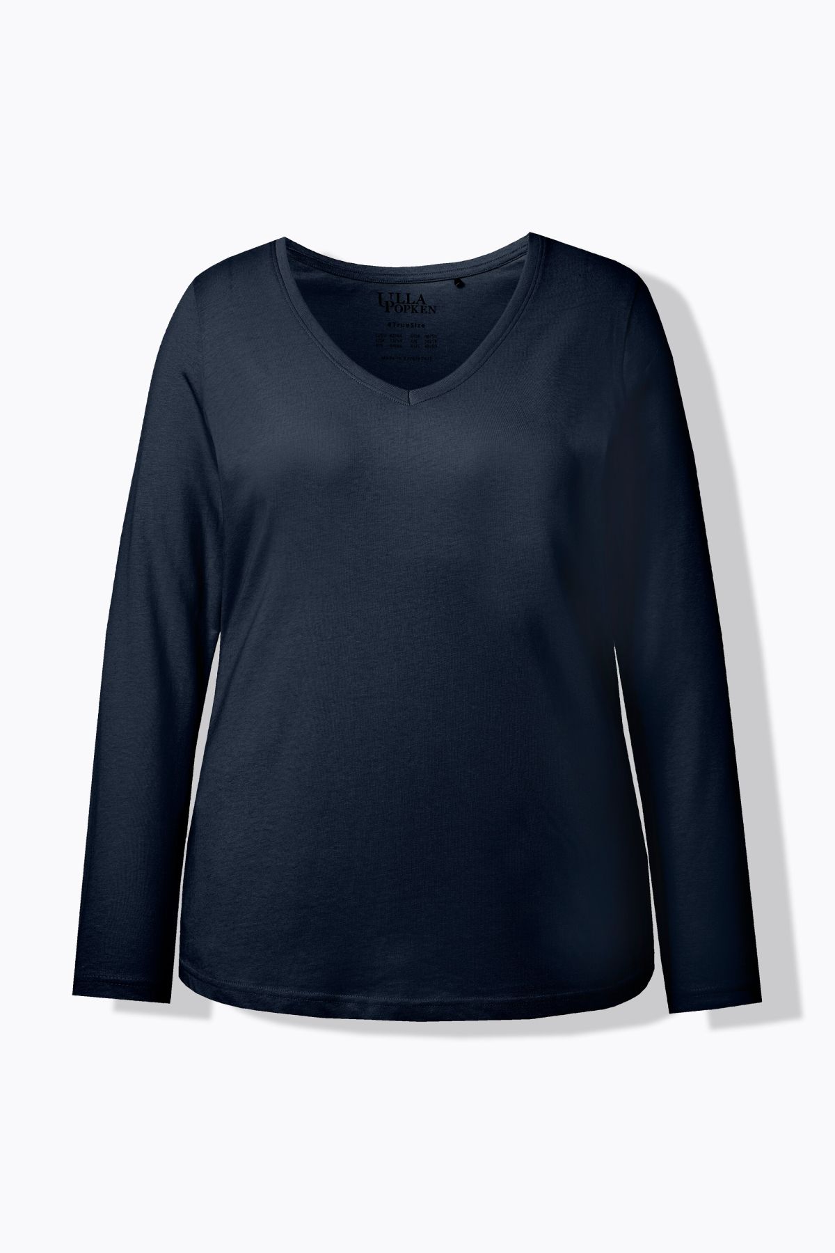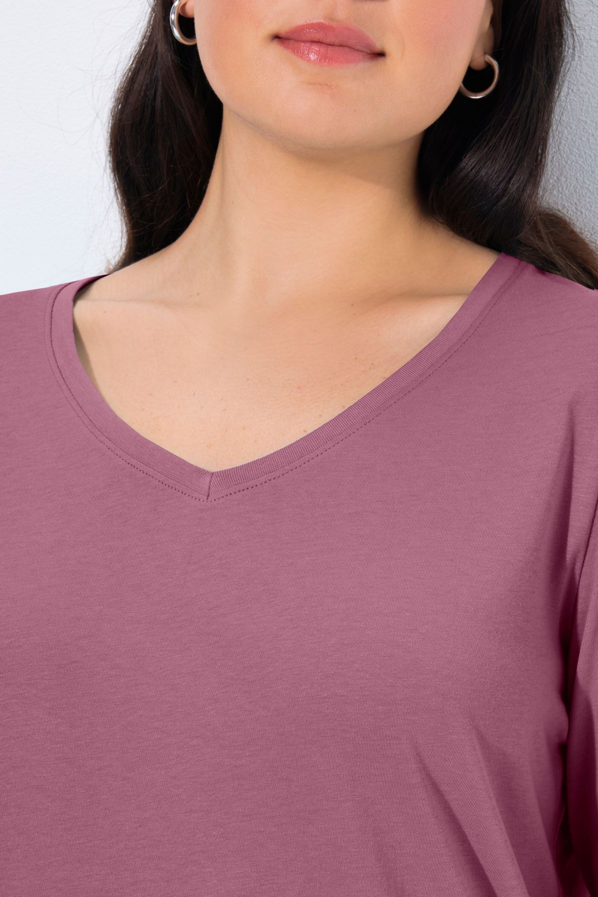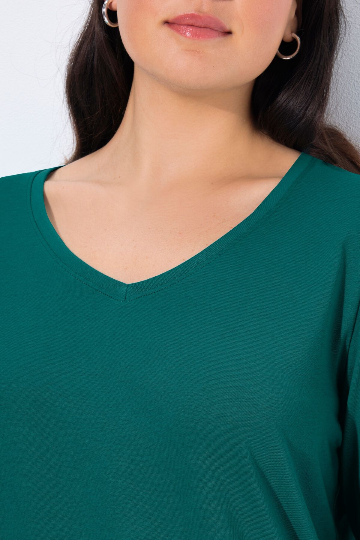 Тениска памучна с дълги ръкави и втален силует. С V - образно деколте