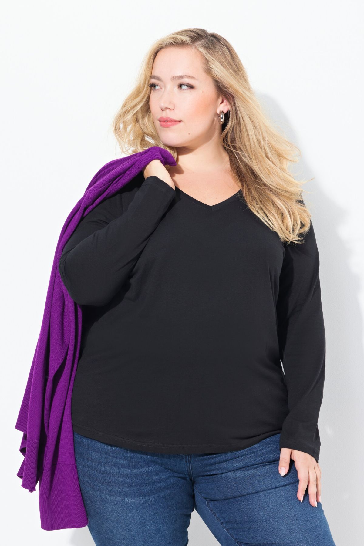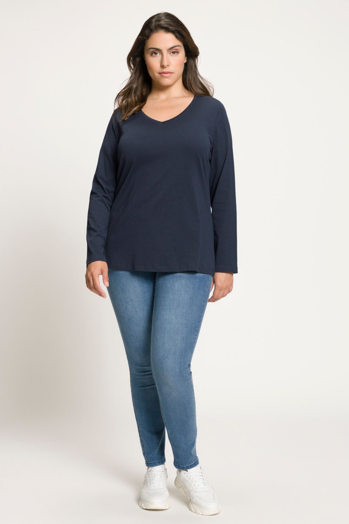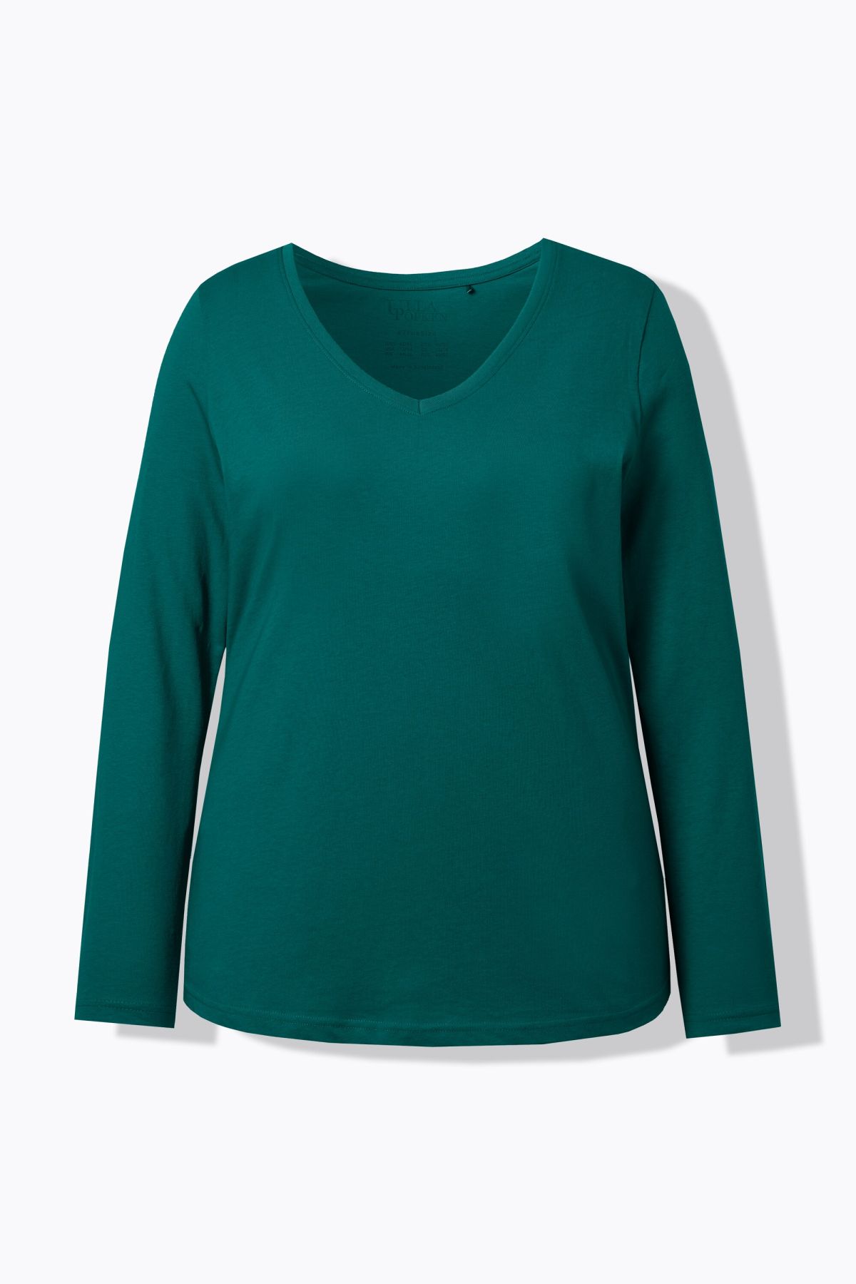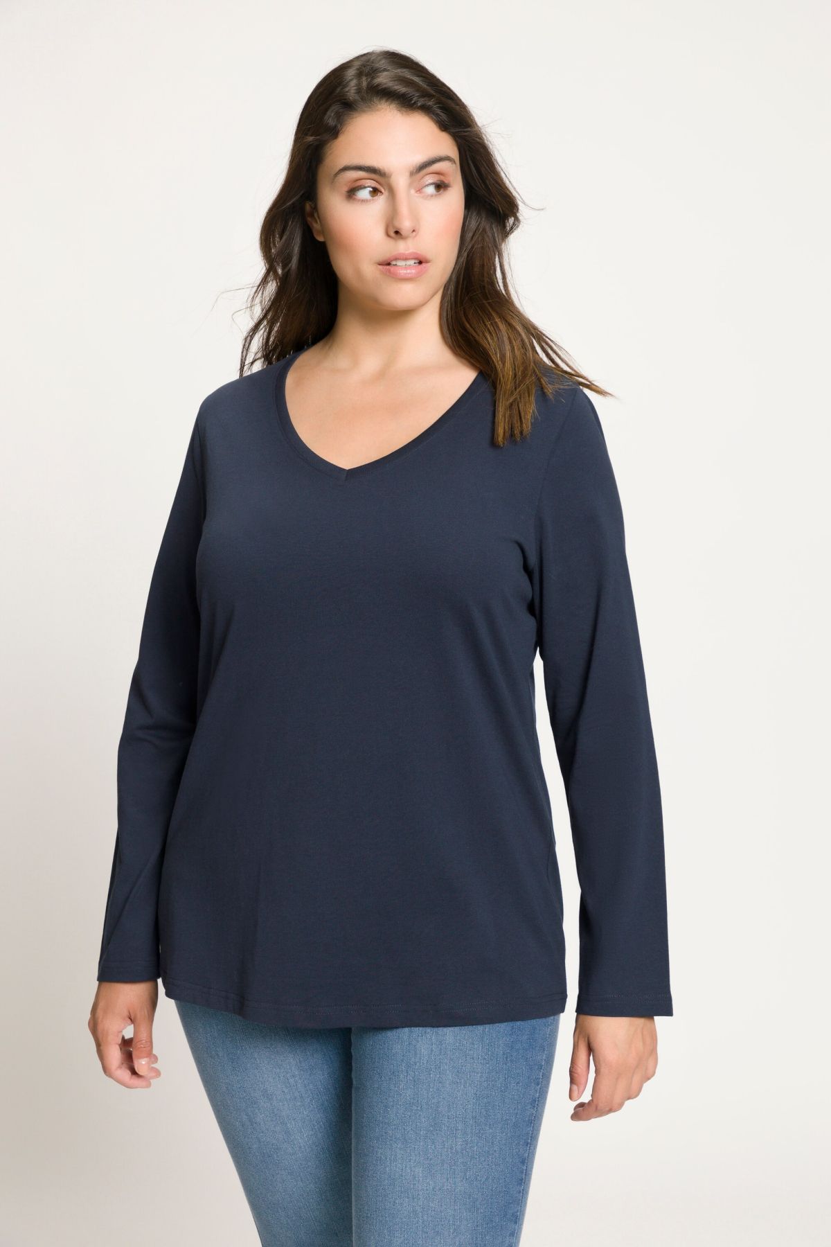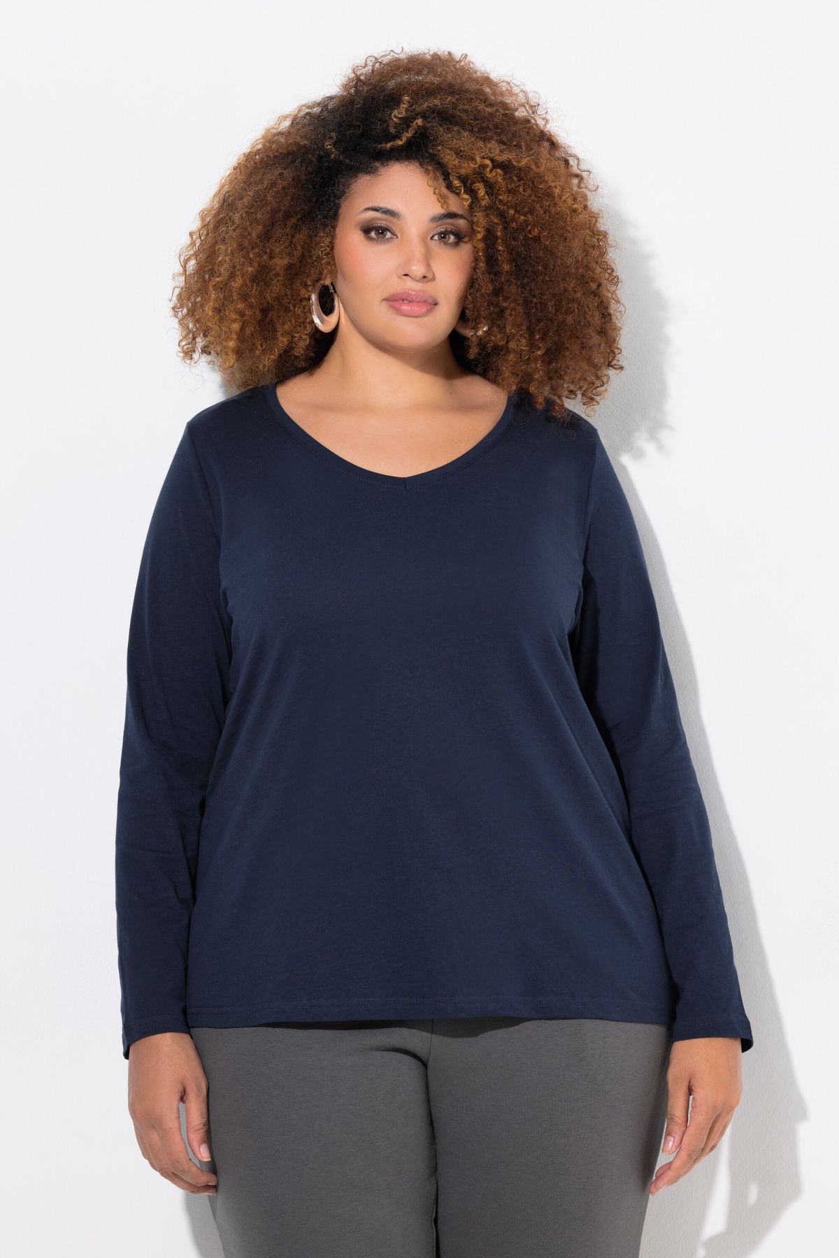 Тениска памучна с дълги ръкави и втален силует. С V - образно деколте