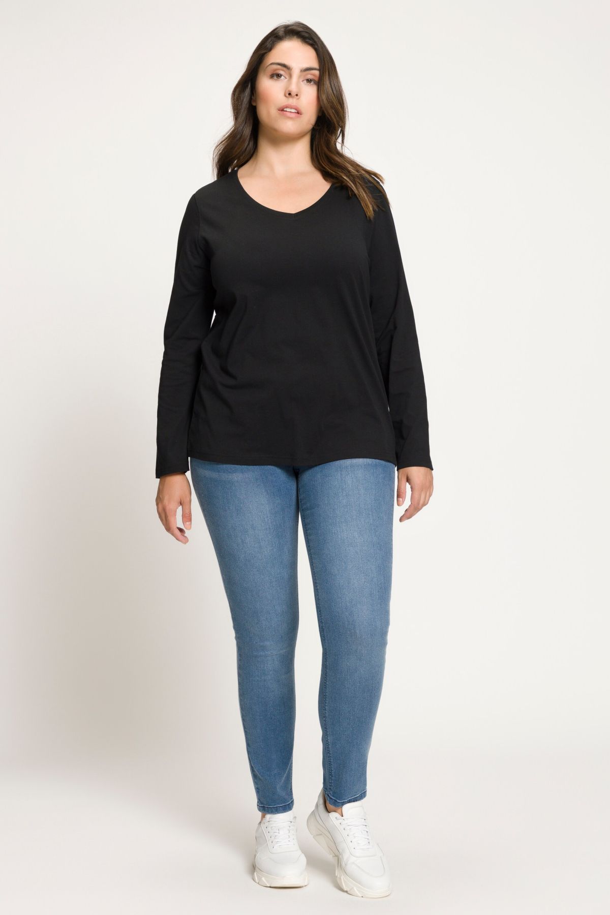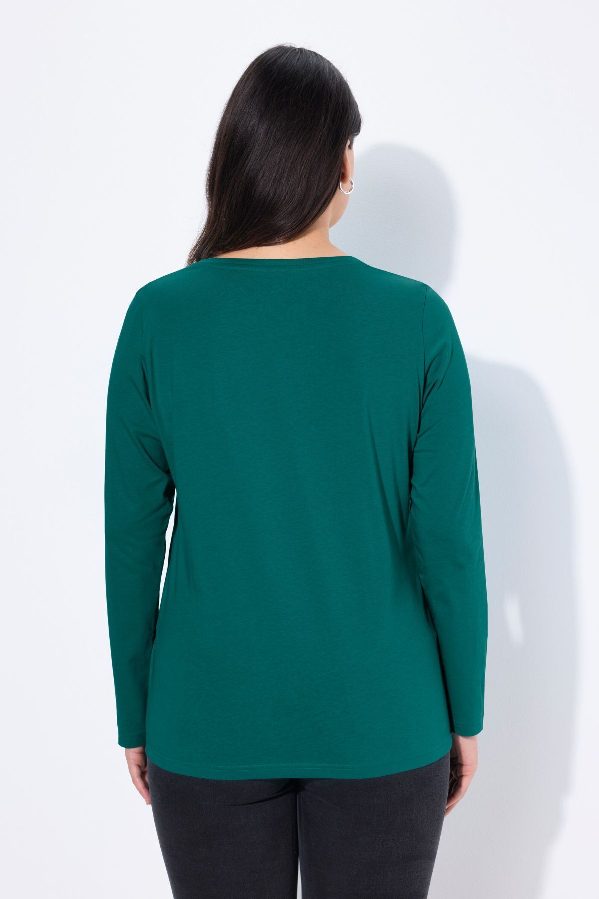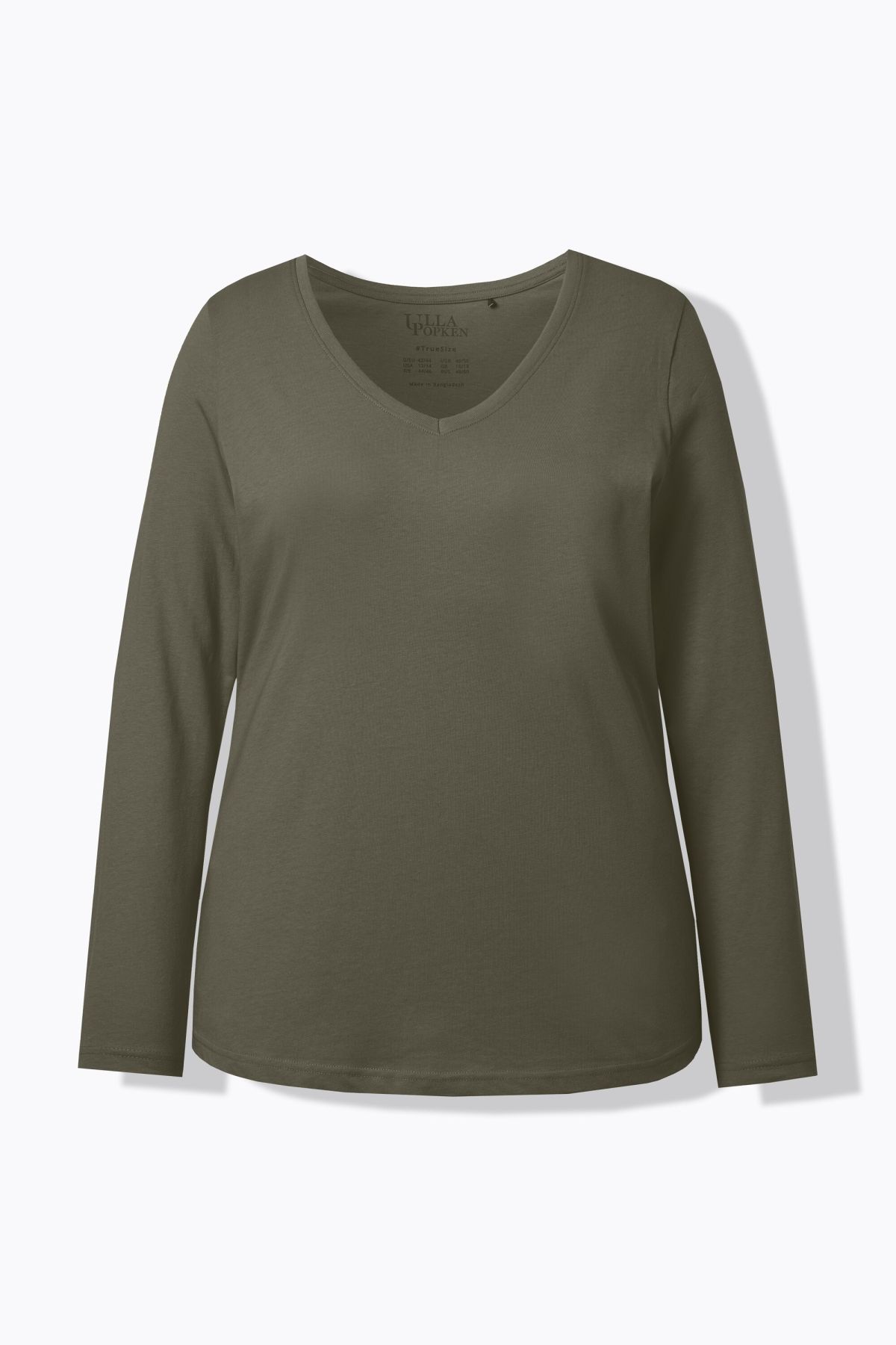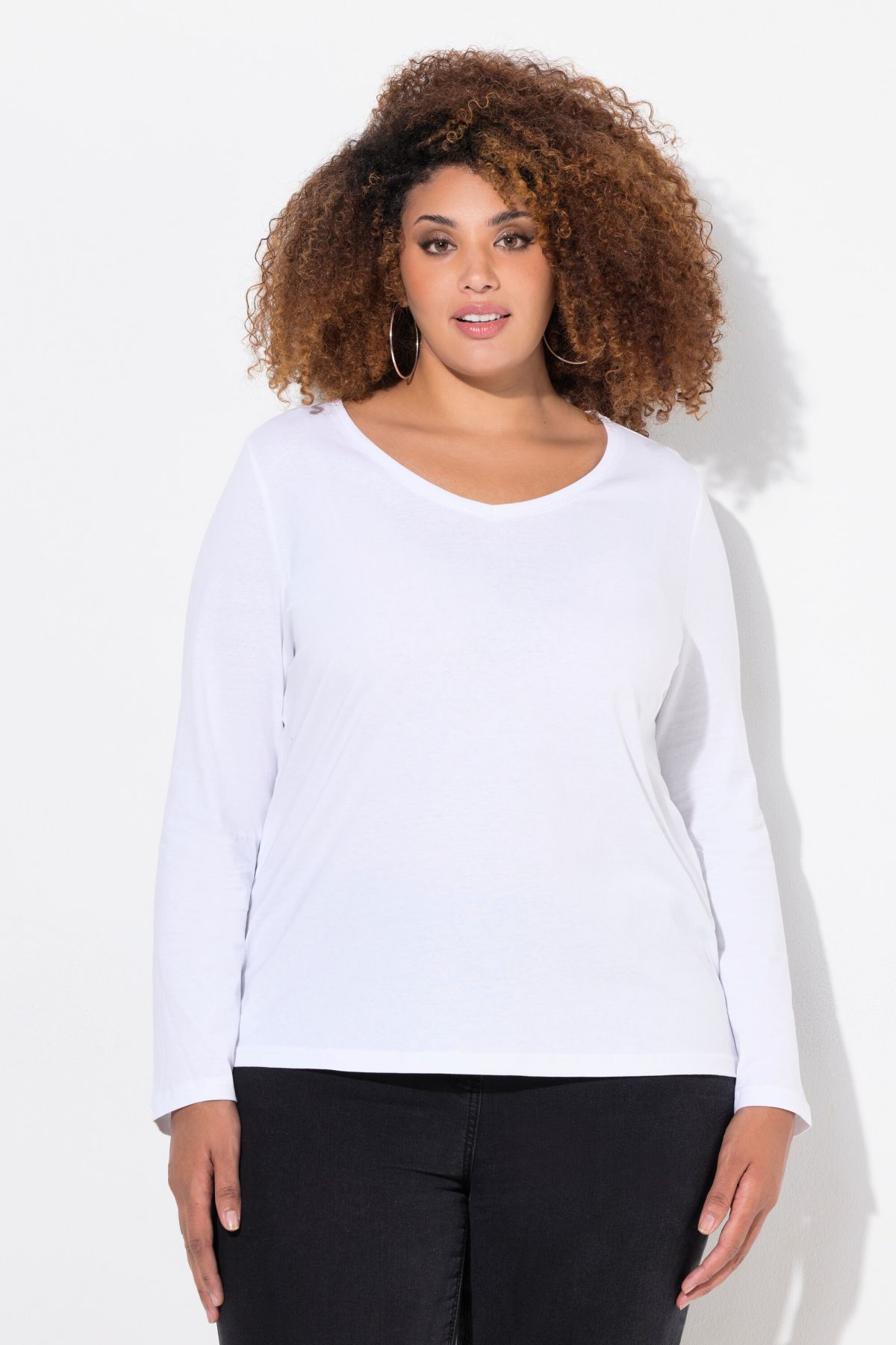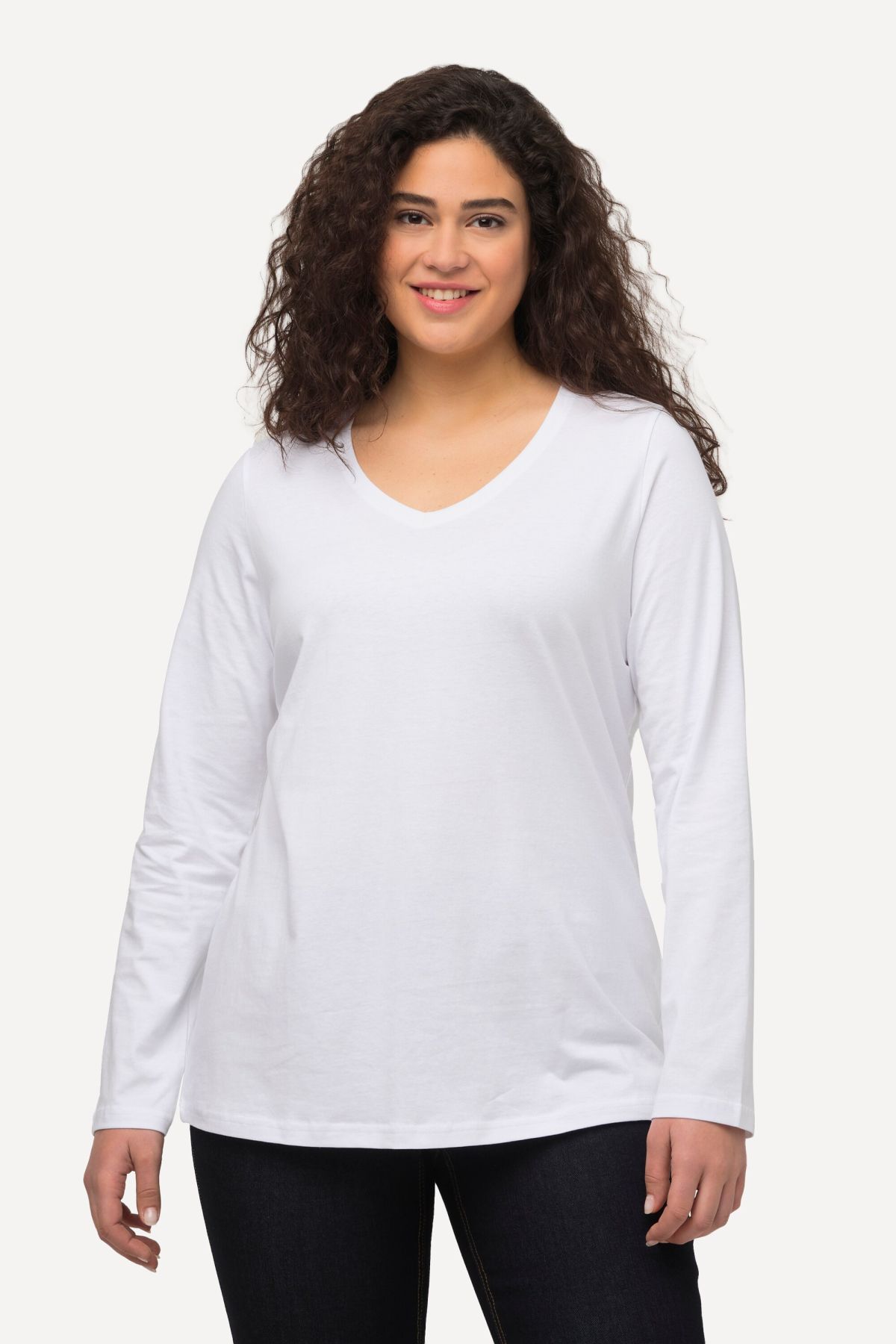 Тениска памучна с дълги ръкави и втален силует. С V - образно деколте