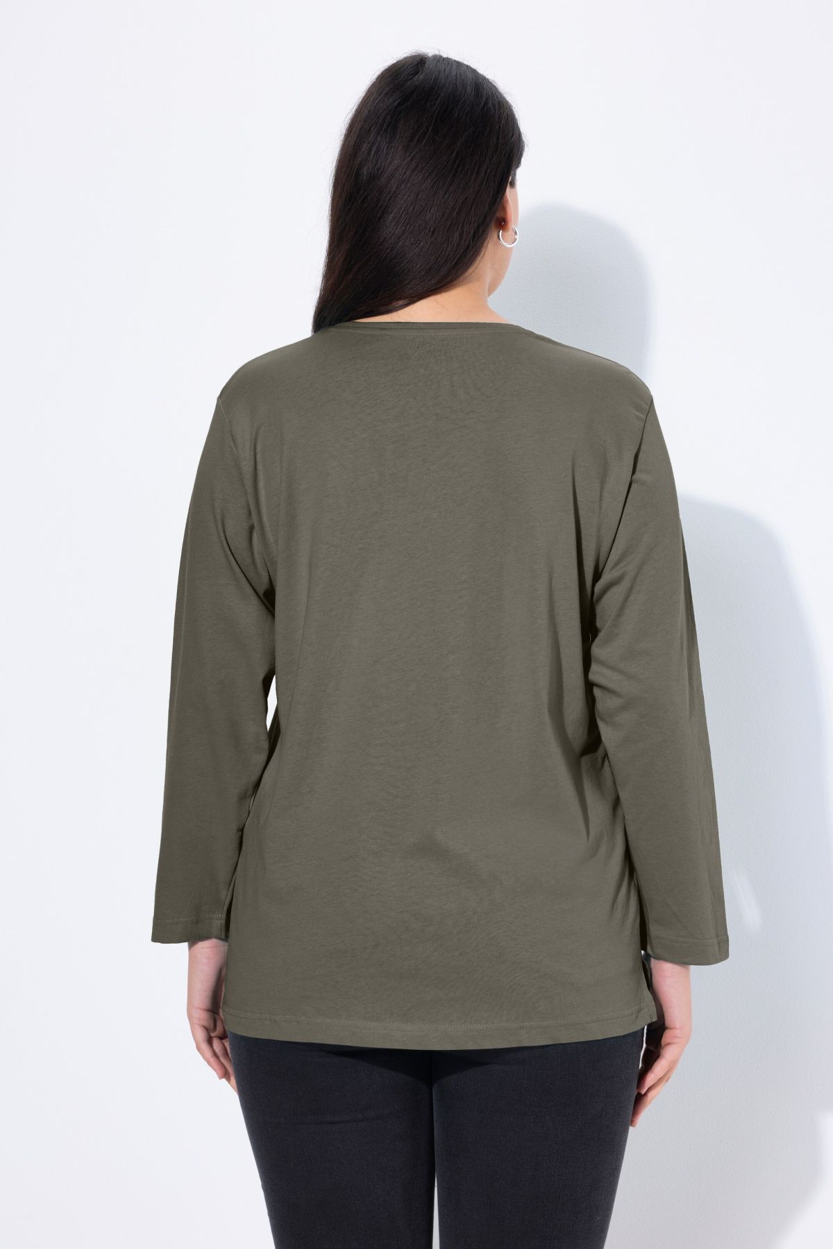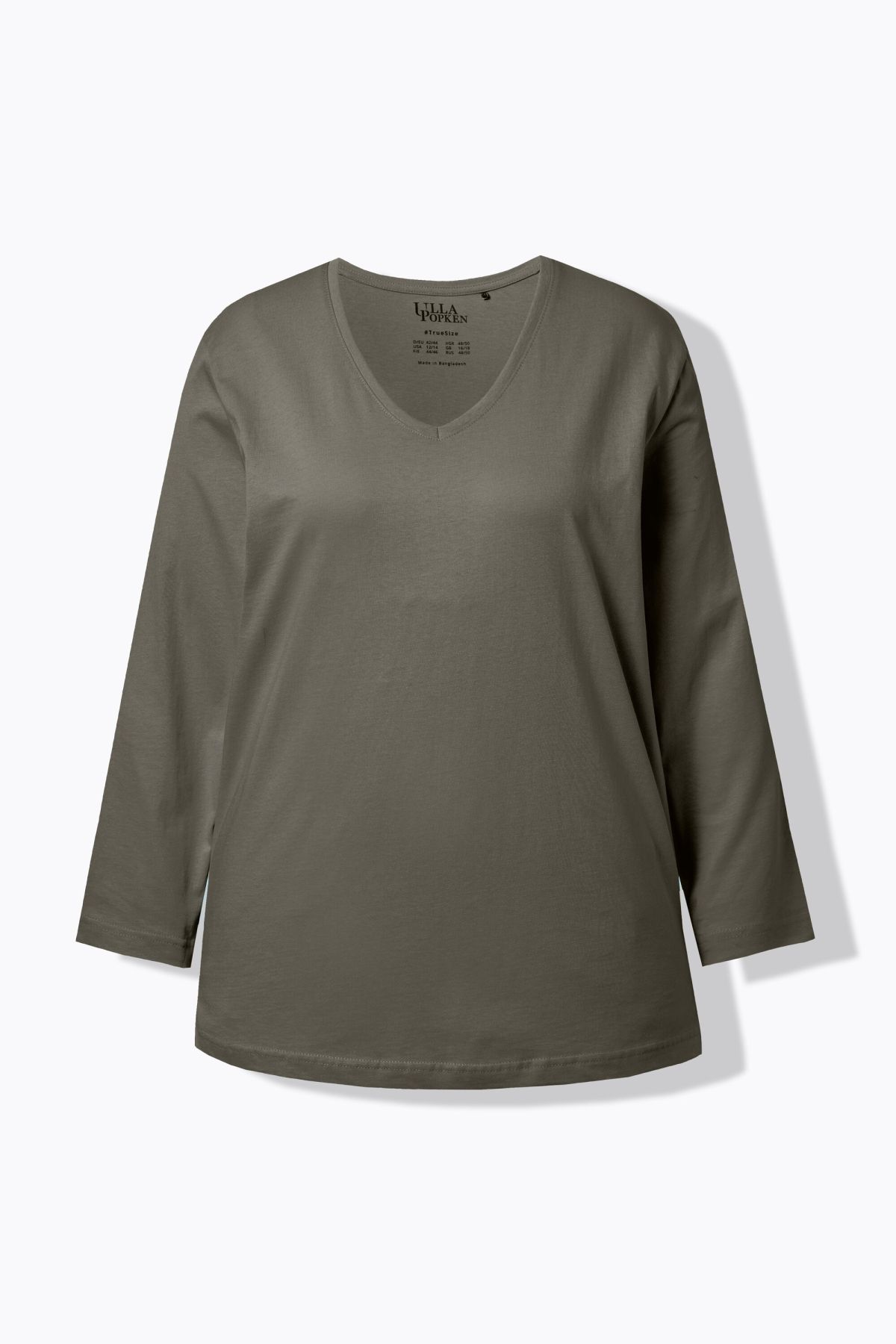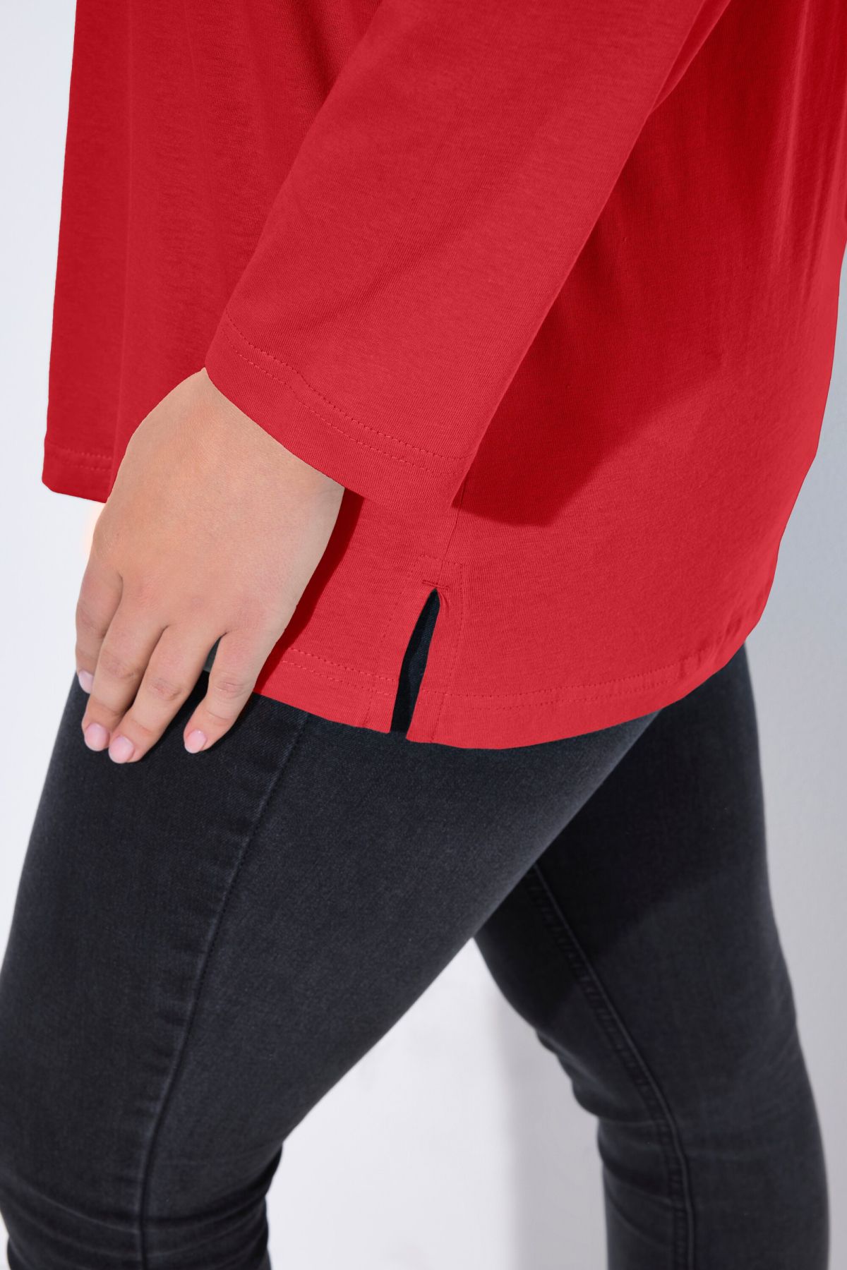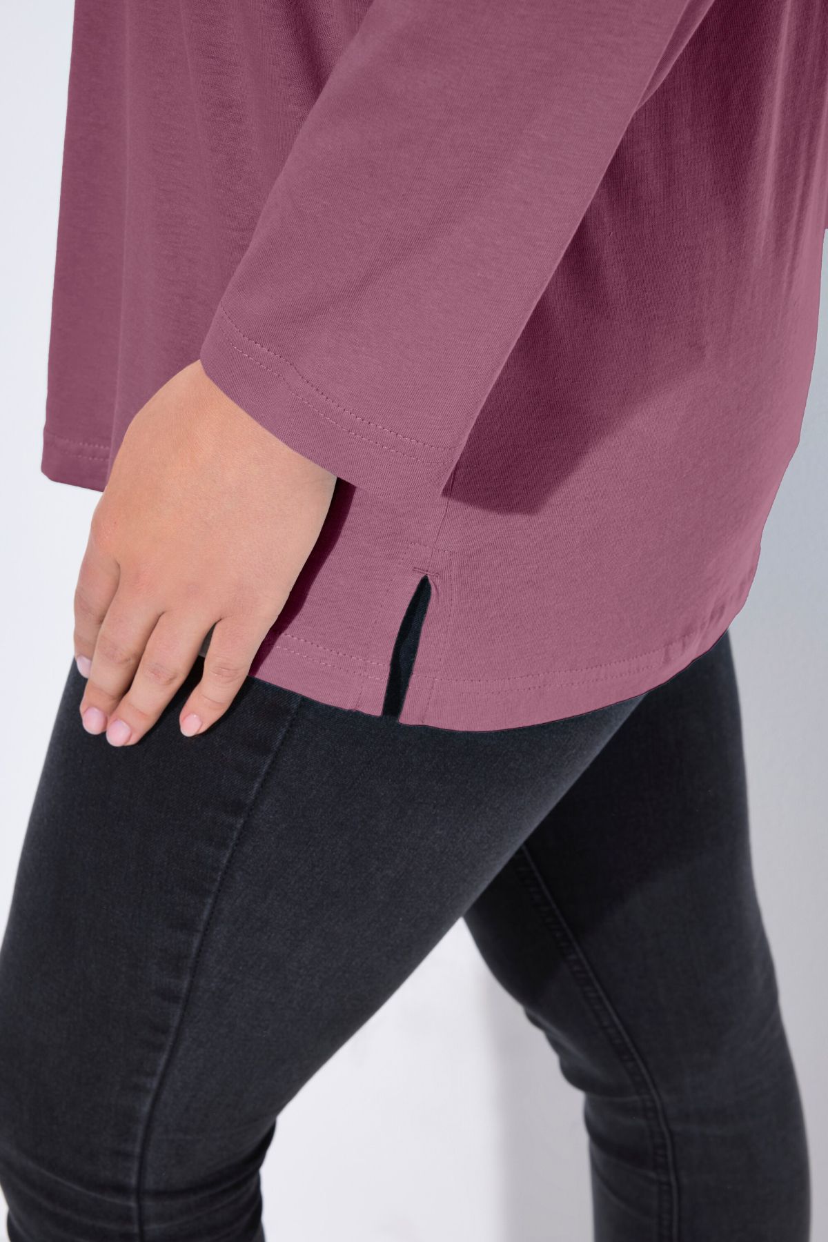 Блуза от памук със свободна кройка. С заоблено V - образно деколте, дълги ръкави и странични цепки.