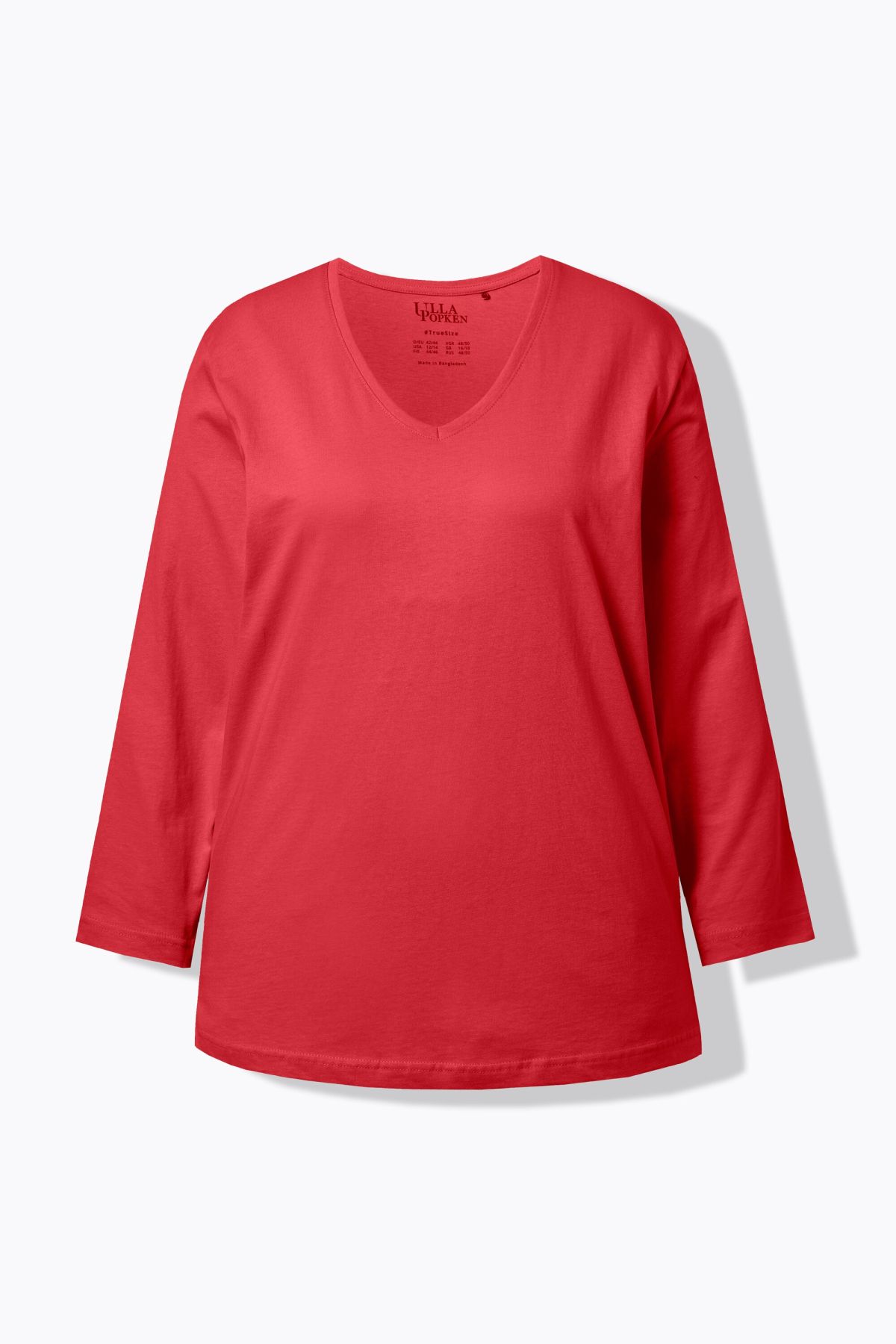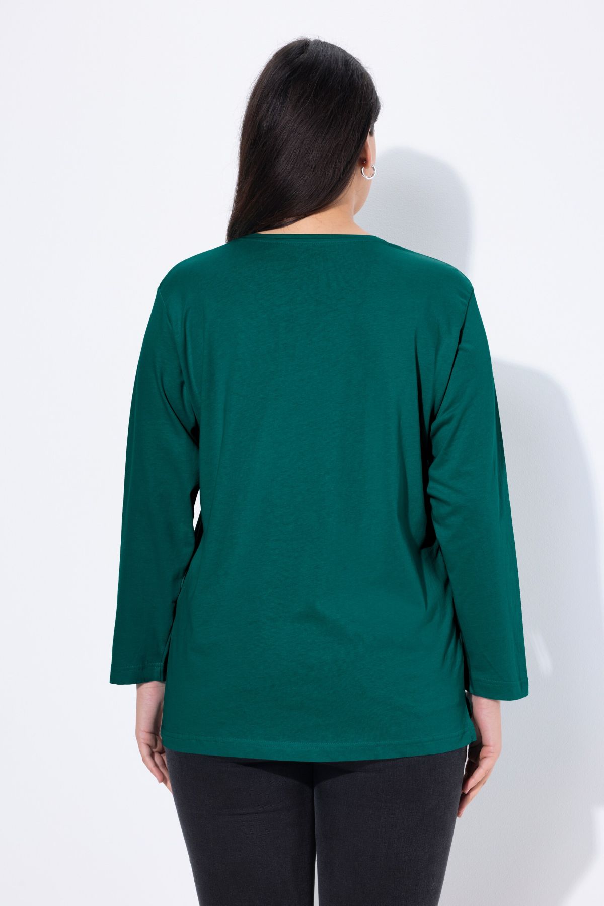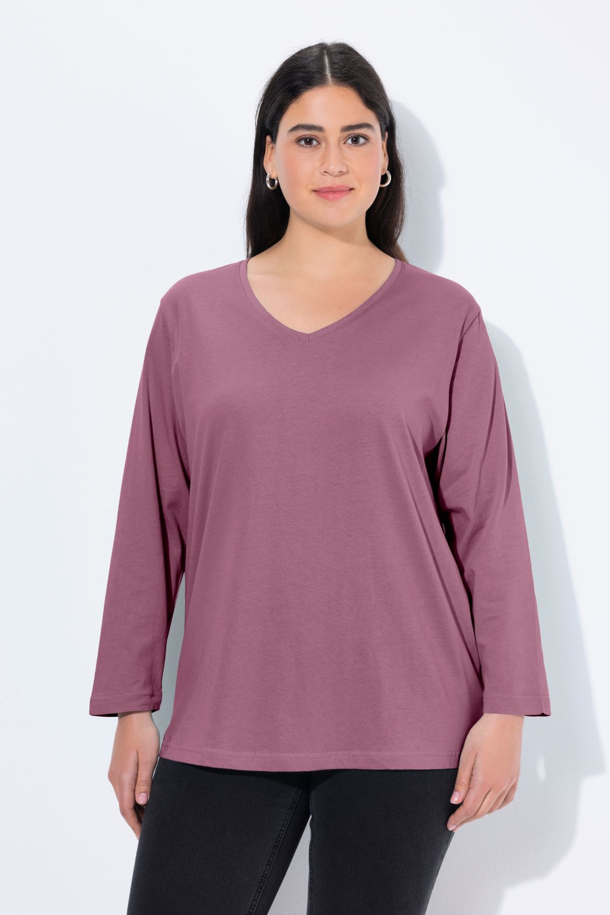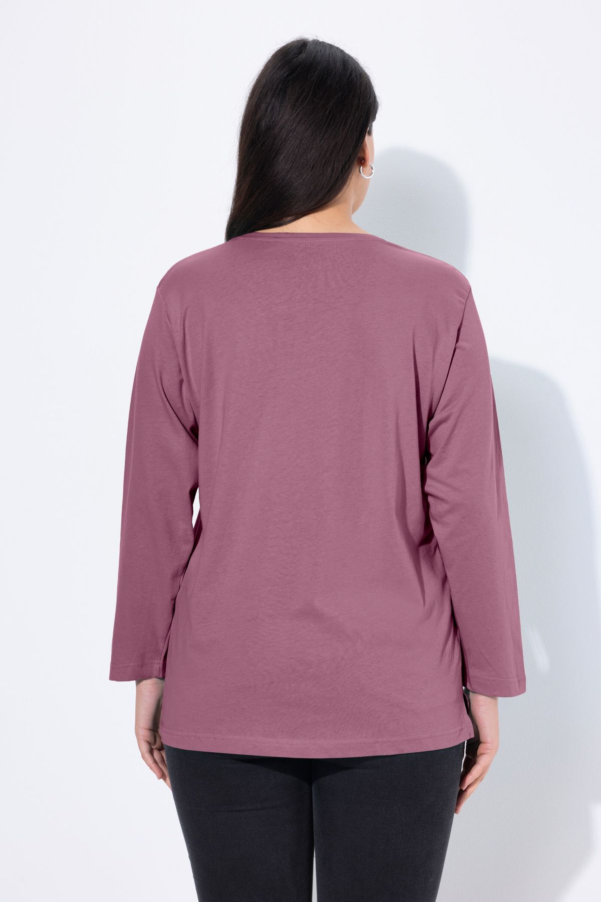 Блуза от памук със свободна кройка. С заоблено V - образно деколте, дълги ръкави и странични цепки.