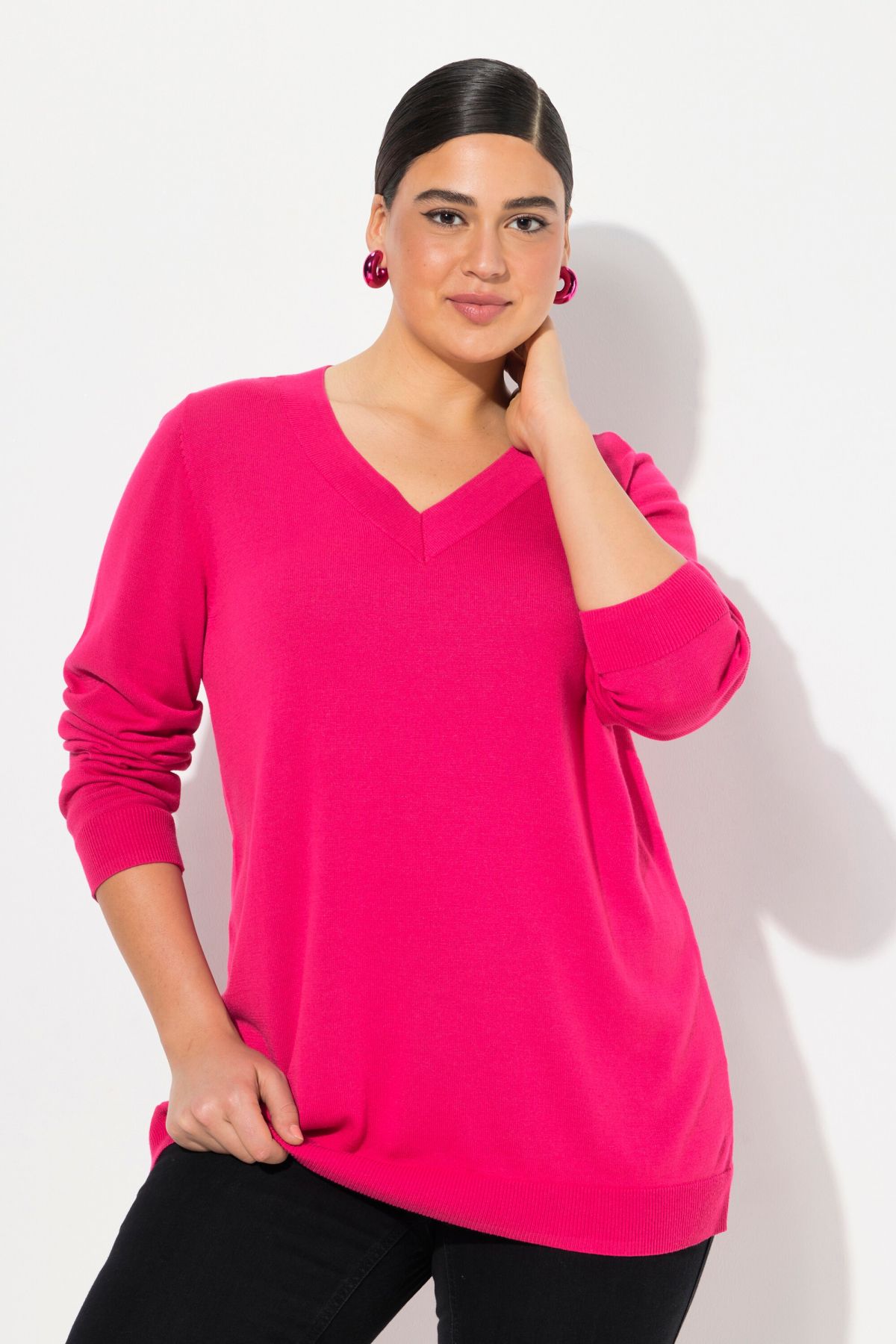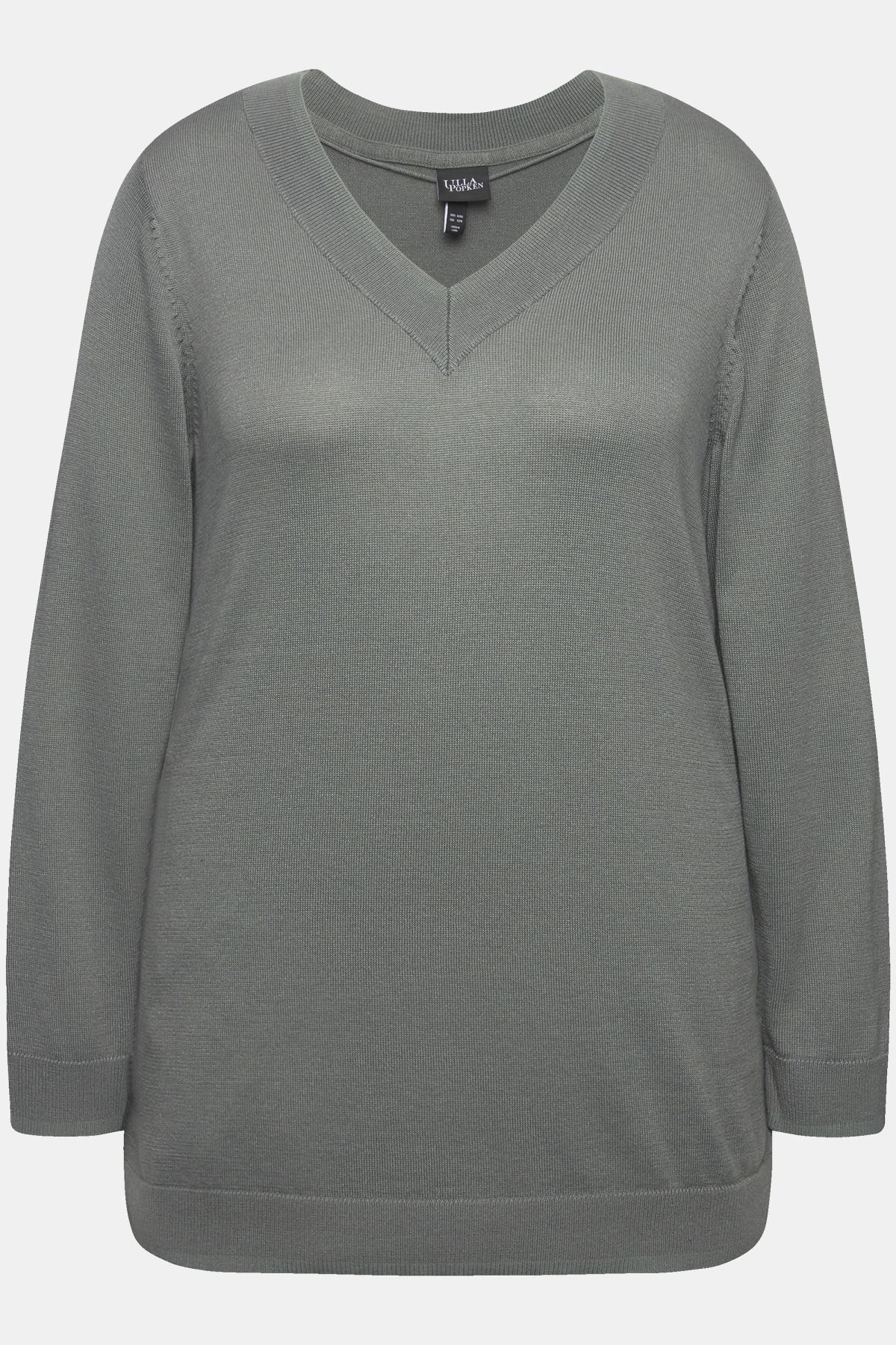 Класически пуловер - мек и удобен стил с рипсено V - образно деколте, дълги ръкави с еластичен маншет и подгъв.