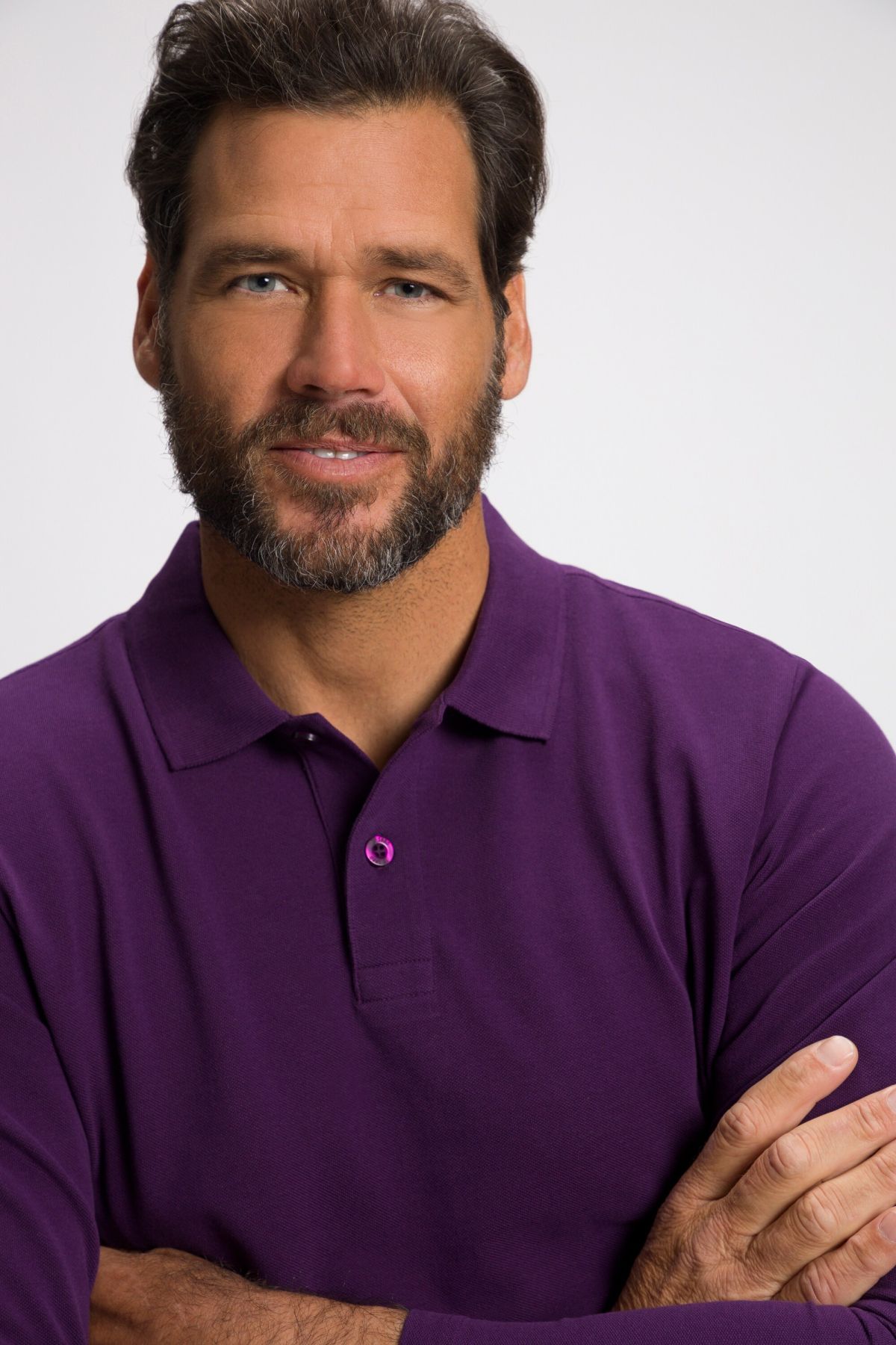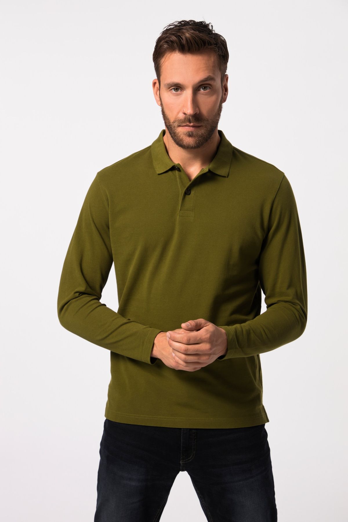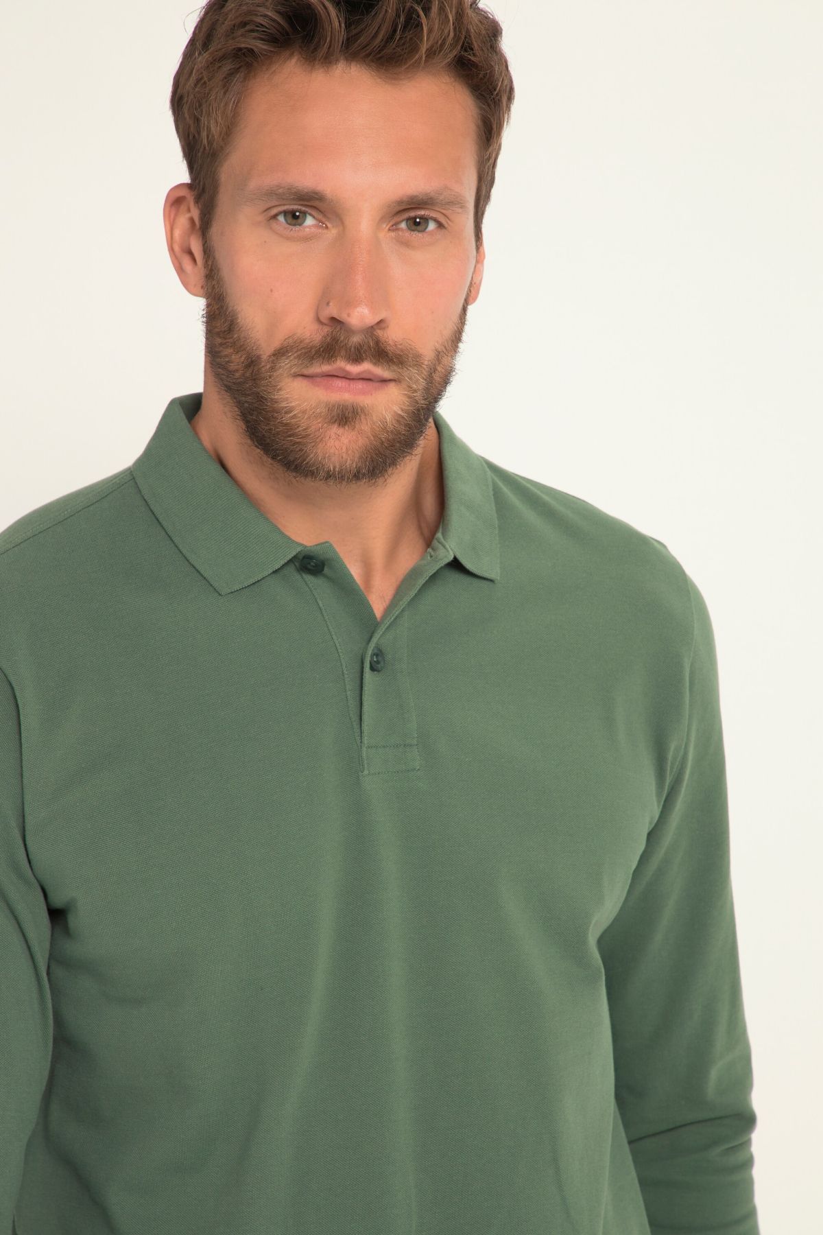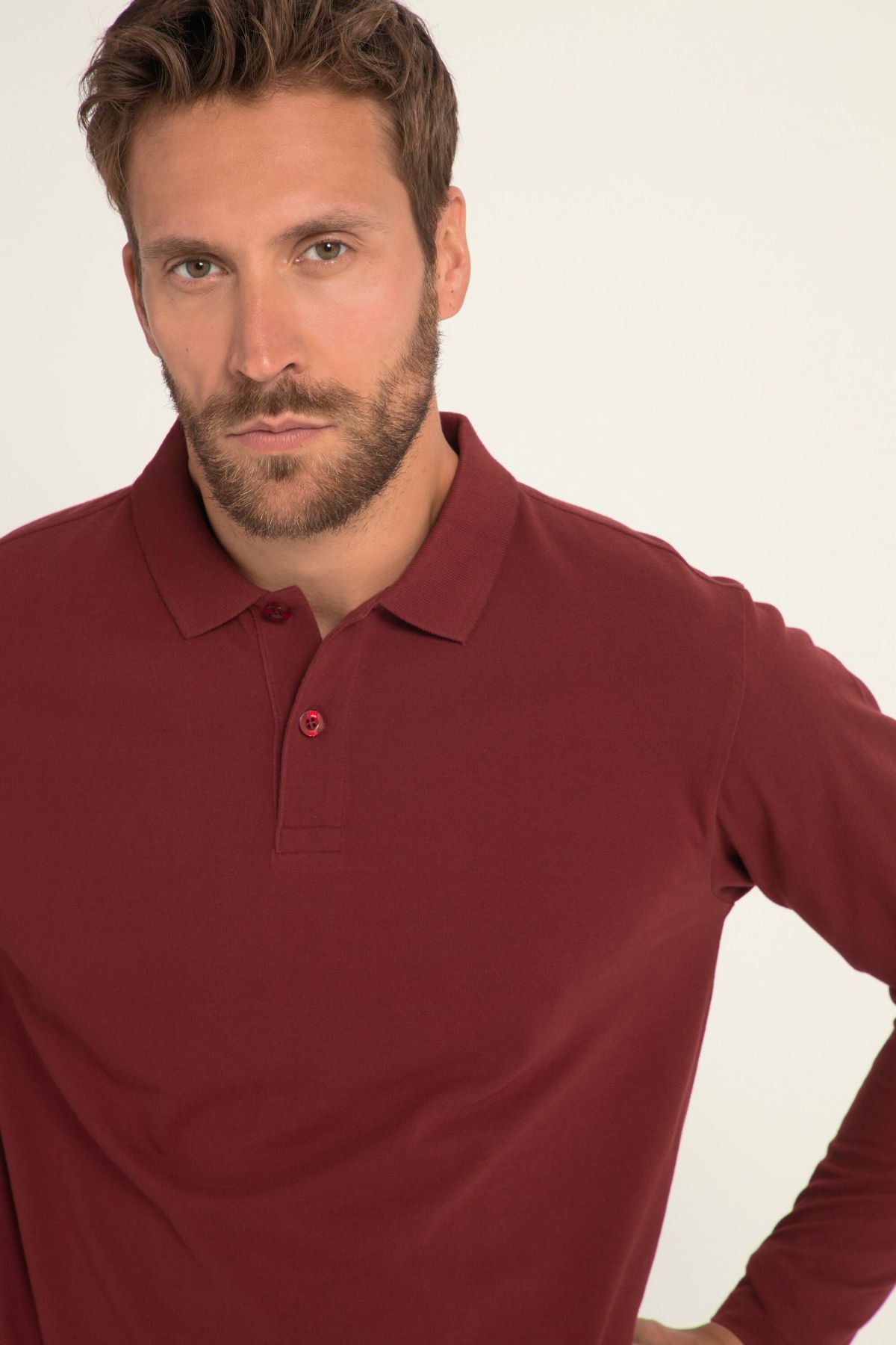 Риза с дълъг ръкав, поло яка и лого на подгъва. Доказаното прилягане ще ви убеди дори при големи размери.