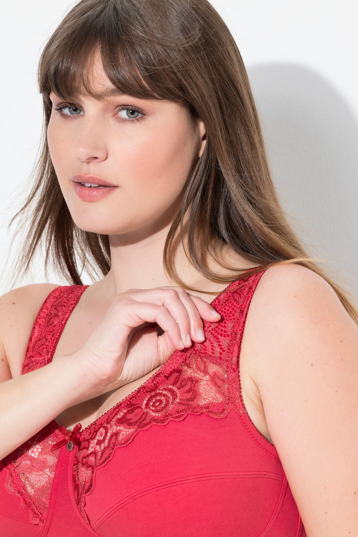 Поддържащ сутиен тип Kelly без банели с дантела едноцветен акцент и сатенена панделка посредата. С широки, комфортни презрамки и задно закопчаване с метални кукички.