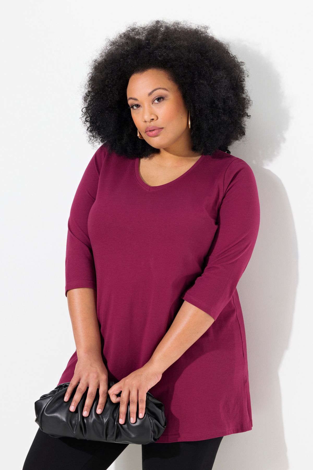 Туника с А - линия на силуета и комфортно V - образно деколте, което е фаворит на сезона. С 3/4 ръкави и модерна визия.