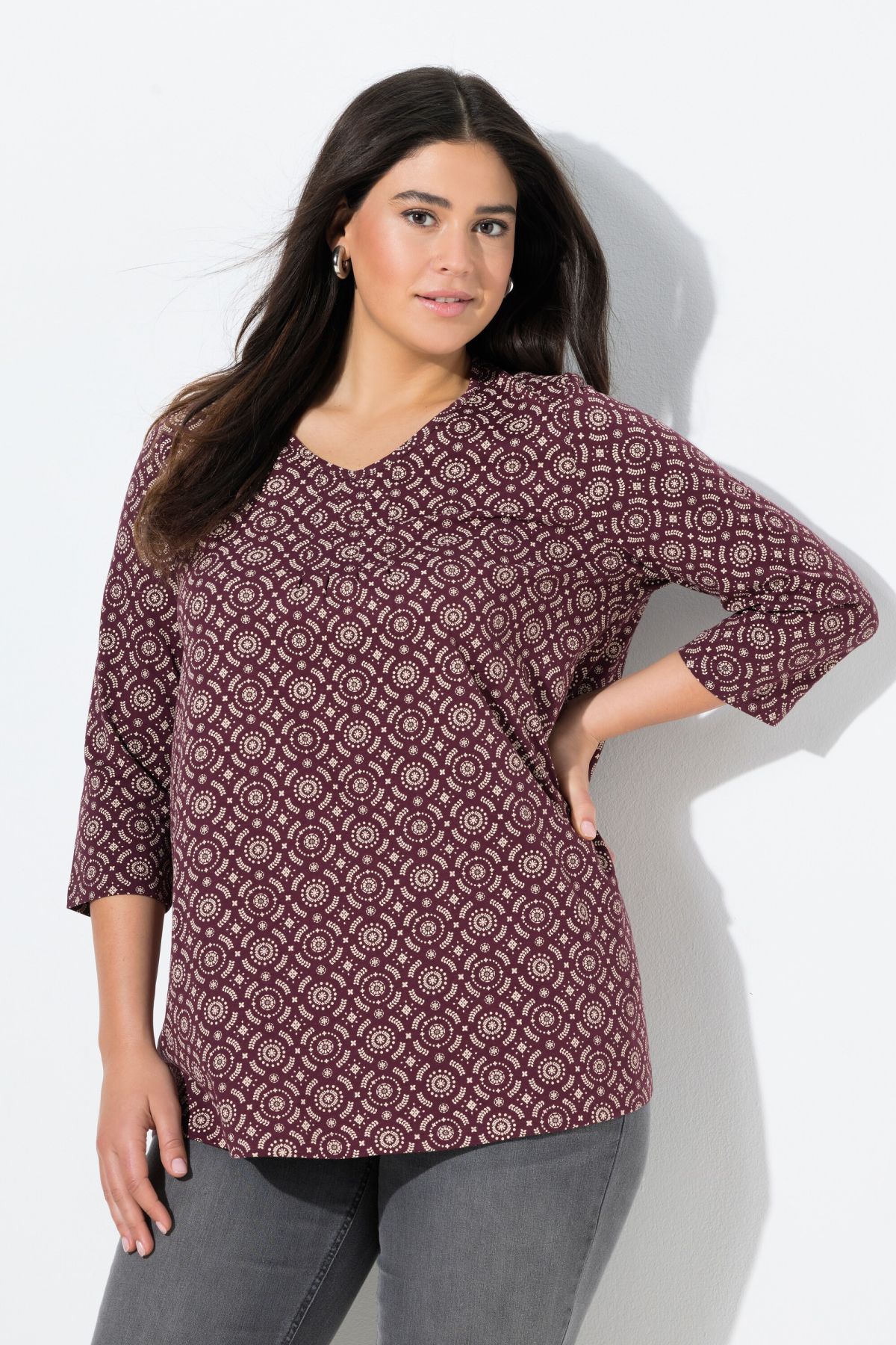 Тениска с графичен геометричен принт от комфортна памучна материя. С 3/4 ръкави и V - образно деколте