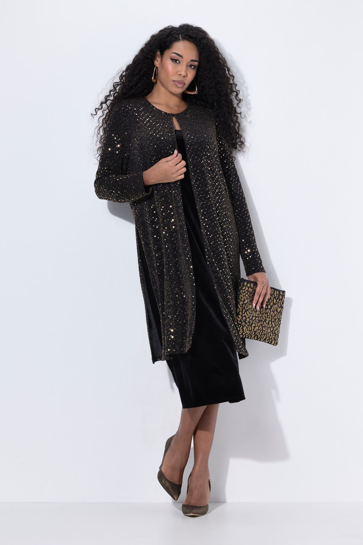 Удобно, отворено яке без закопчаване, фина мрежа с брокат, пайети, дълги ръкави, приятно еластично, дължина приблизително 100 см.