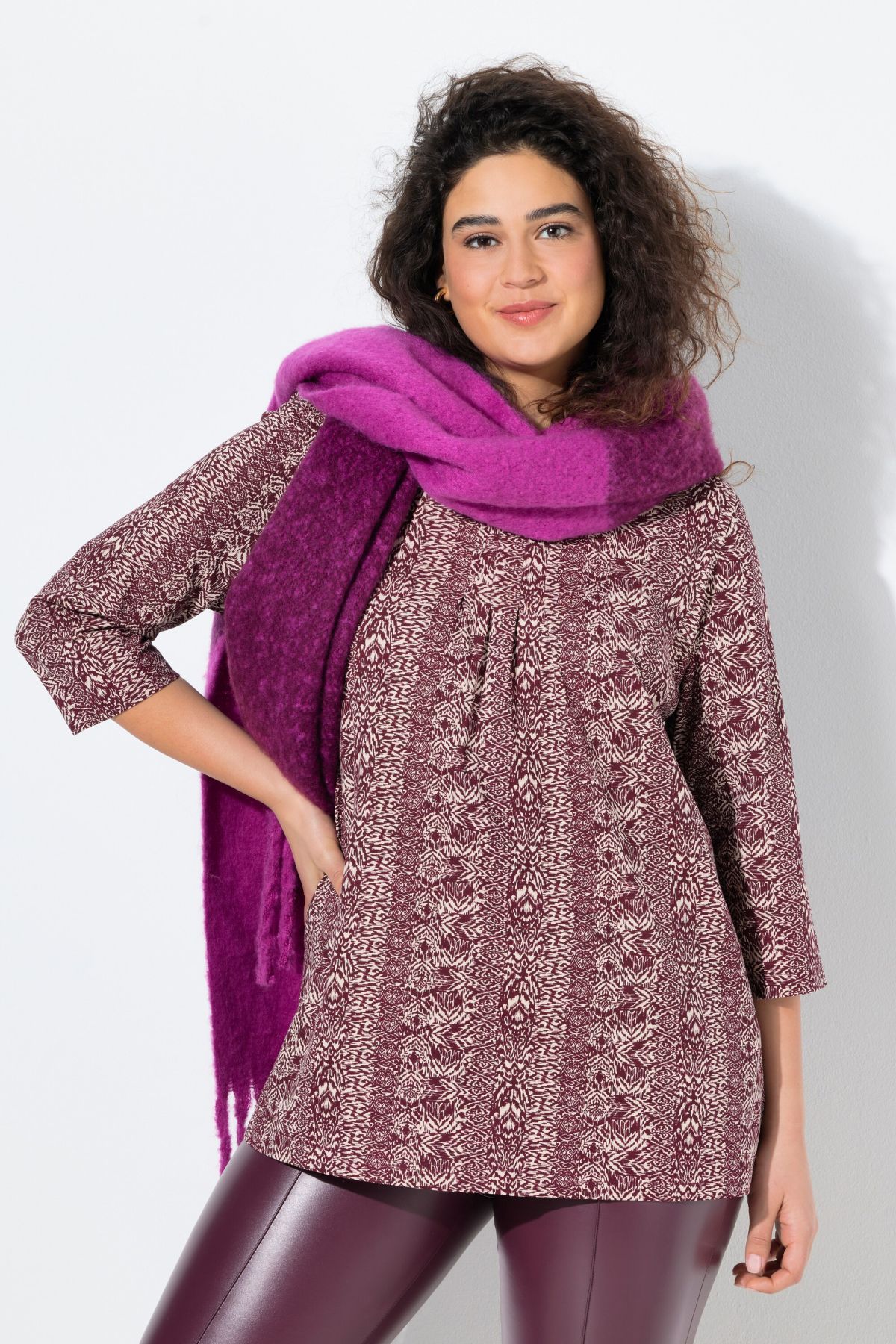 Тениска с микс от раирани принтове. С електрикови акценти. С V - образно деколте и 3/4 ръкави.