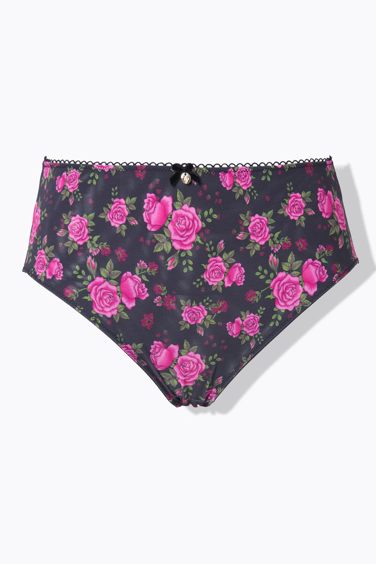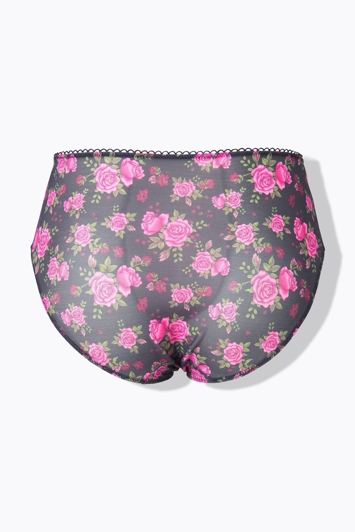 Бикини TruYou от микрофибър с принт на рози. С еластична талия с панделка посредата и памучна подплата. С комфортни отвори на краката.