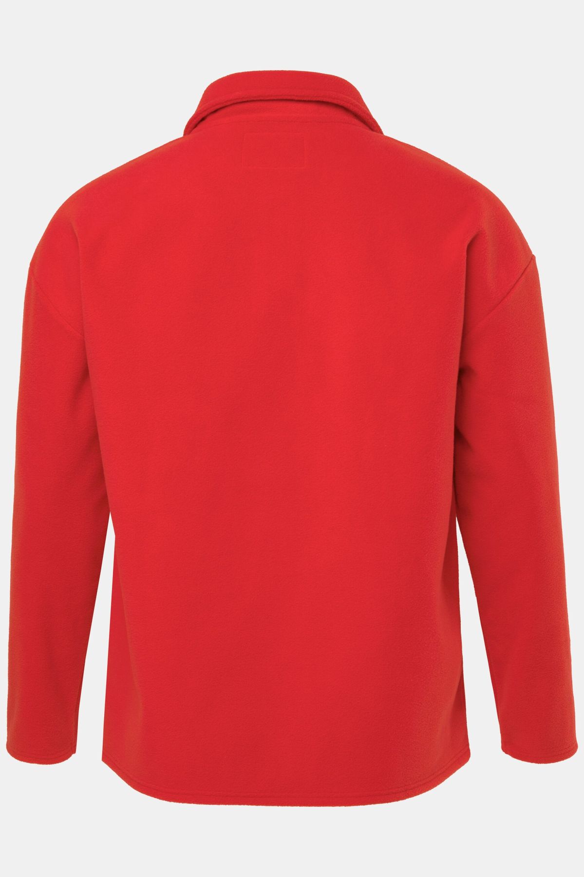 Размери от L до 8 XL, топъл полар ниво 3, яка тип поло, закопчаване с тик-так. Нашият модел е висок 190 см и носи размер 4 XL, коригирана дължина приблизително 73-85 см.