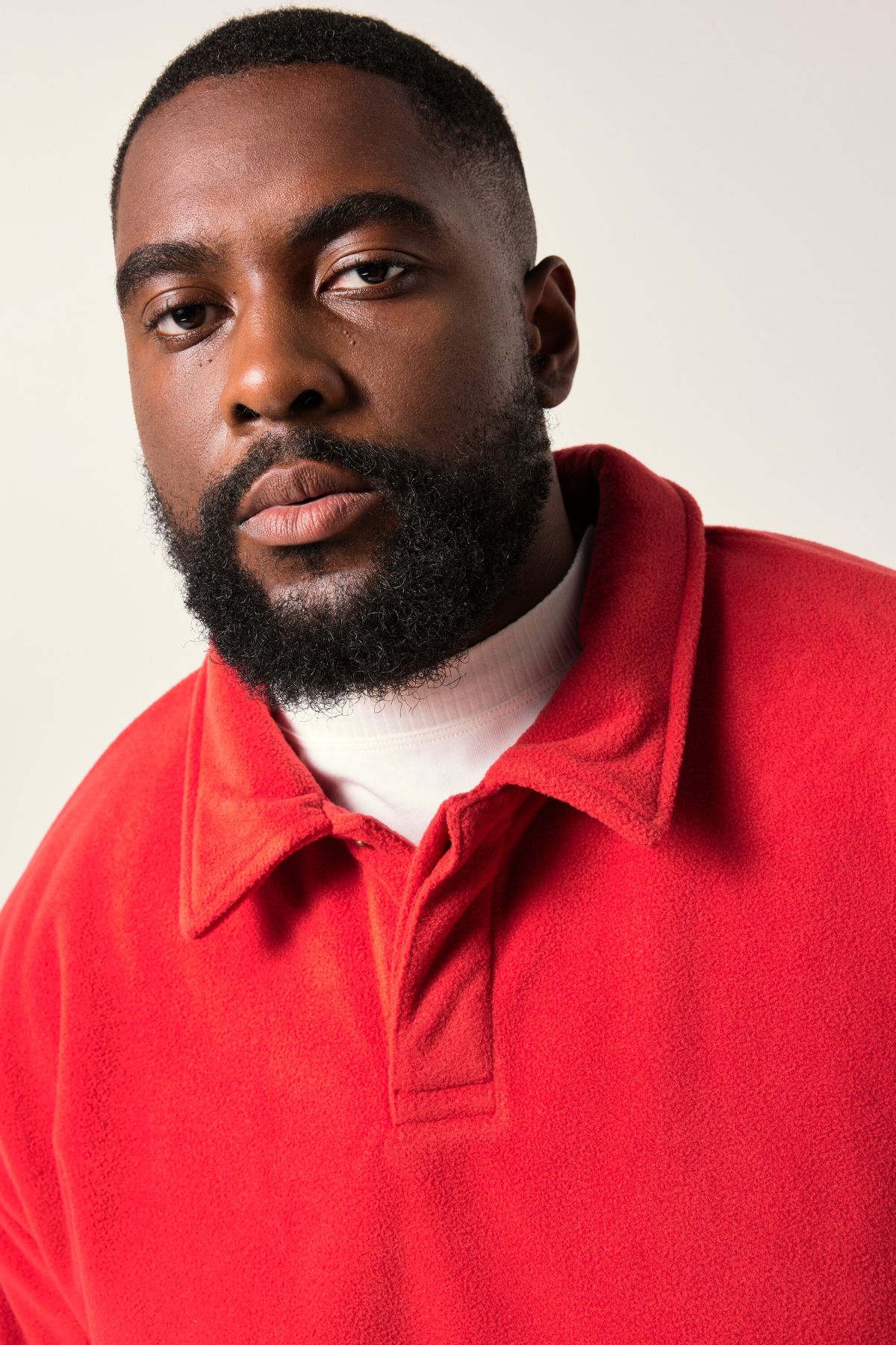 Поларен суитчър STHUGE с яка и копчета на деколтето. С разкроен силует и дълги ръкави. Стил и комфорт в ежедневието.
