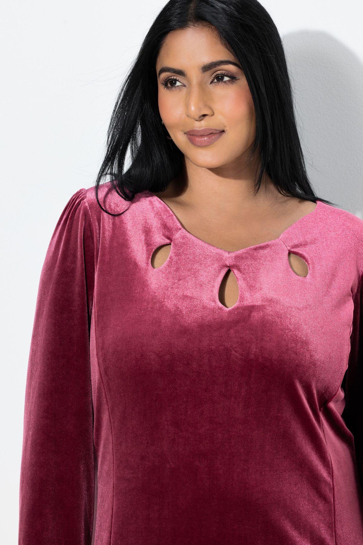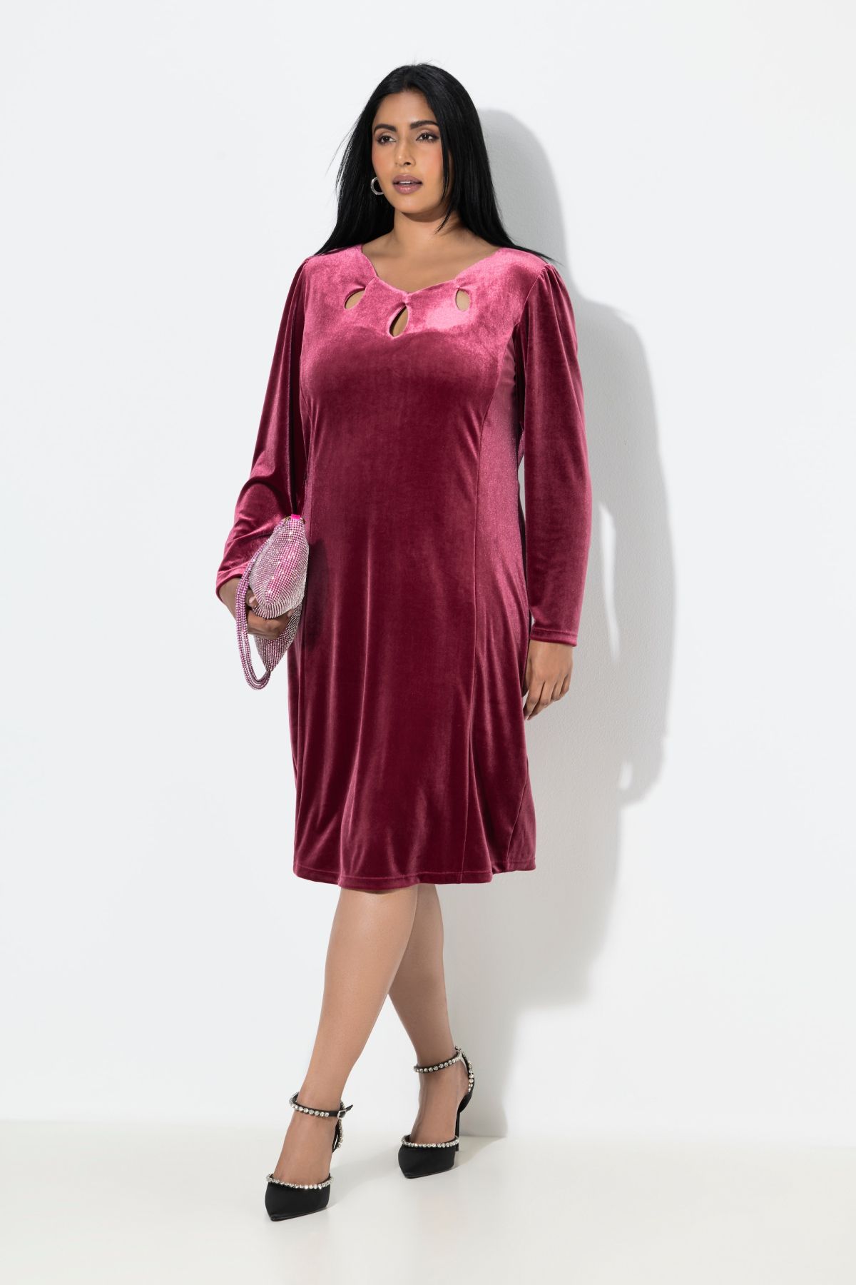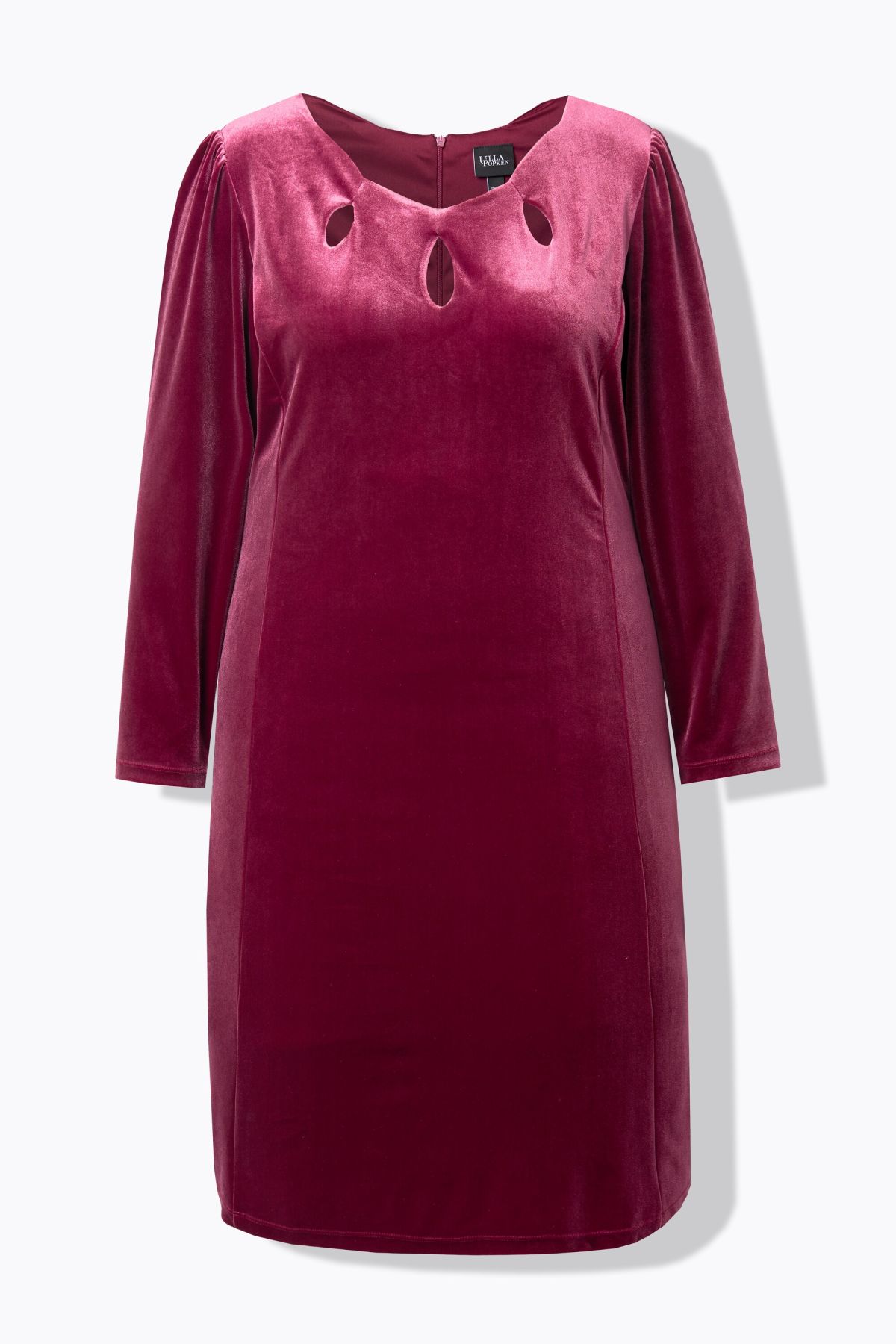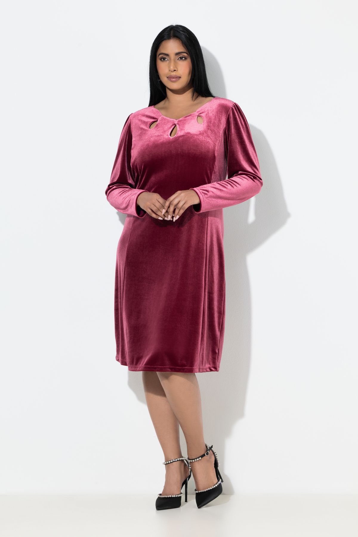 Елегантна рокля от луксозна кадифена материя с перфектния тесен силует. С кръгло деколте с изрязани акценти и дълги ръкави. С перфектна дължина за всеки повод.