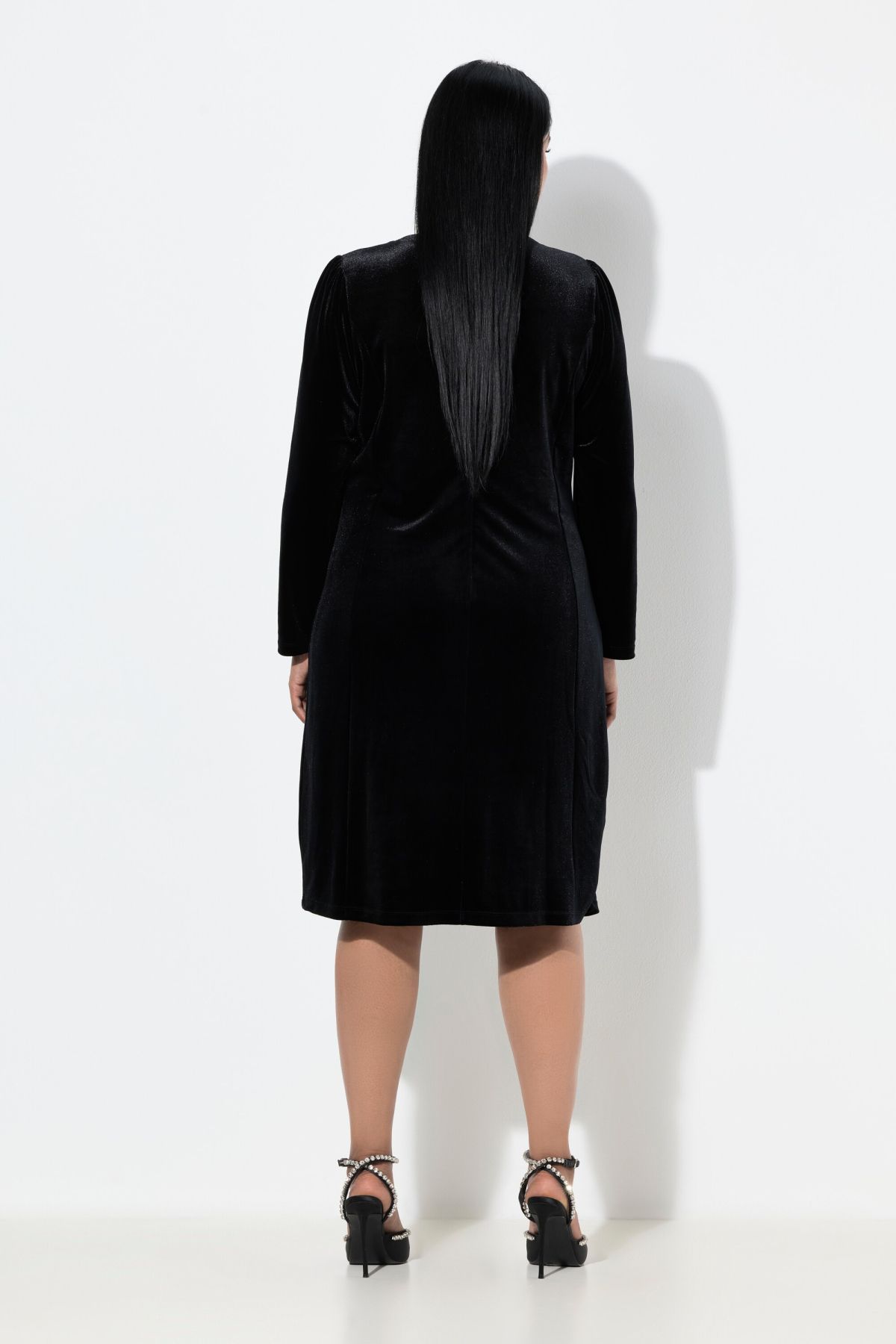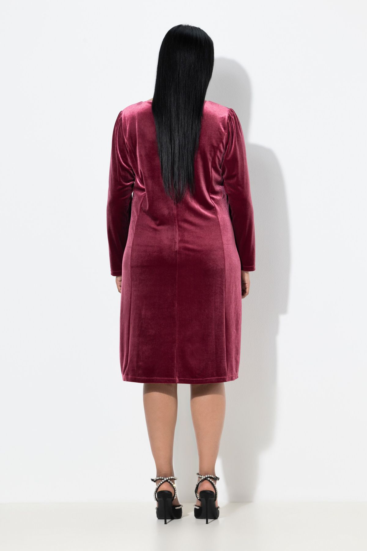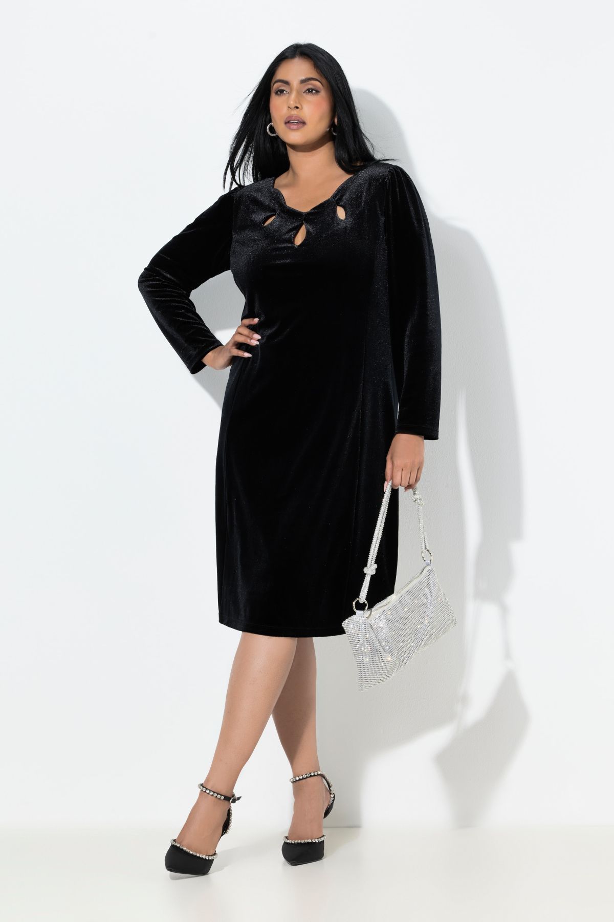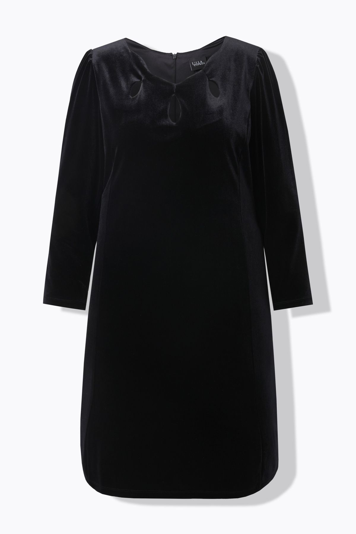 Елегантна рокля от луксозна кадифена материя с перфектния тесен силует. С кръгло деколте с изрязани акценти и дълги ръкави. С перфектна дължина за всеки повод.