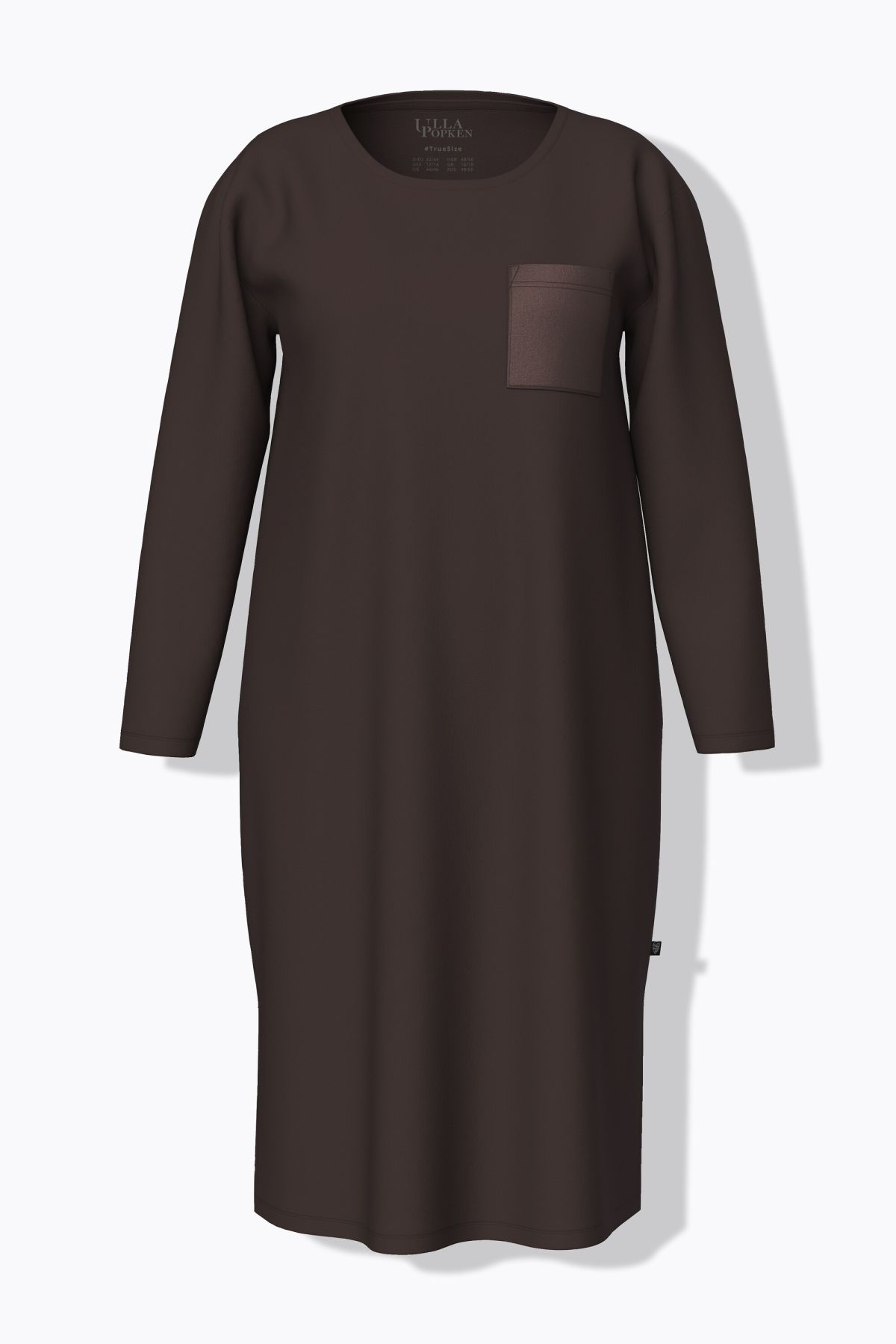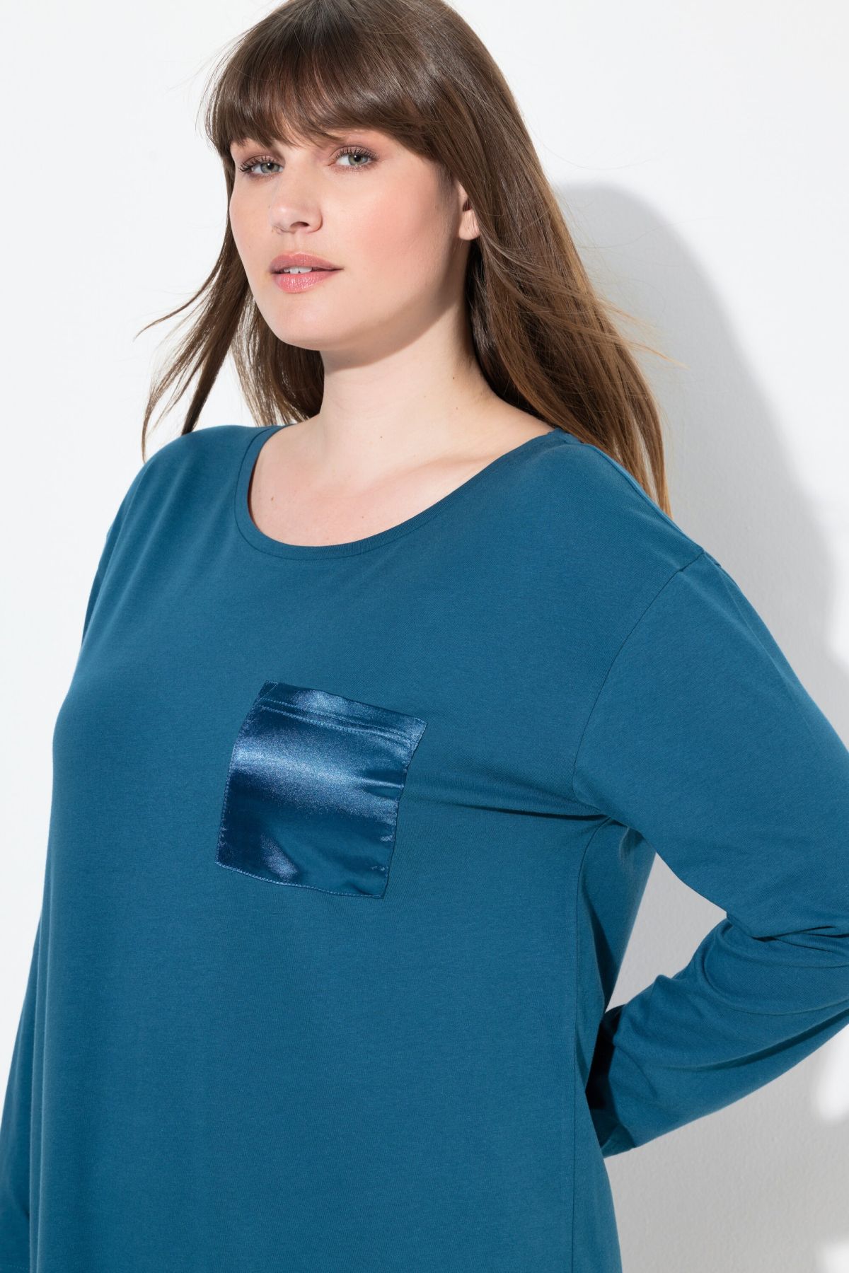 Нощница със сатенен джоб на гърдите. С дълги ръкави. От мека, комфортна материя.