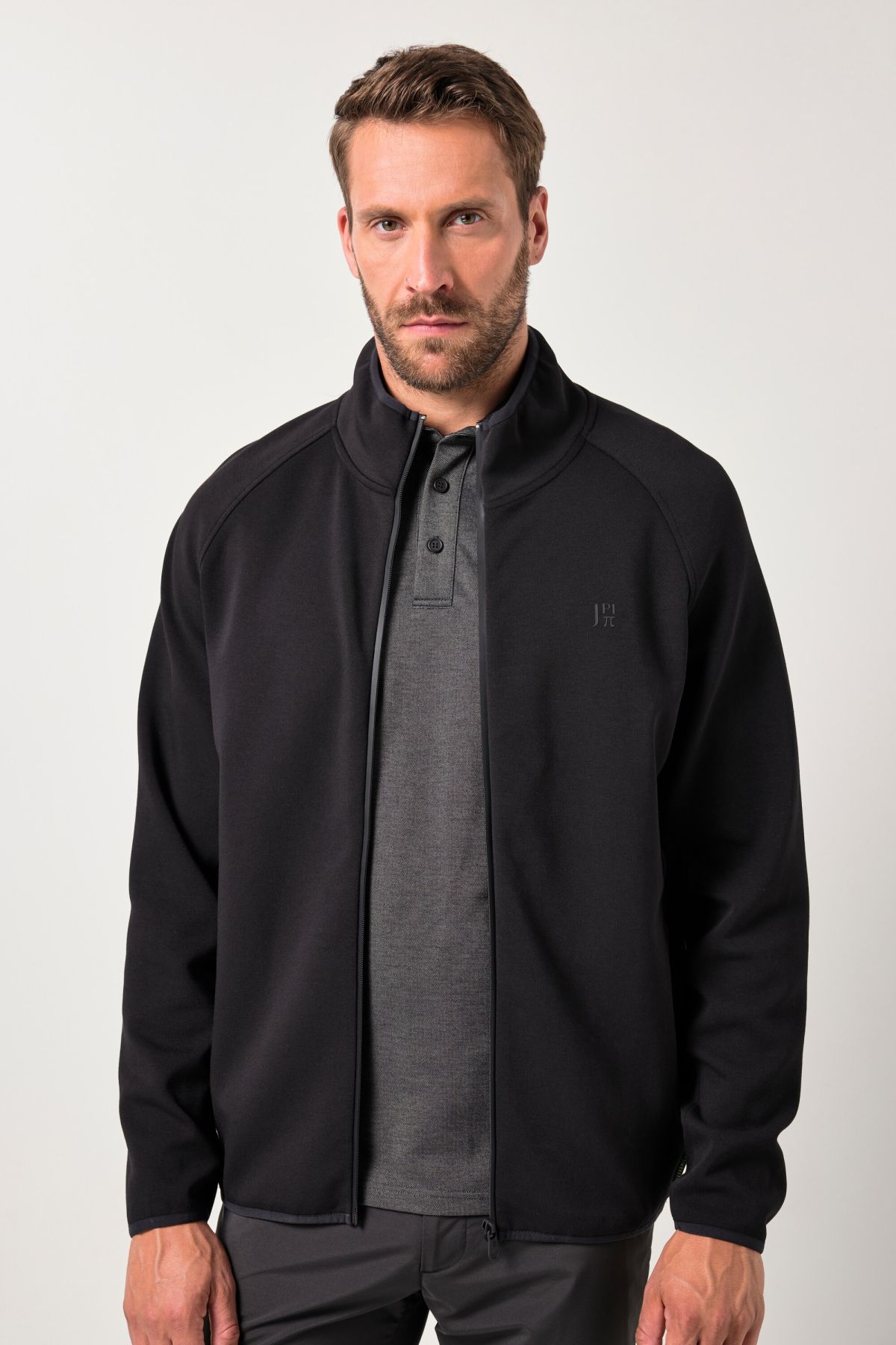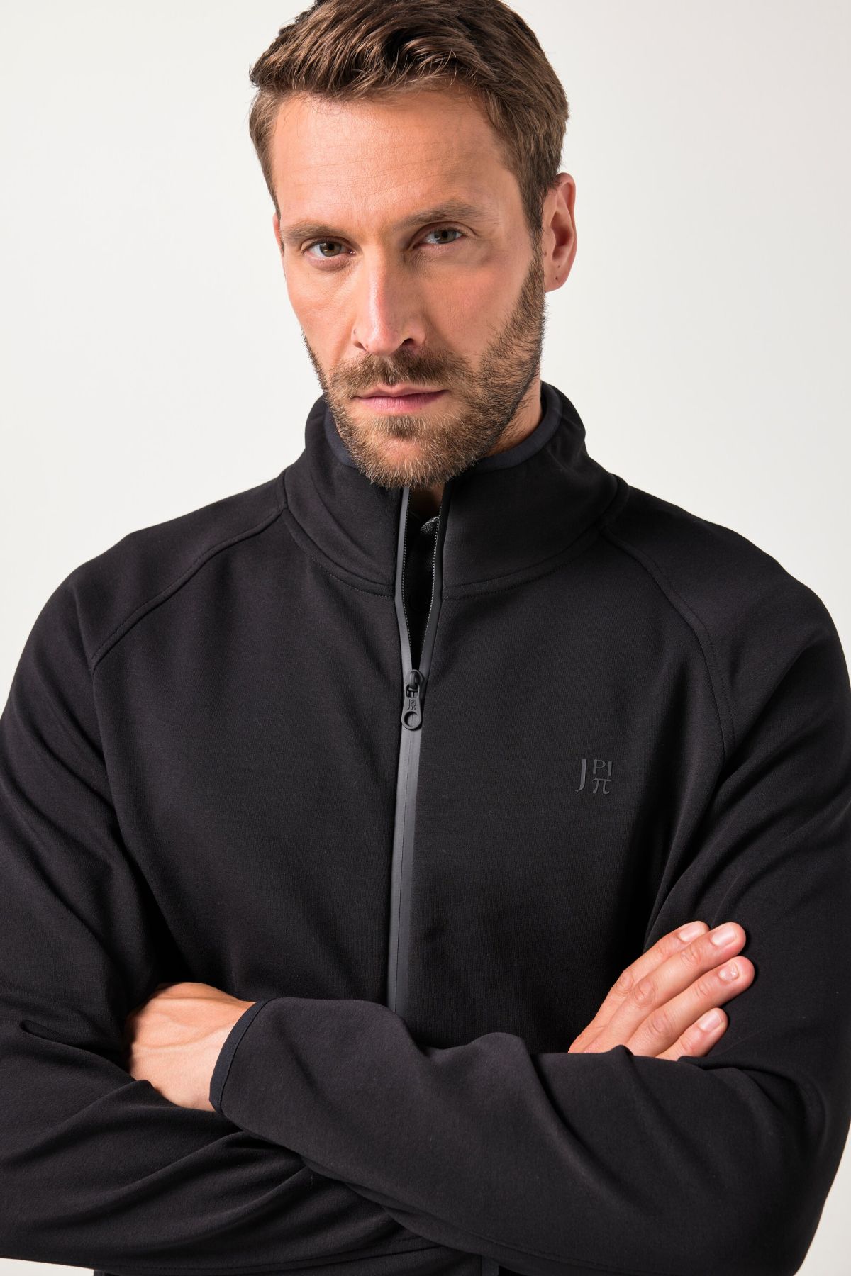 Суитчър с дълги реглан ръкави от супер еластична материя. Оптимален комфорт за всеки размер. С изправена яка, цип и два джоба с ципове. С еластични маншети на ръкавите и подгъва. JAY-PI - функционално спортно облекло за истински мъже.