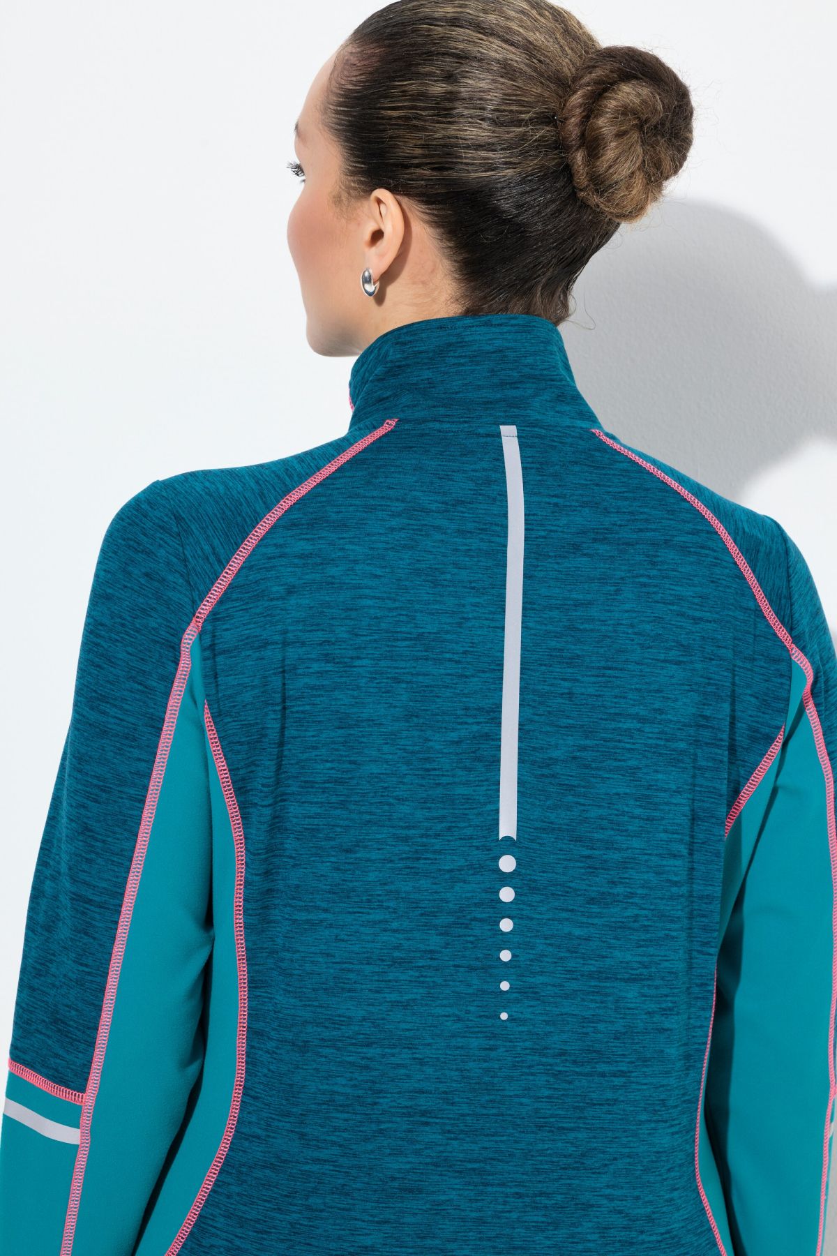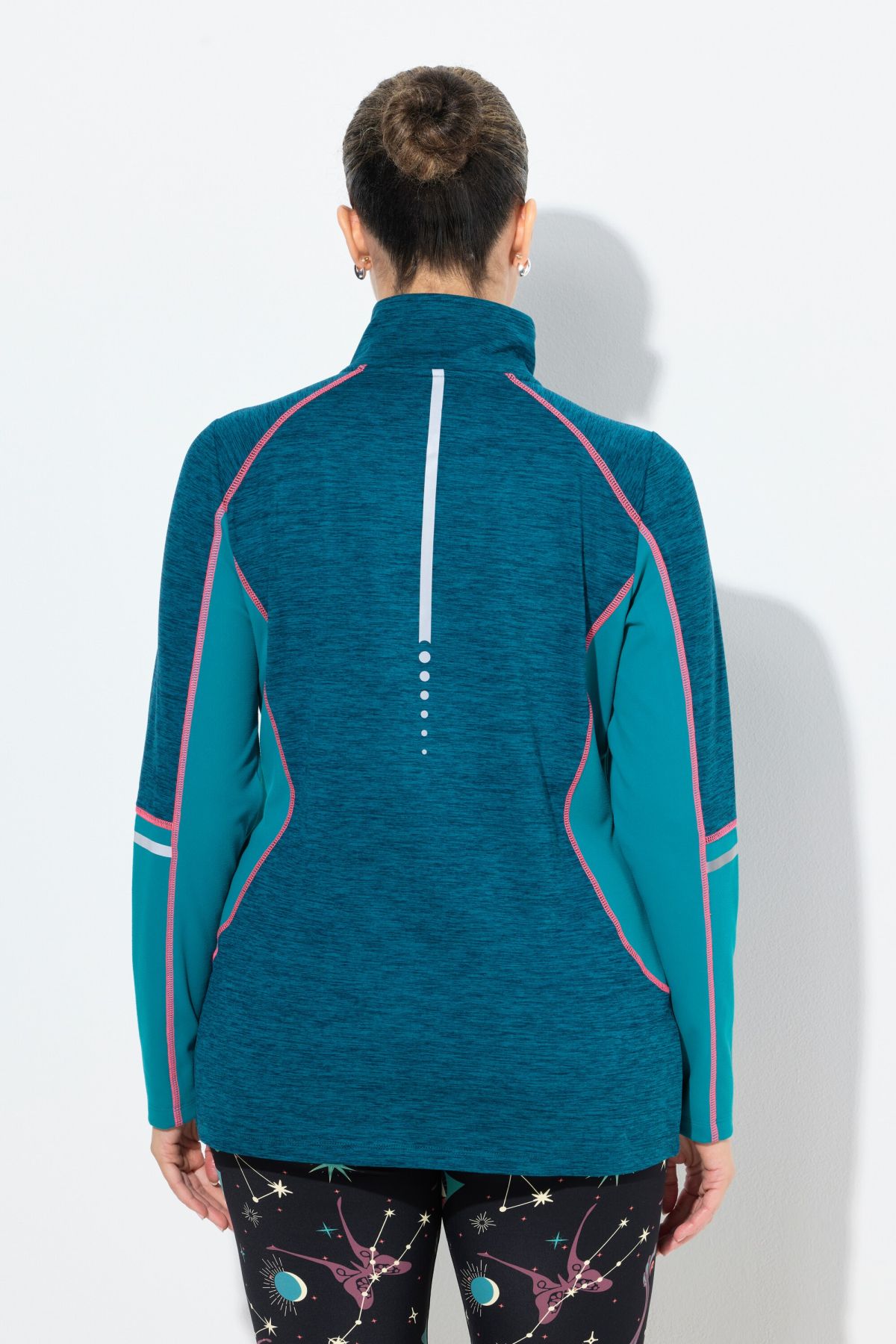 Тениска с контрастни цветове. Перфектният избор за спортни активности. С изправена яка с цип, лого на гърдите и дълги ръкави.
