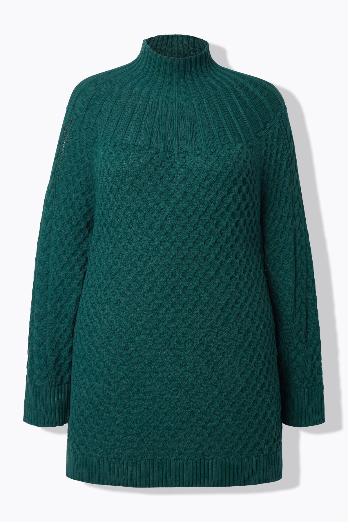 Пуловер с реглан ръкави с издължен силует. С изправена яка и дълги ръкави. От мека, памучна материя.