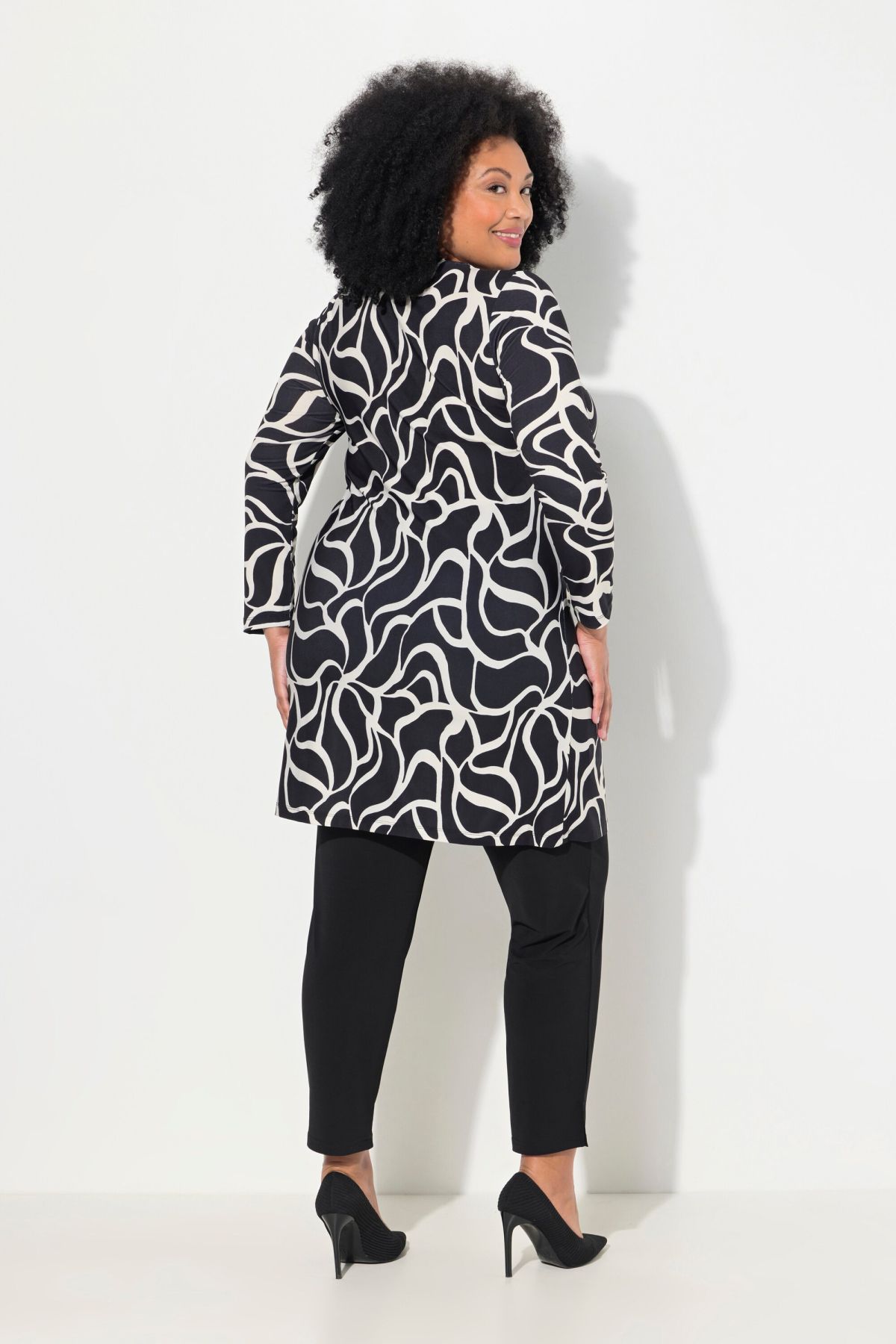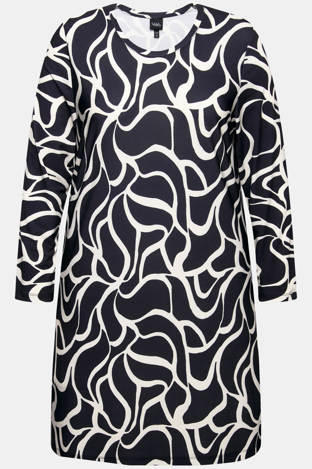Туника с геометричен принт от еластична, трикотажна материя с А - линия на силуета. С кръгло деколте и 3/4 ръкави.