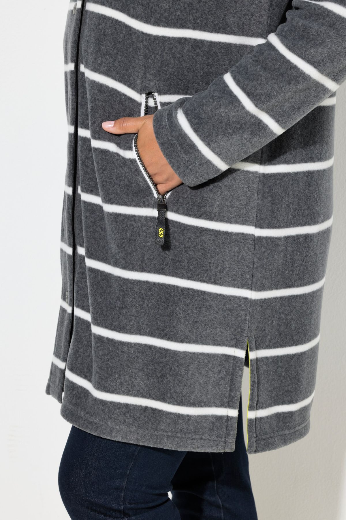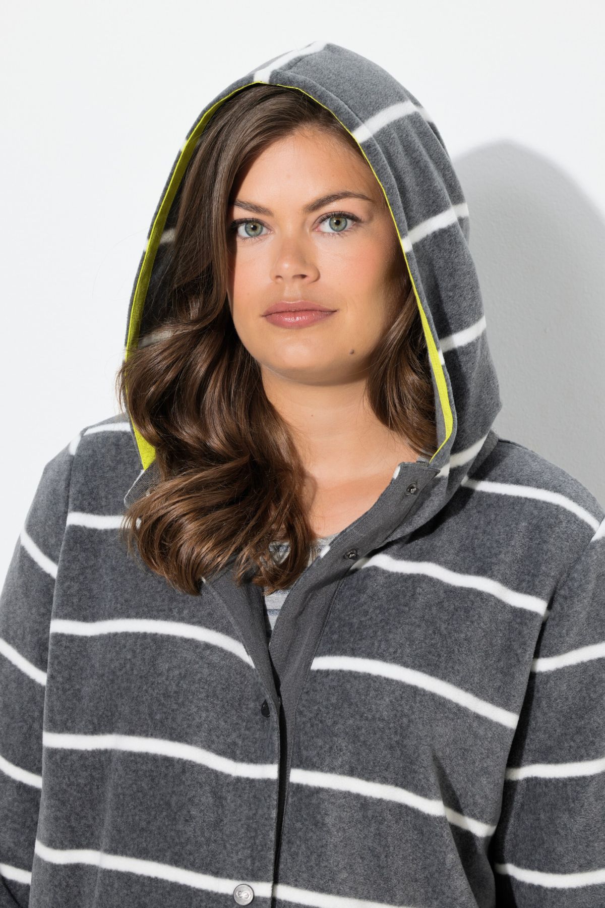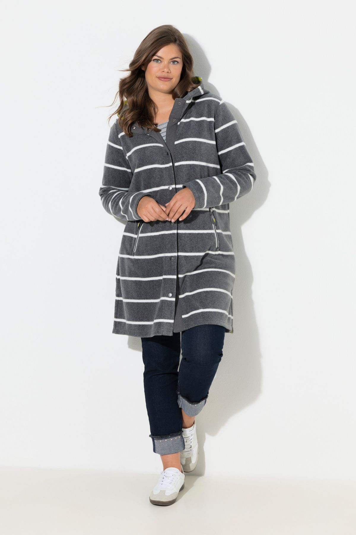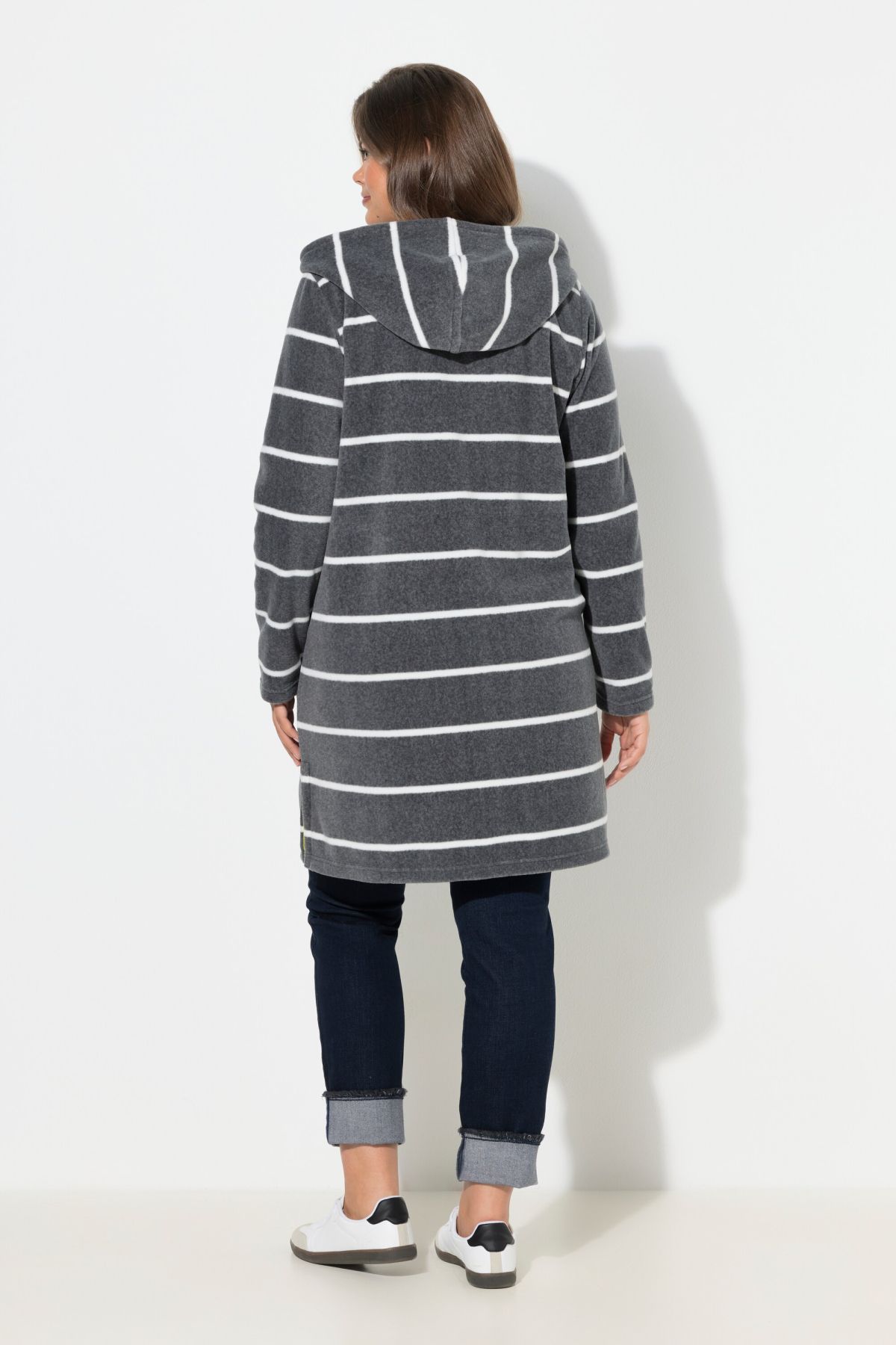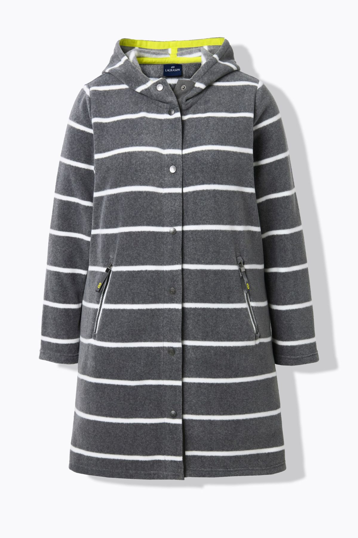 Дълго поларено яке на Laurason с раирани акценти. Закопчаване с копчета отпред, качулка, дълги ръкави и странични джобове с ципове. Меко и топло за пролетта