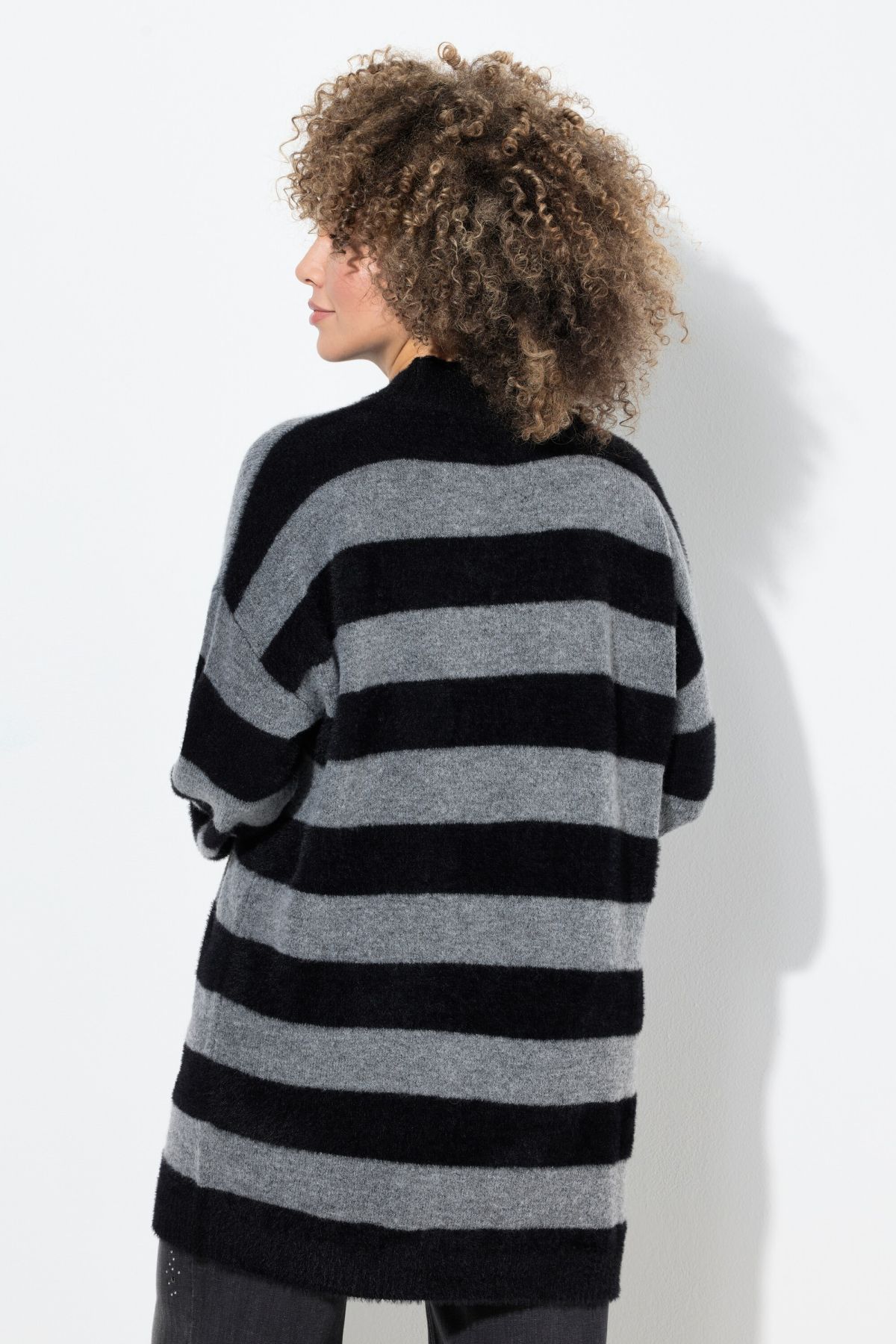 Пуловер с принт на райета - топъл и комфортен. С кръгло деколте и дълги ръкави.