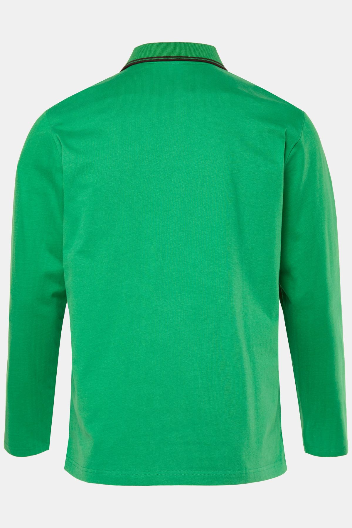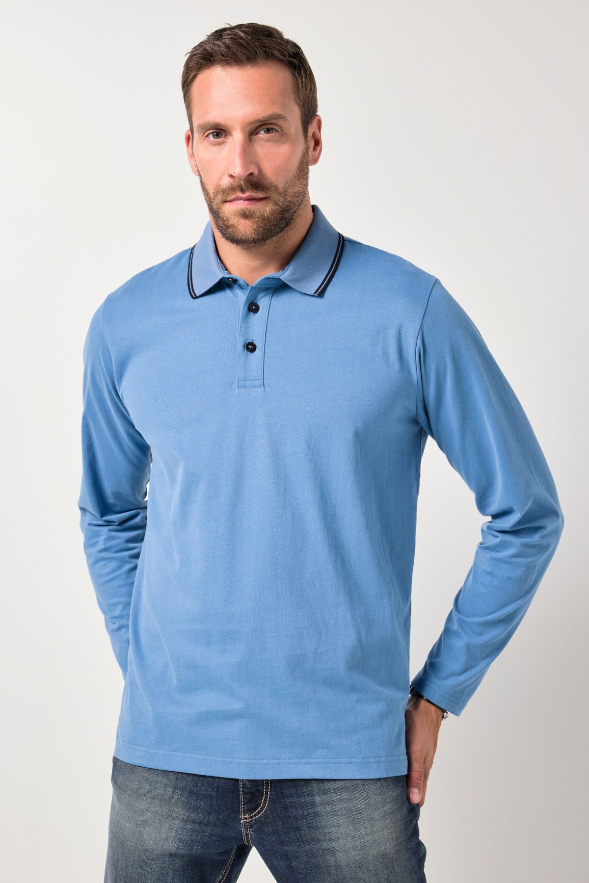 Блуза с поло яка и копчета на деколтето. С контрастни райета. С дълги ръкави. ОТ мека, памучна материя.