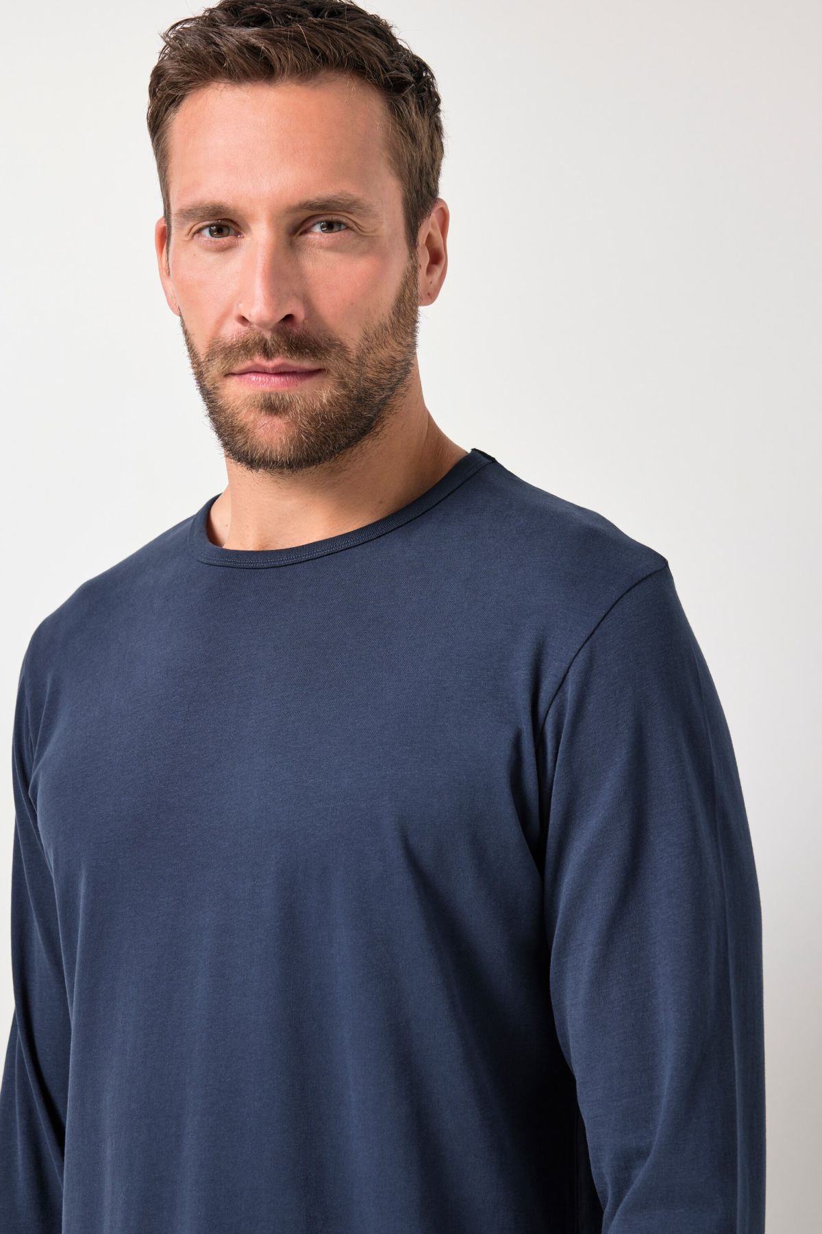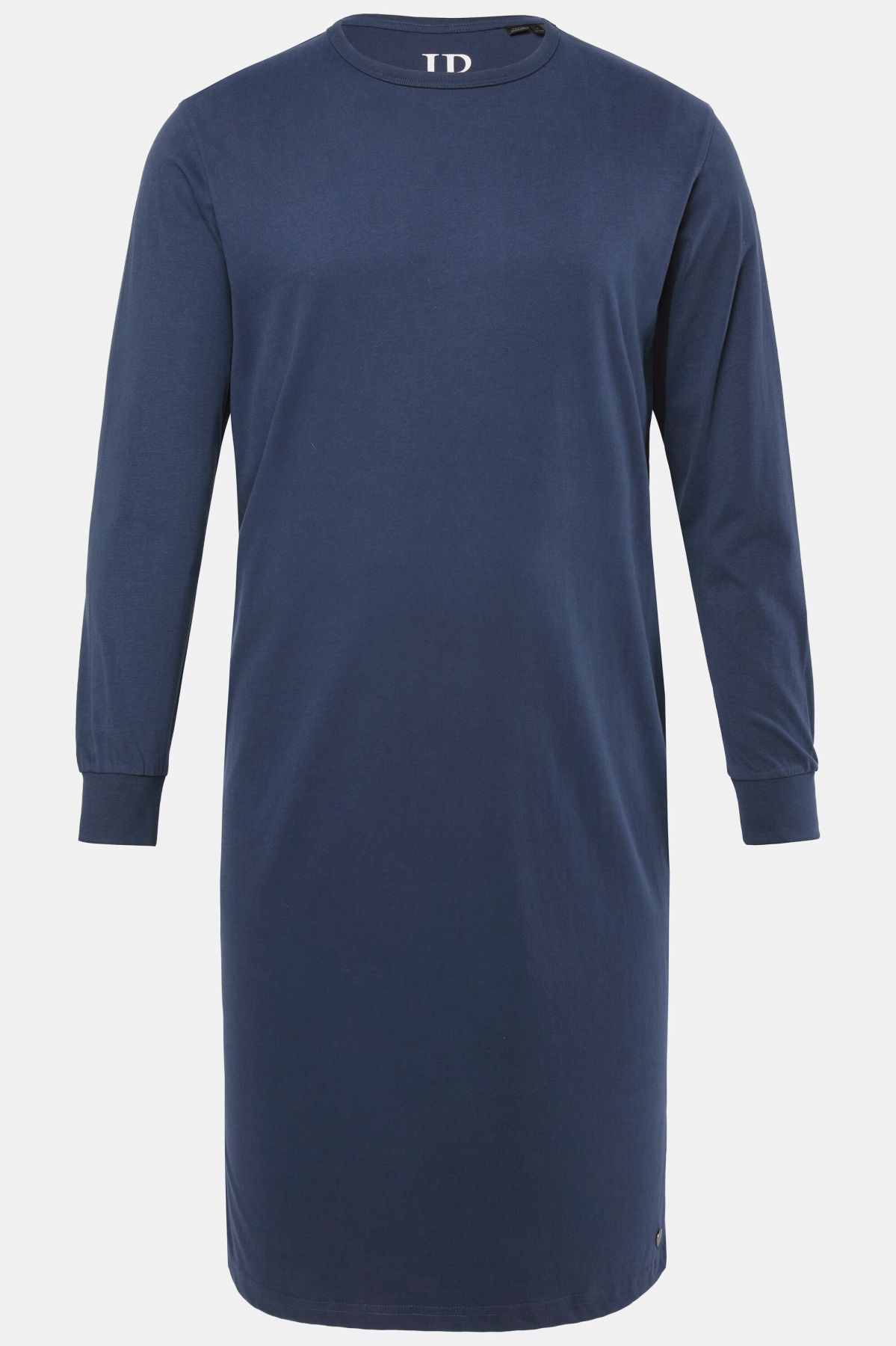 Едноцветна нощница с базова визия. С дълги ръкави и странични цепки на подгъва. С кръгло деколте. От мека, памучна материя.