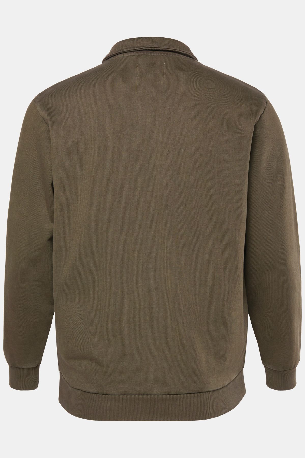 Пуловер с винтидж визия с малка бродерия на гърдите. С яка и копчета на деколтето. С дълги ръкави с рипсен маншет и подгъв.