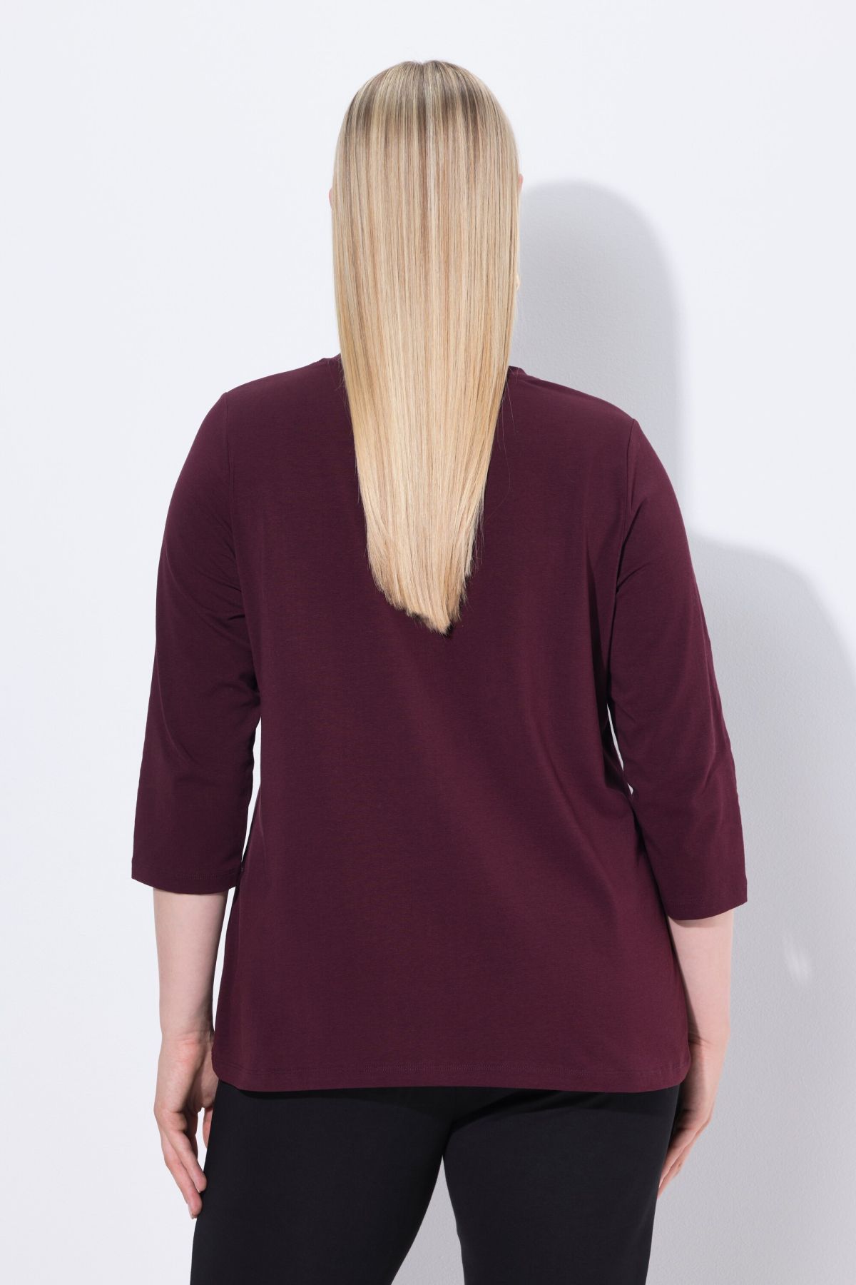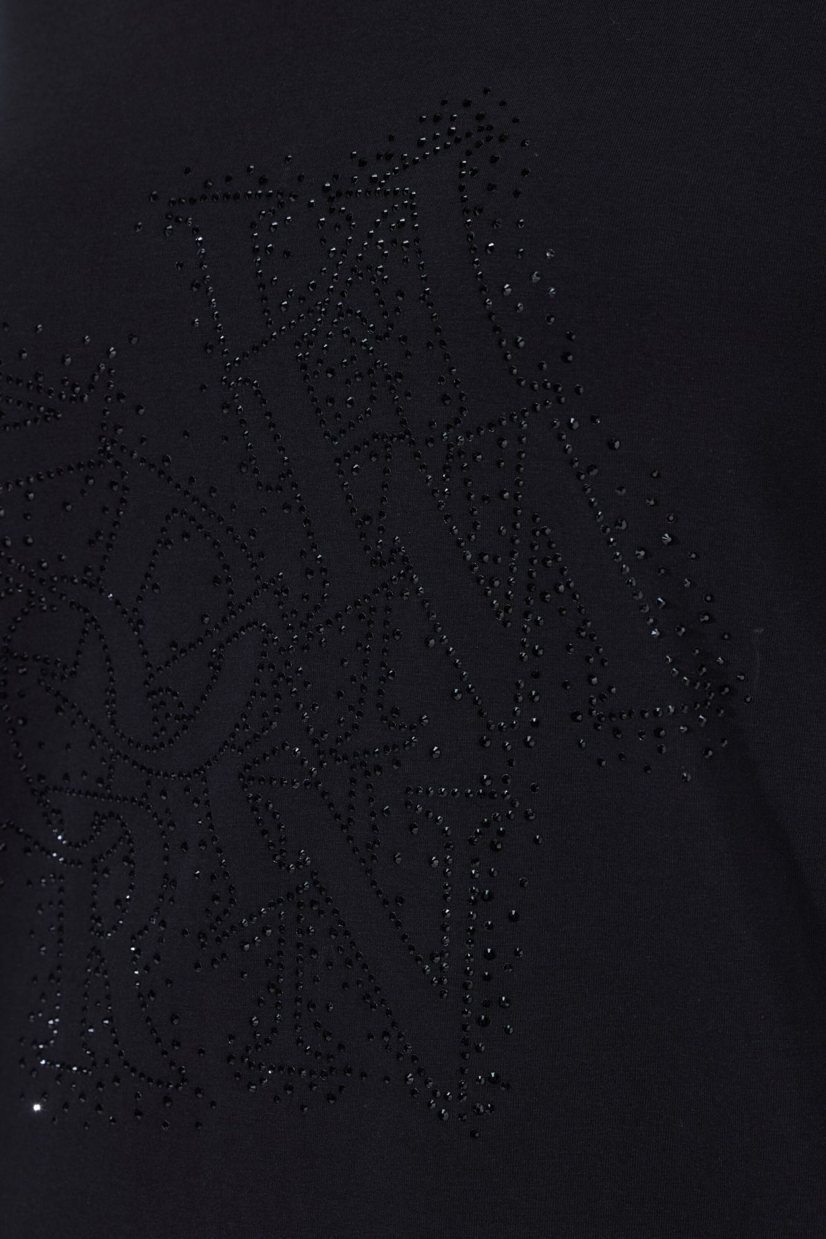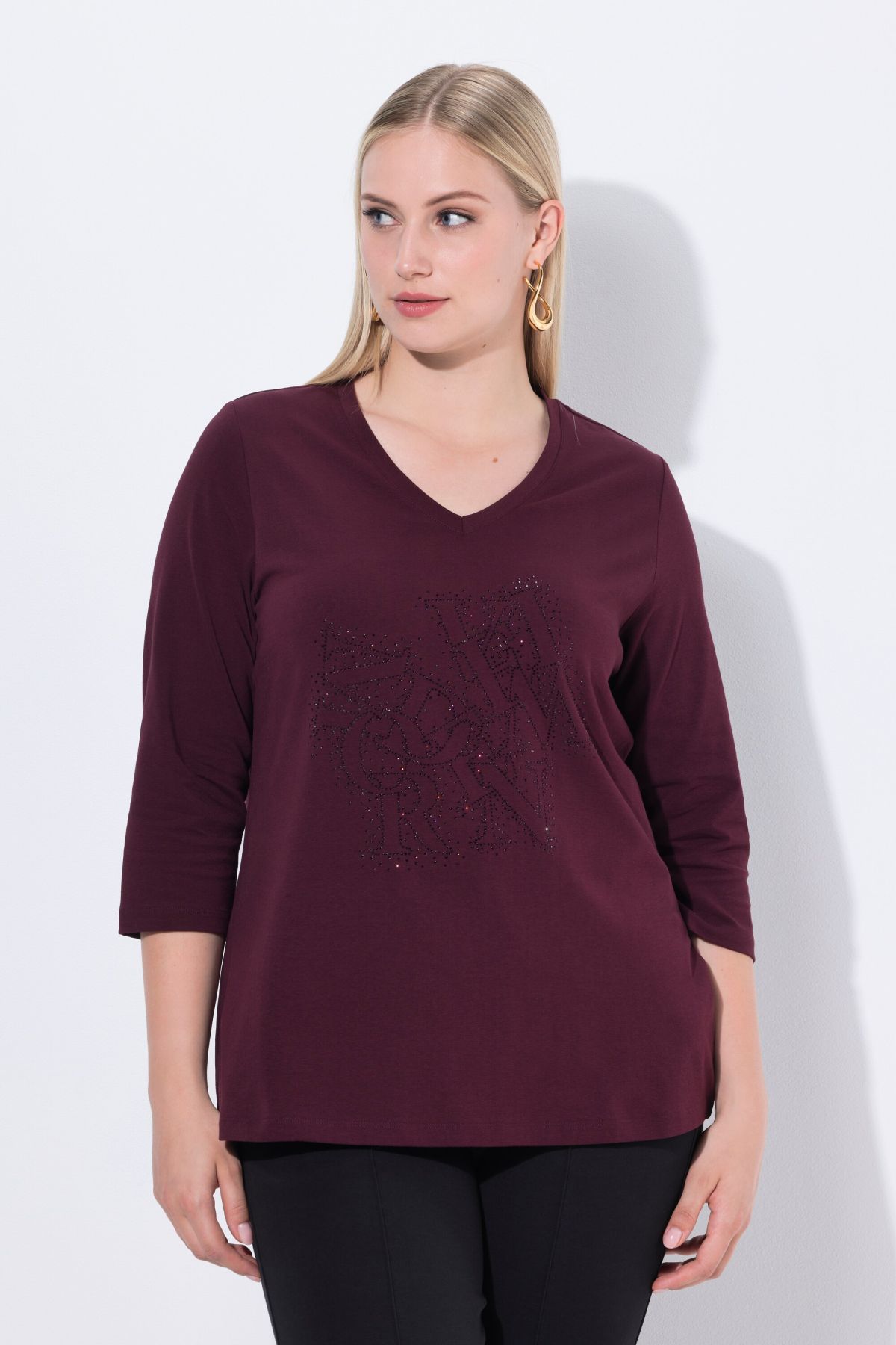 Тениска с лого от декоративни, бляскави камъчета. С дълбоко кръгло деколте и 3/4 ръкави. Мека и комфортна за ежедневието.