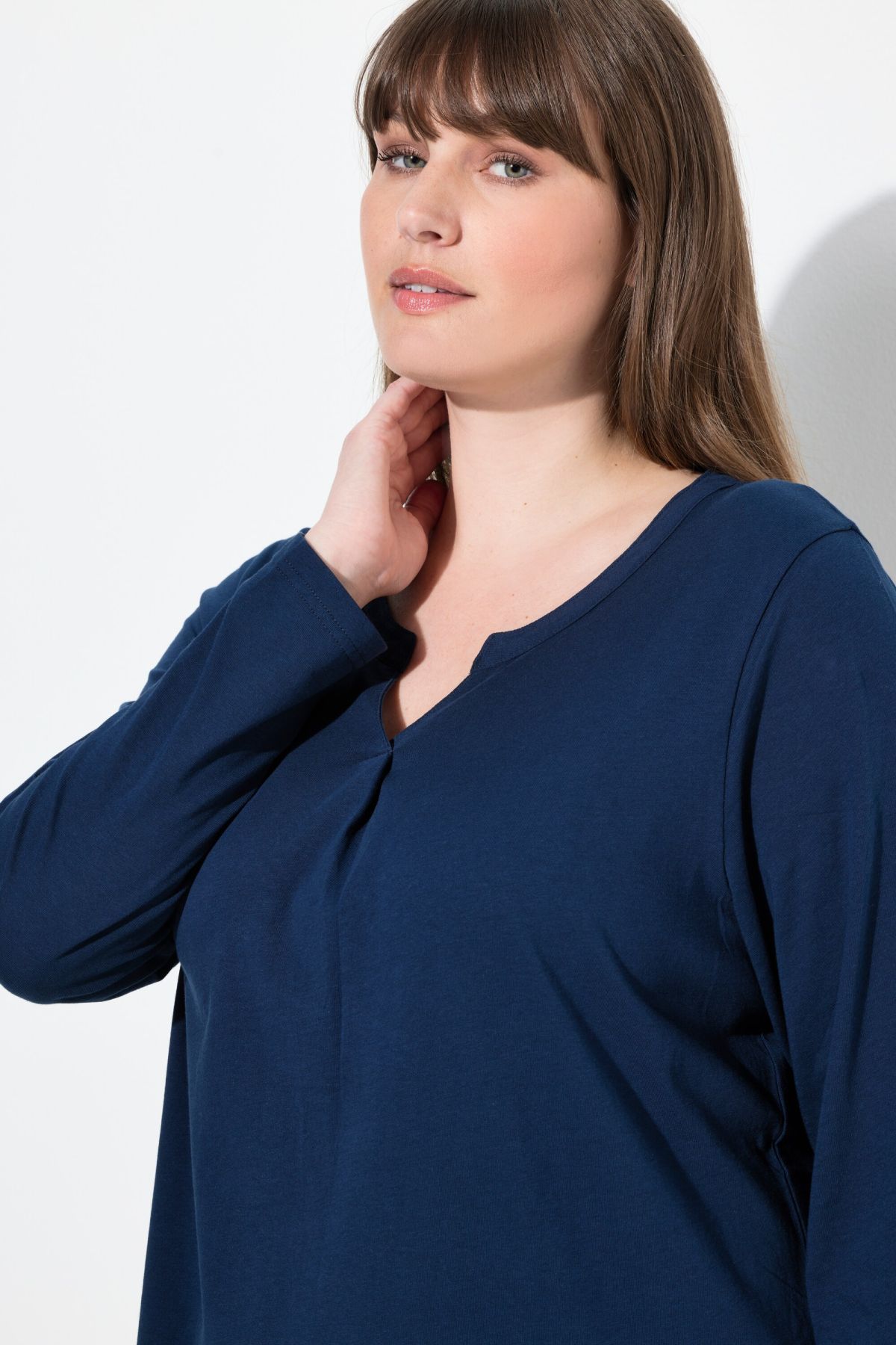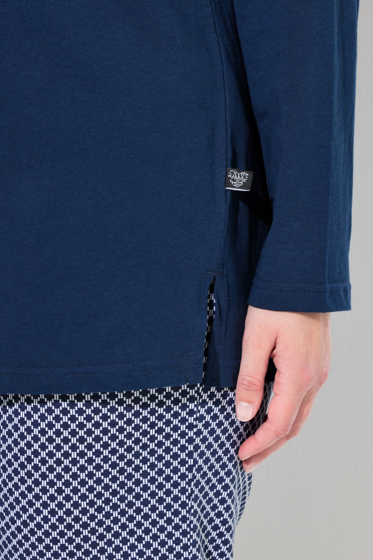 Пижама от 2 части с изчистен силует. С горнище с V - образно деколте и малка изправена яка, с долнище с принт с еластична талия и странични джобове. От мека, памучна материя.