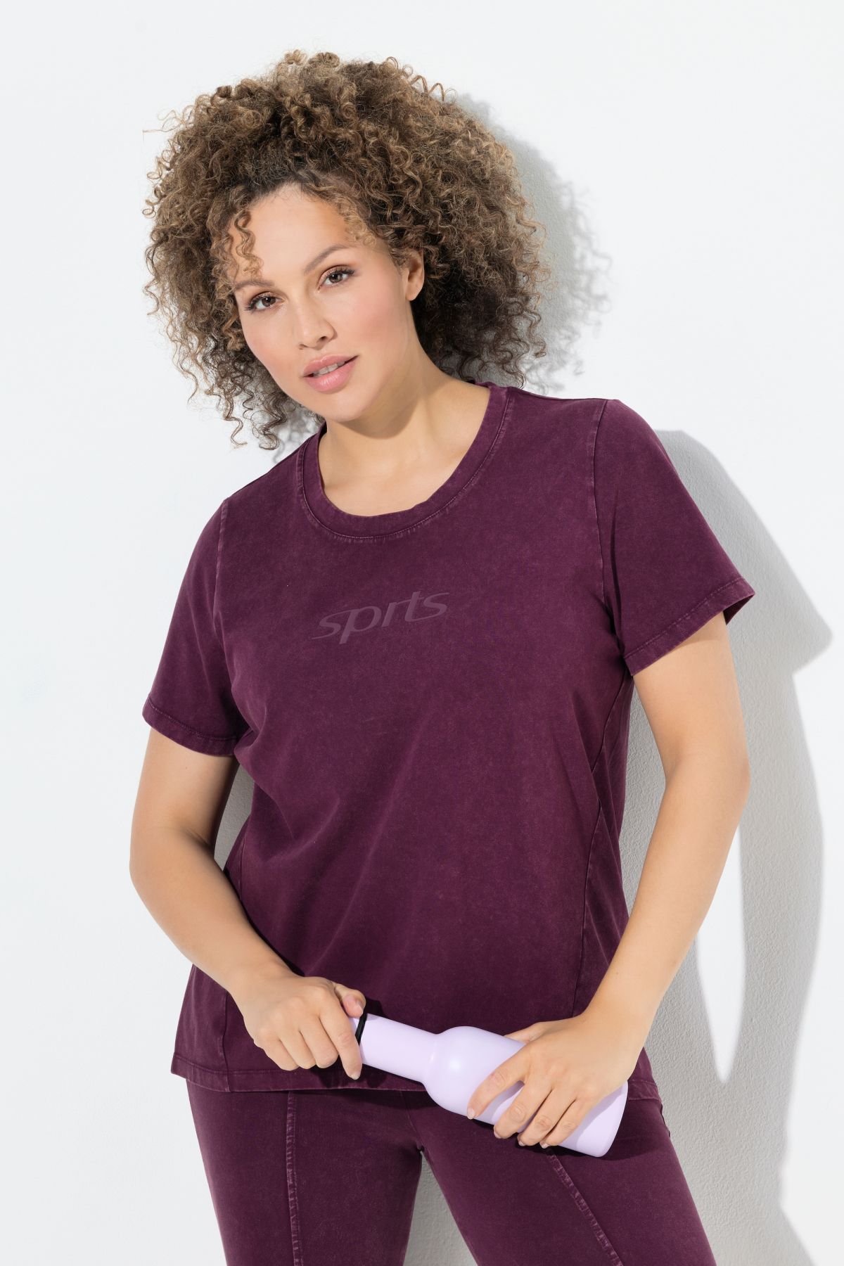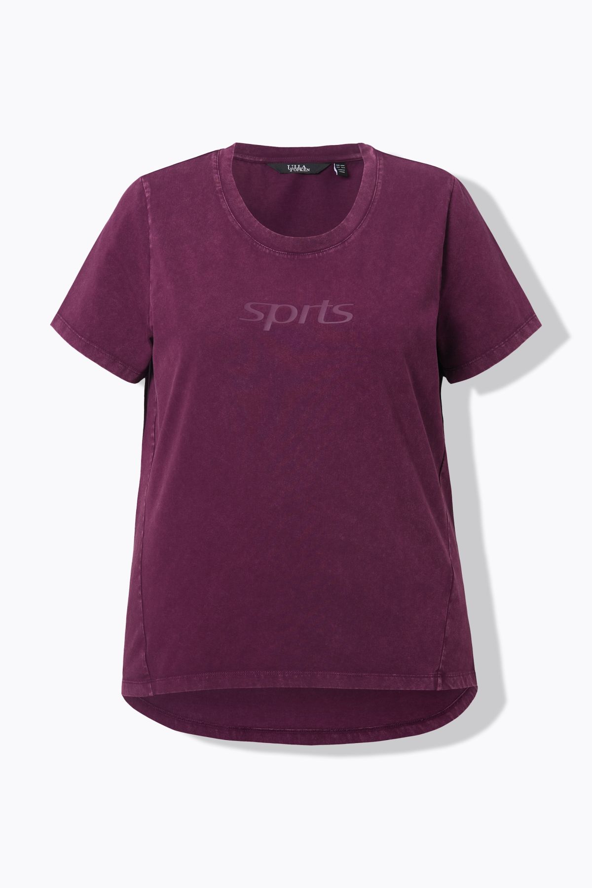 Тениска с прана винтидж визия и неравномерни цветове на страничните шевове. С кръгло деколте и къси ръкави
