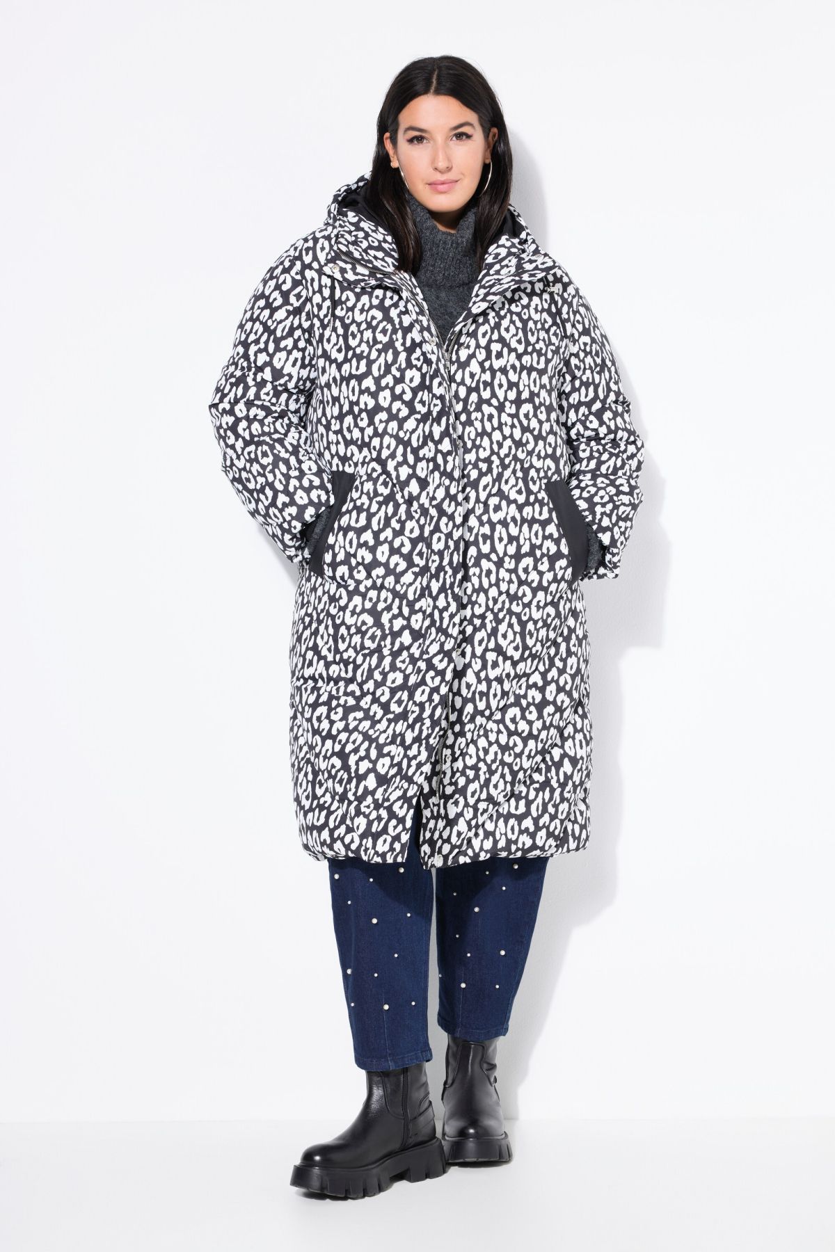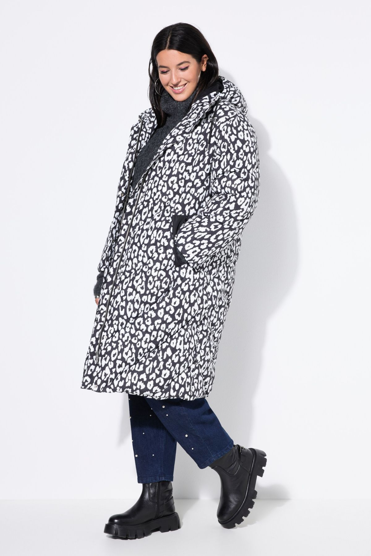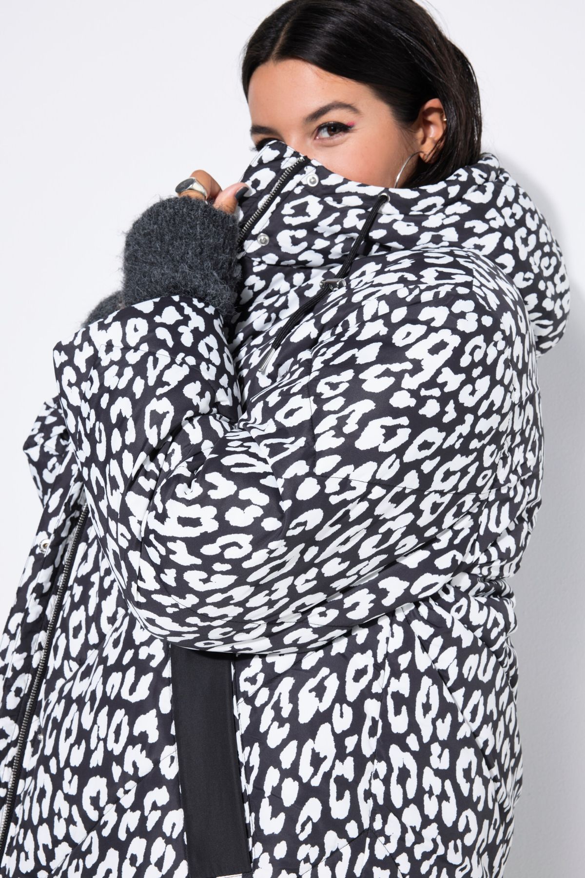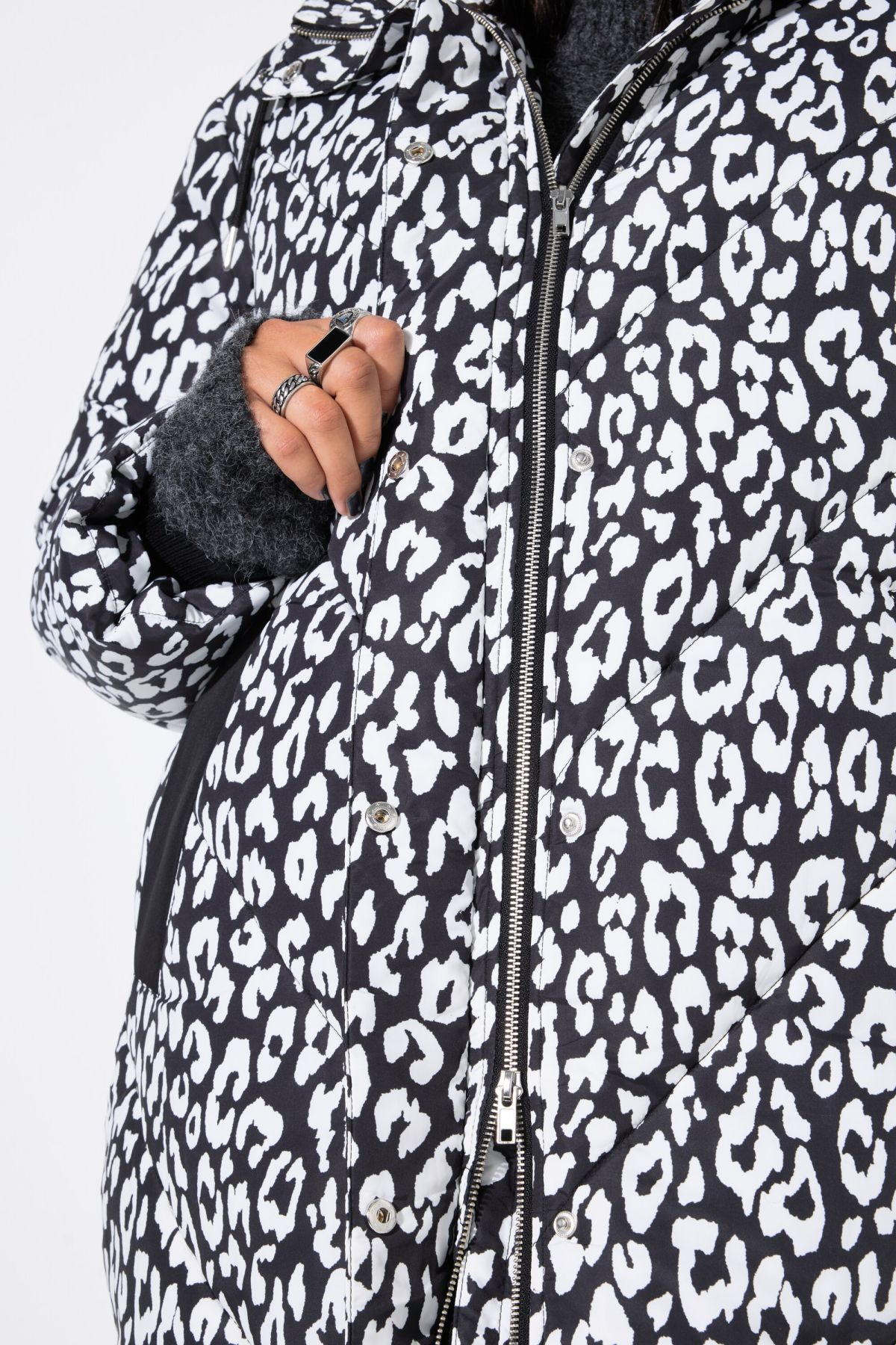 Ватирано палто с модерен леопардов принт. Дизайн с качулка, странични джобове, цип отпред и дълги ръкави. Топло и комфортно за сезона.