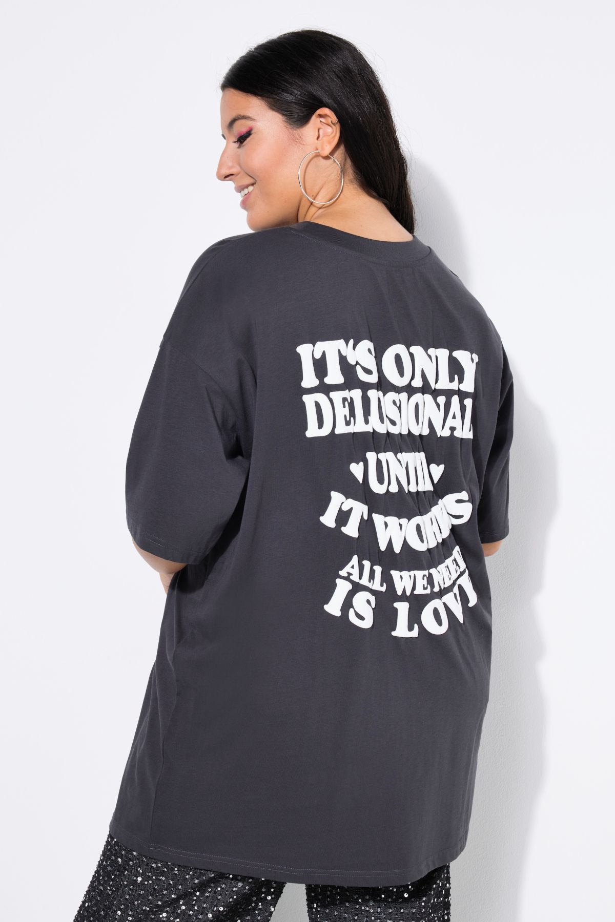 Тениска с принт на гърдите с овърсайз силует. С кръгло деколте и къси ръкави. От мека, памучна материя.