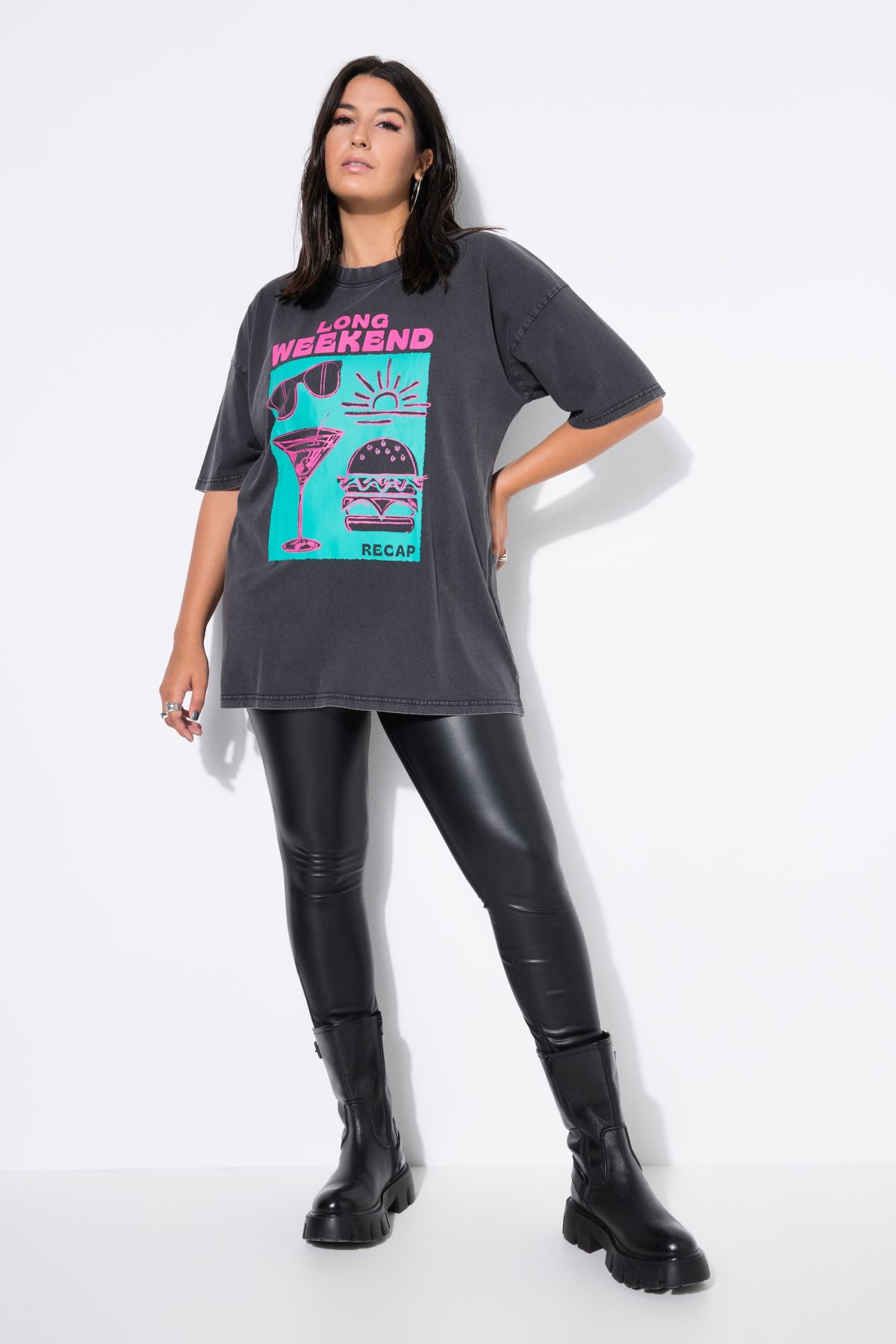 Тениска с голям принт и надпис отпред. За всички уикенд преживявания. С кръгло деколте и къси ръкави. От мека, памучна материя.