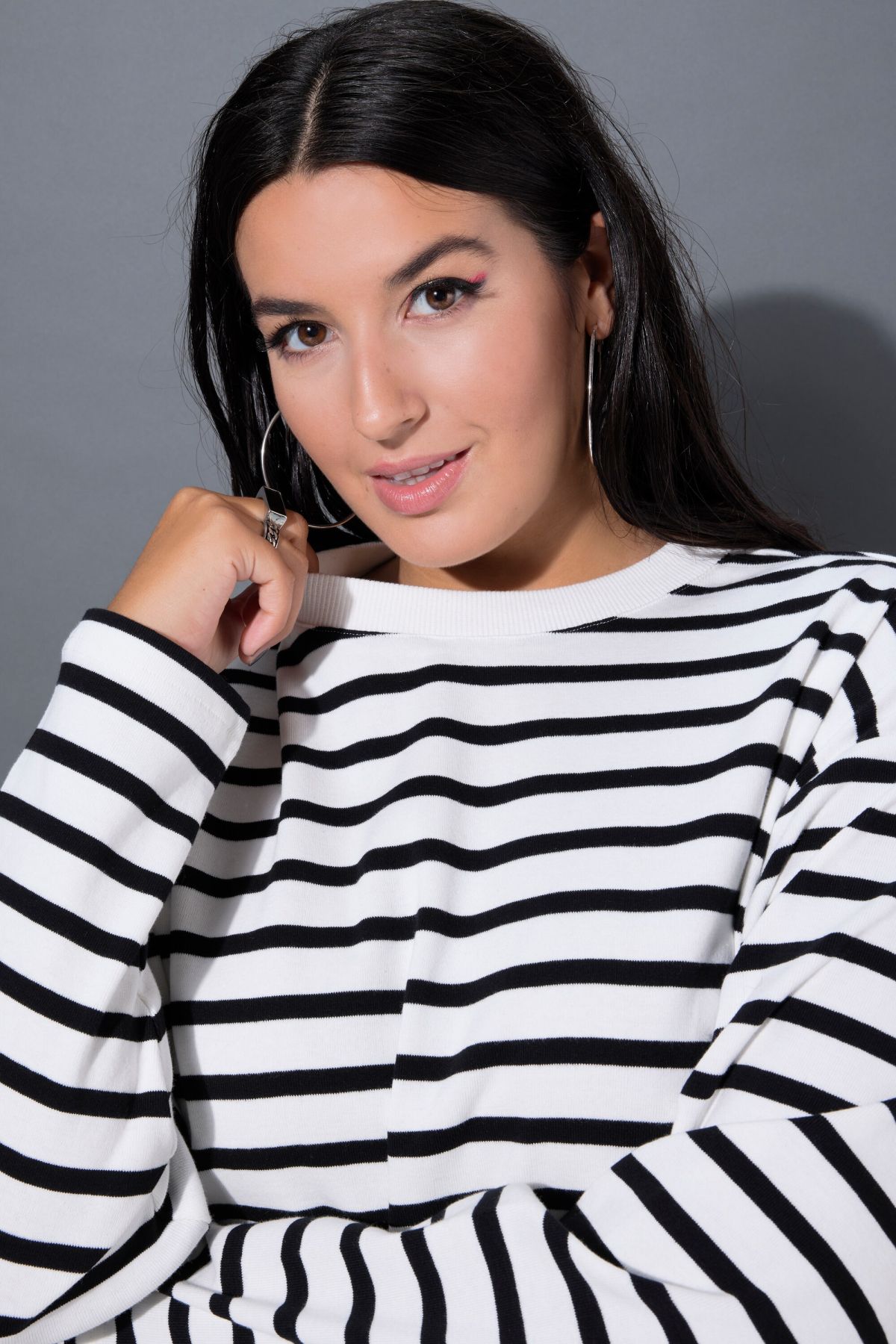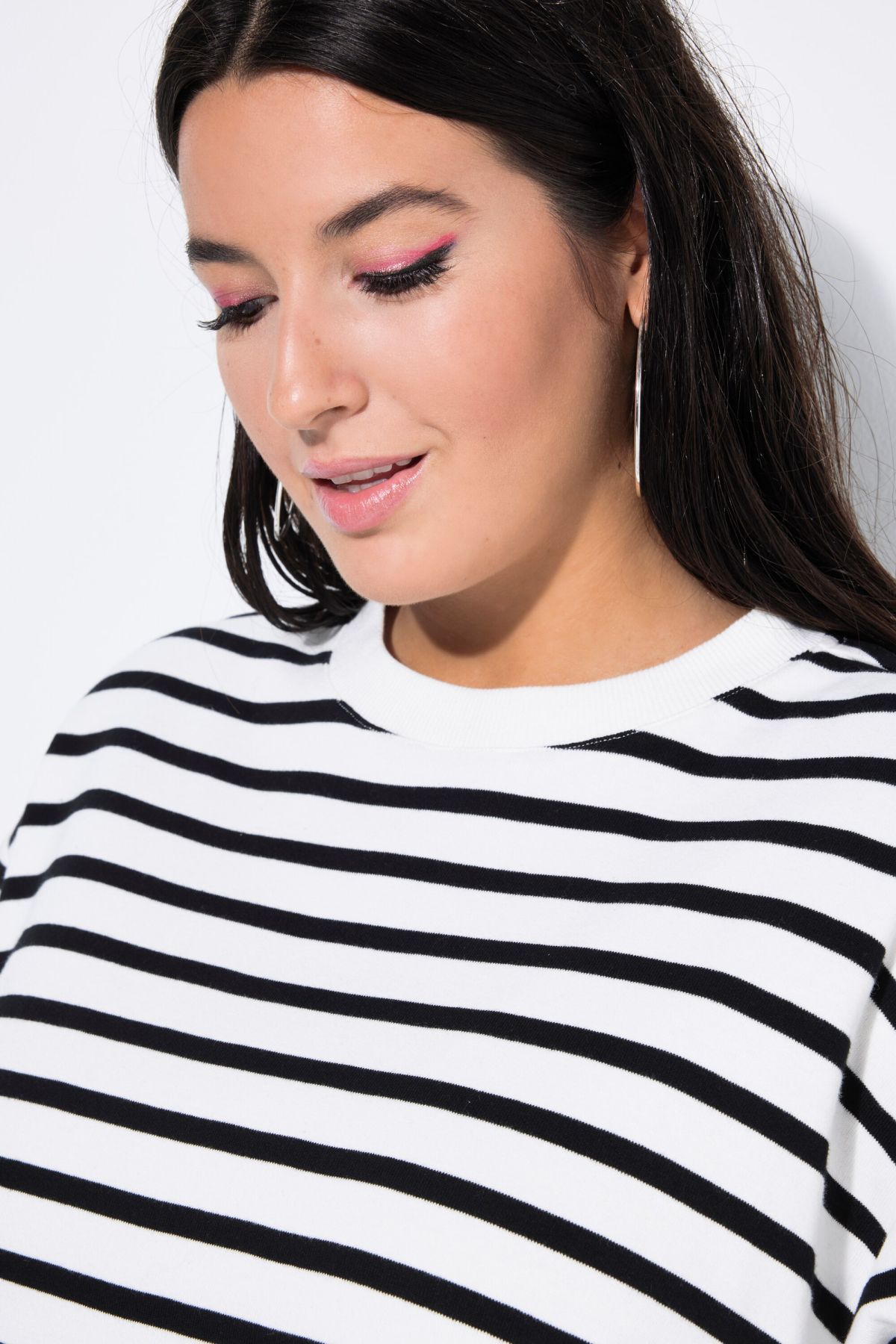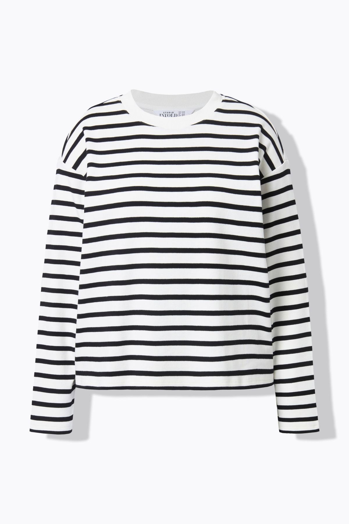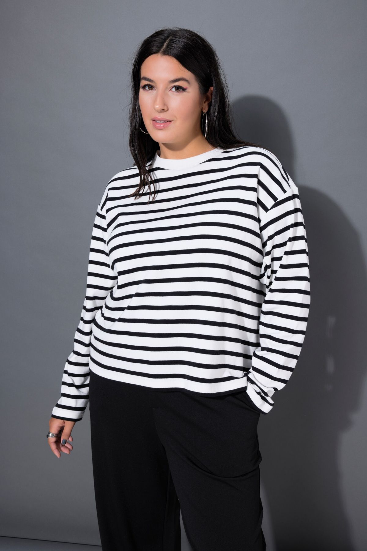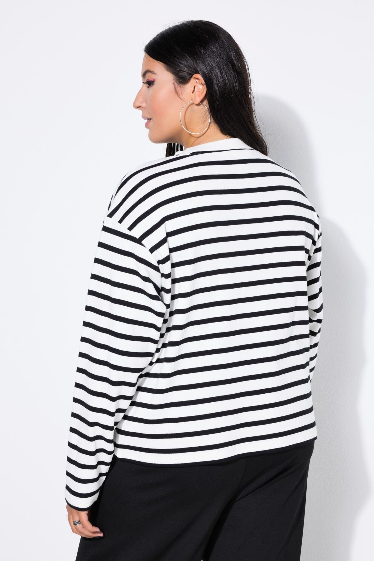 Суитчър с райета с класическа кройка - перфектна за ежедневния гардероб. С полуполо яка и дълги ръкави.