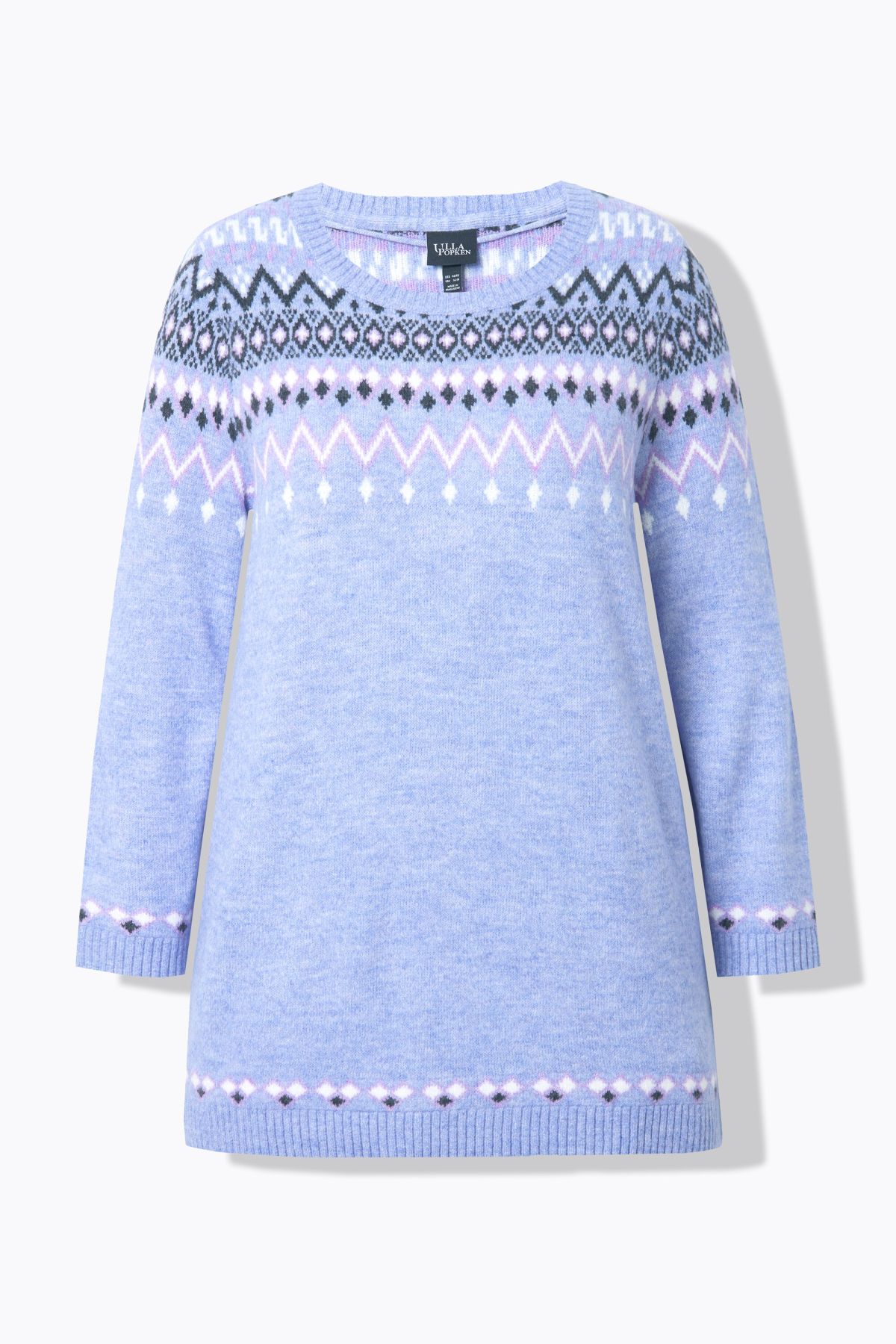 Пуловер с норвежки принт от мека, пухкава материя и уникално цветово съчетание. С кръгло деколте и дълги ръкави.