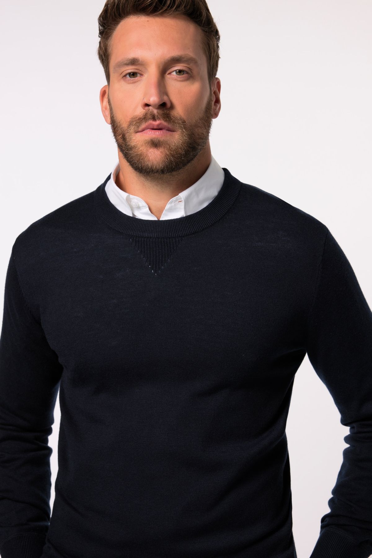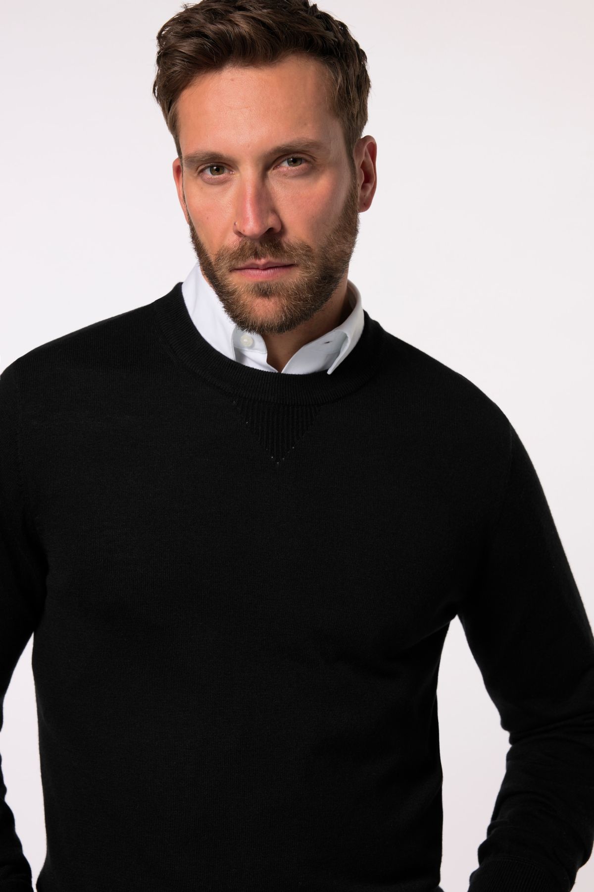 Пуловер от фина вълнена плетка. С кръгло деколте и дълги ръкави. Стилен и комфортен за студените дни